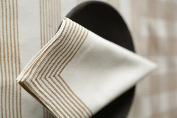 Perfect for your Thaal meal or country side back yard. Set your table with these beautiful napkins that have been hand block printed using natural gold pigments.