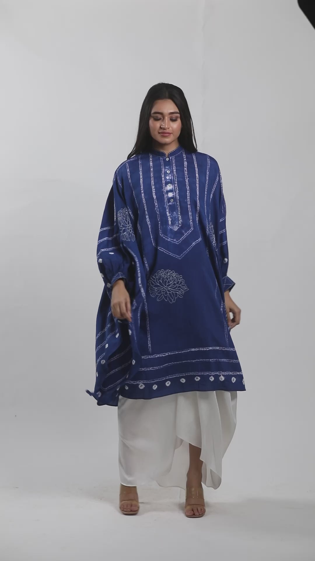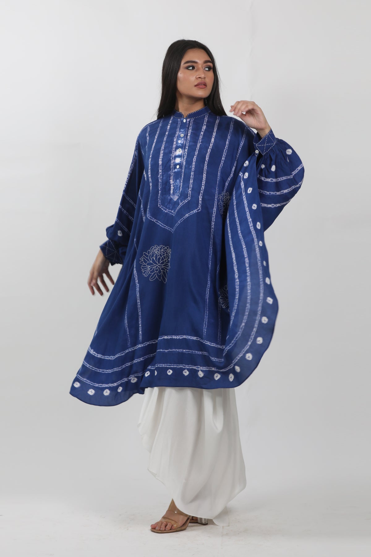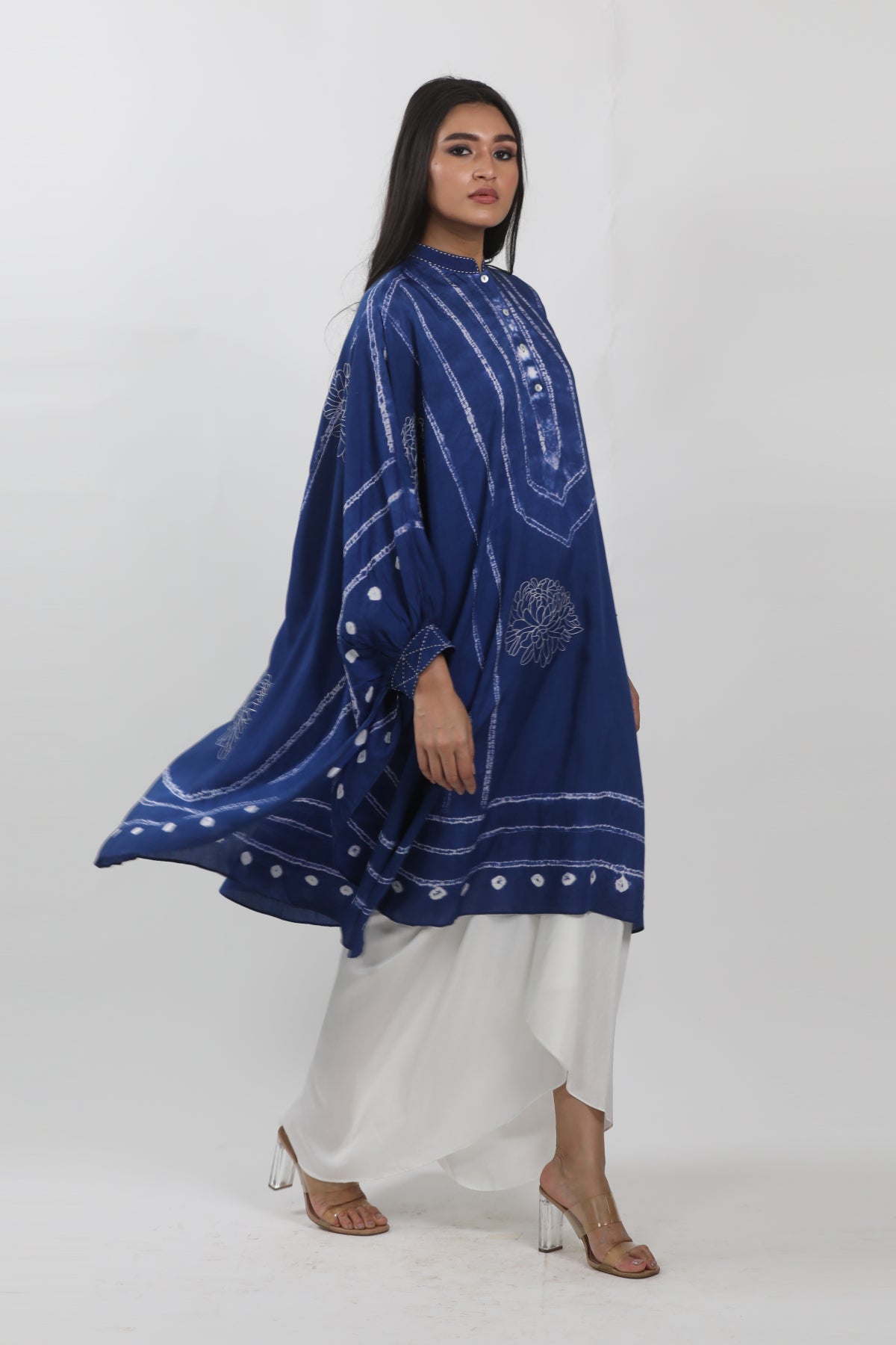 Indigo Modal Tie-Dye & Floral Embroidered Kaftan