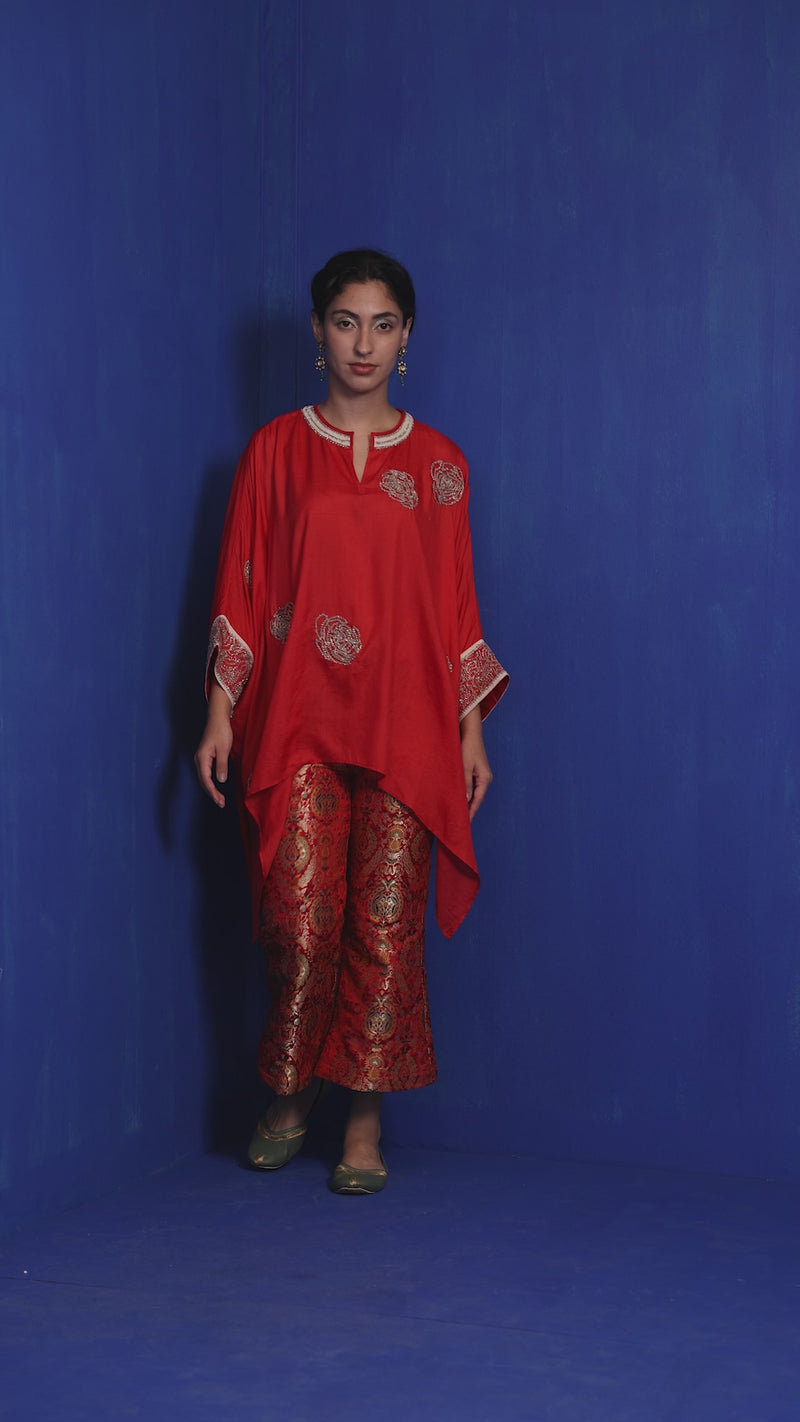 Red Chanderi Zardosi Embroidered Kaftan Tunic