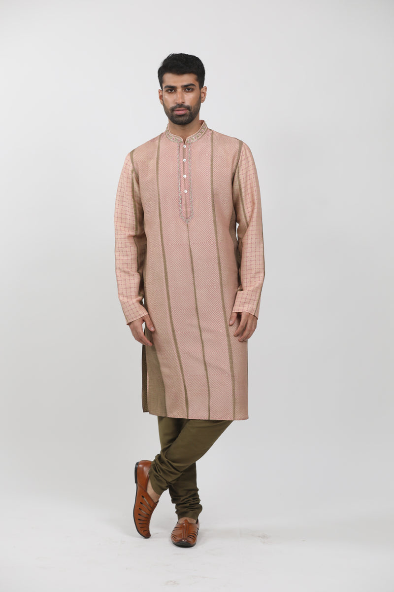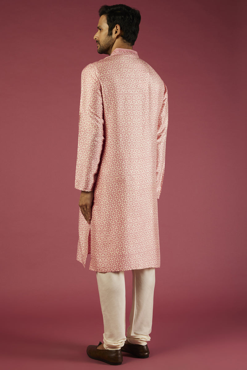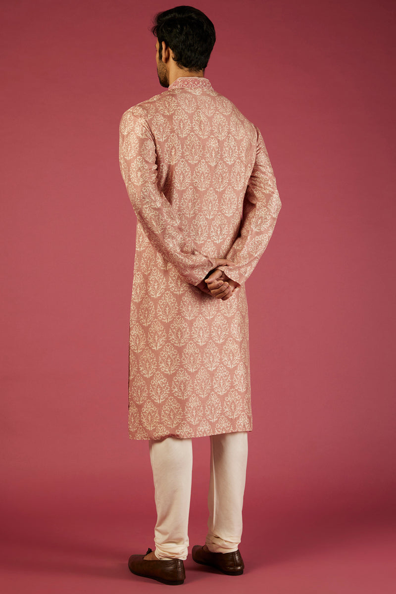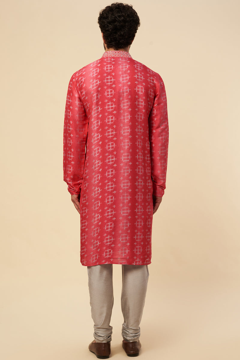 Pink Tussar Printed Kurta Set