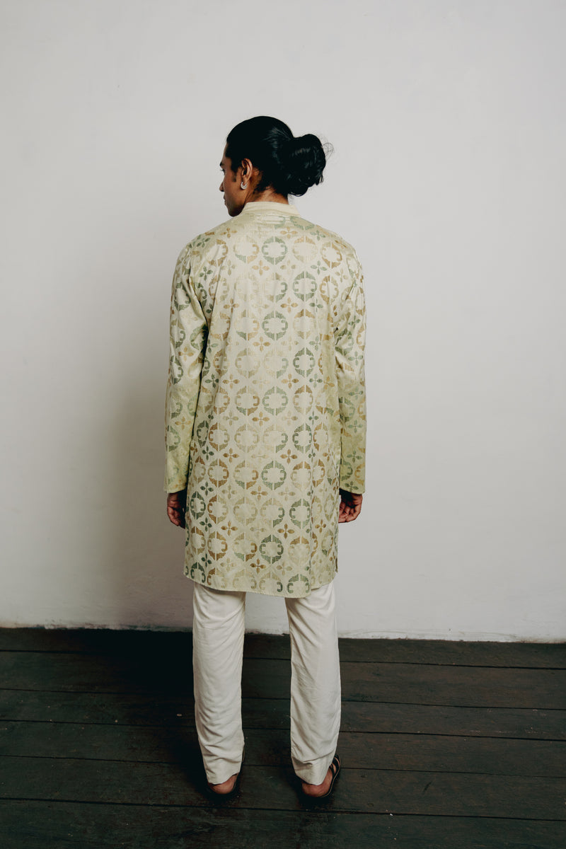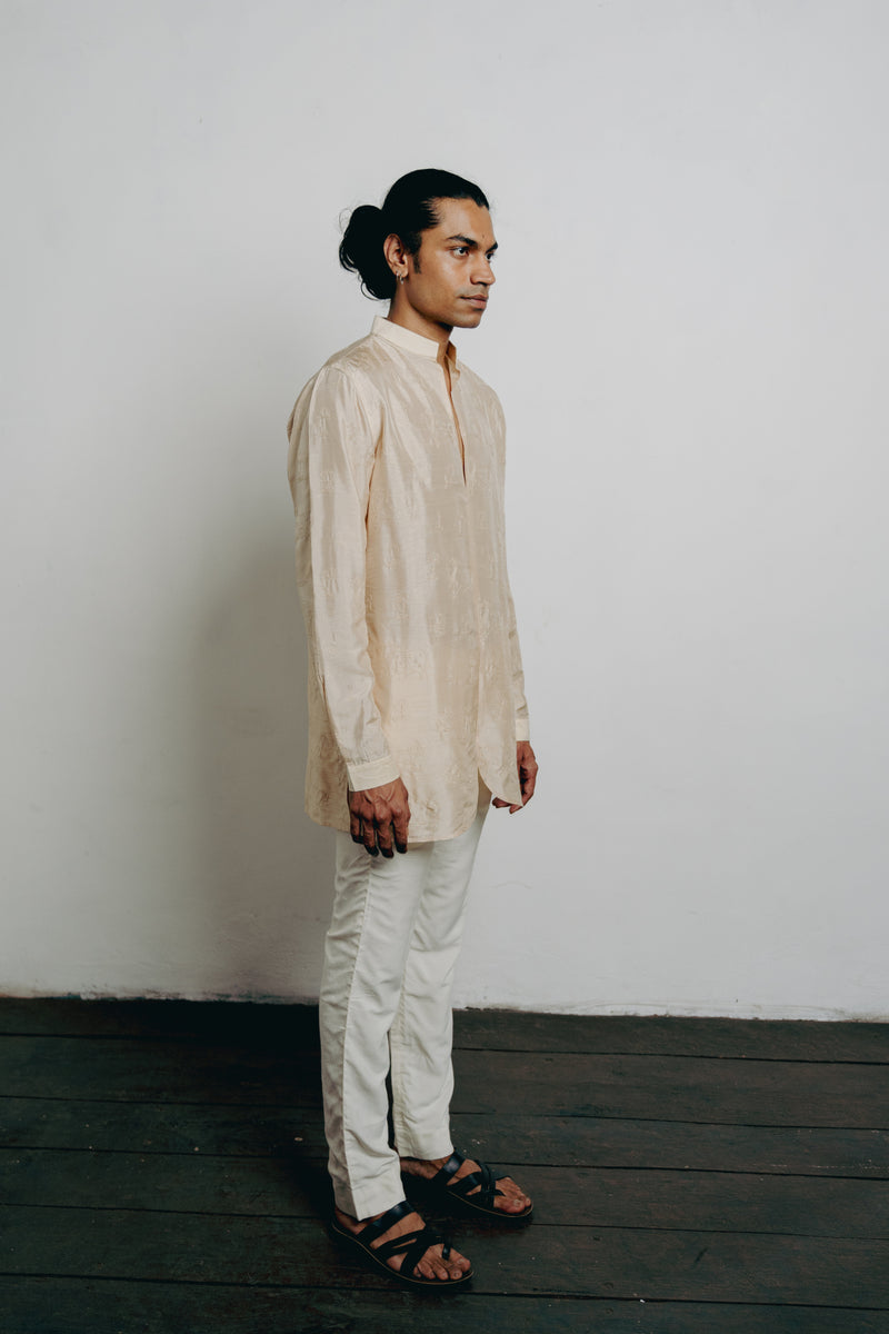 Beige All Over Lotus-Cow Embroidered Short Kurta