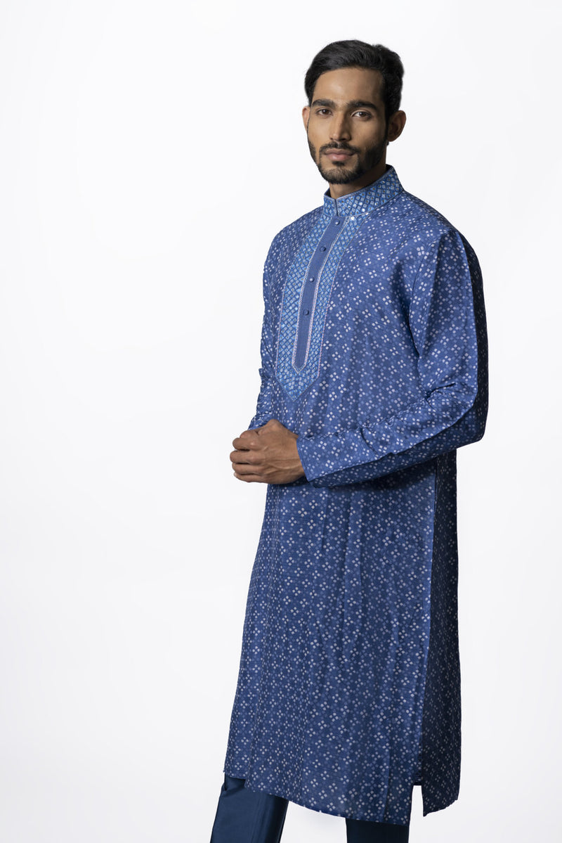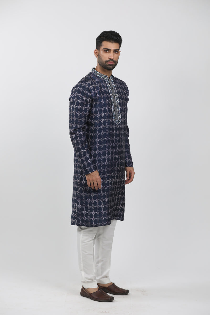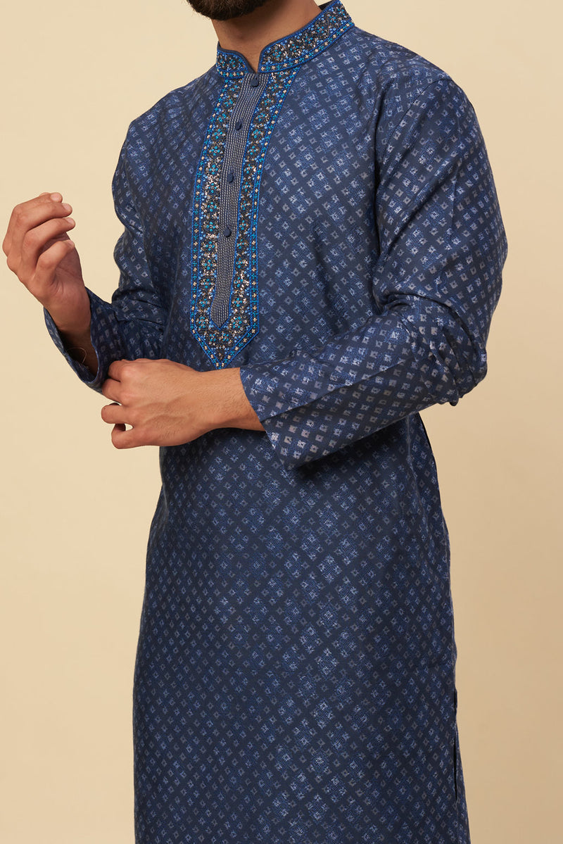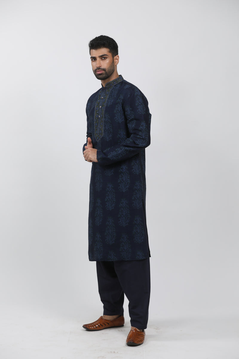 Navy Blue Printed & Embroidered Kurta Set