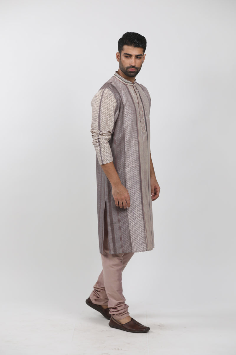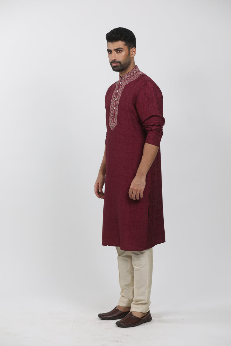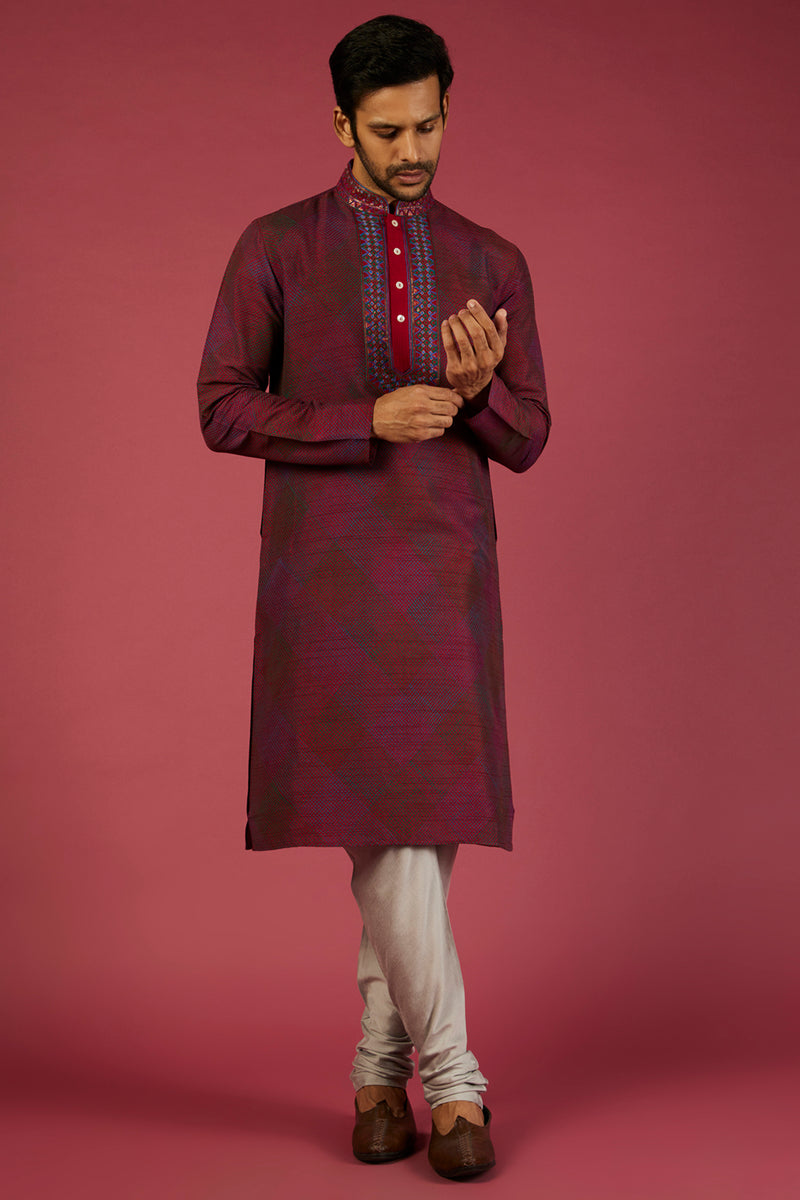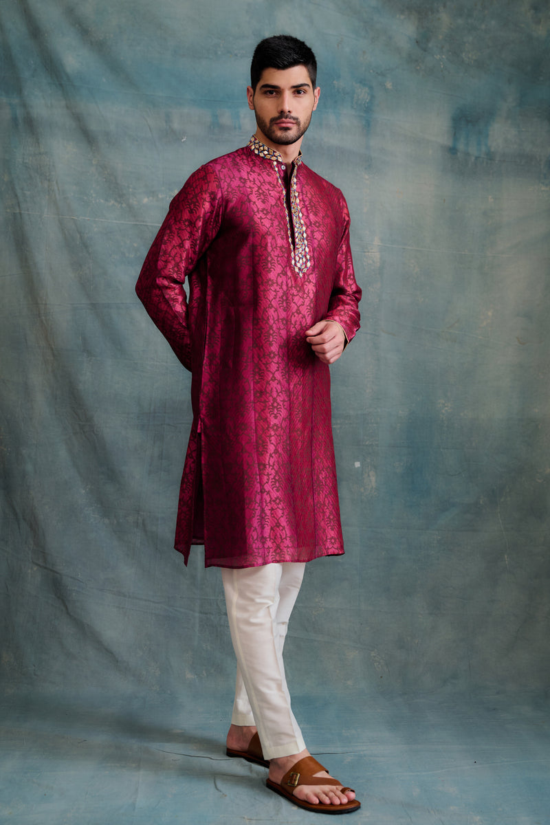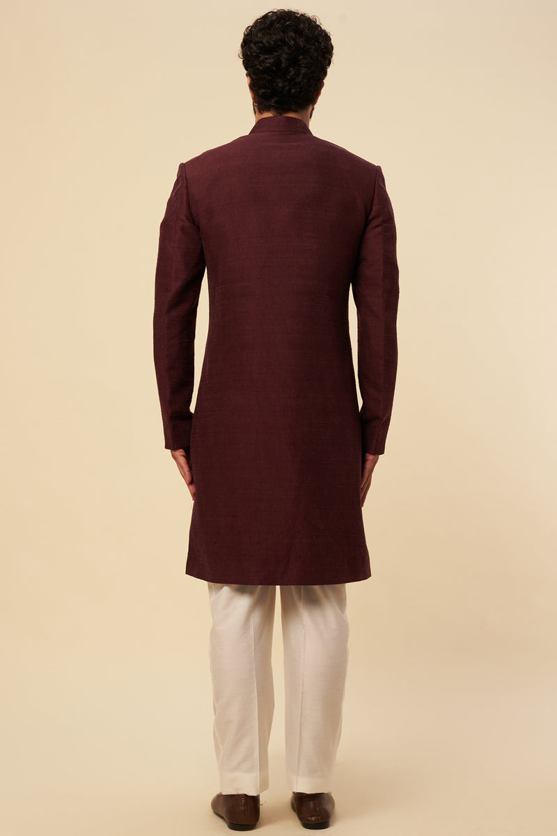 Wine Ombre Silk Zardosi Embroidered Sherwani Set