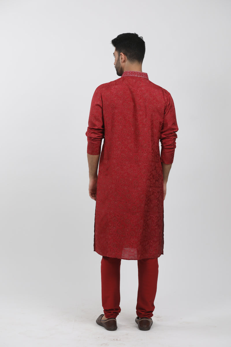 Maroon Printed Kurta Set