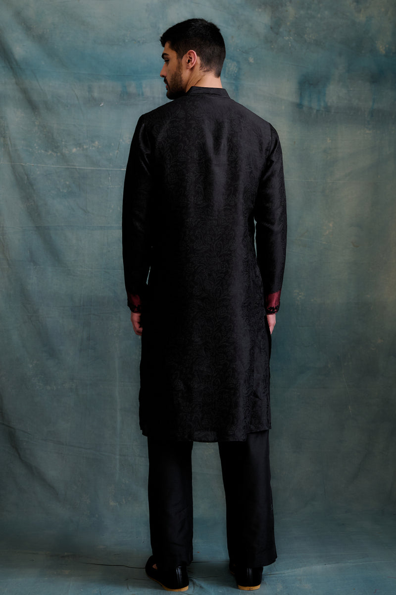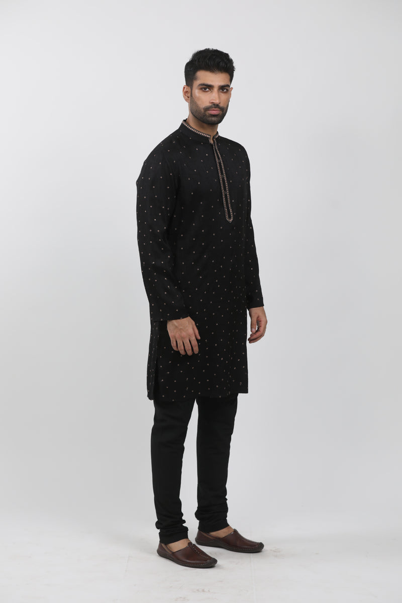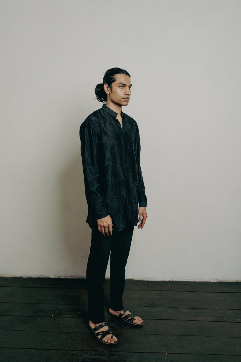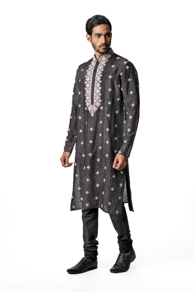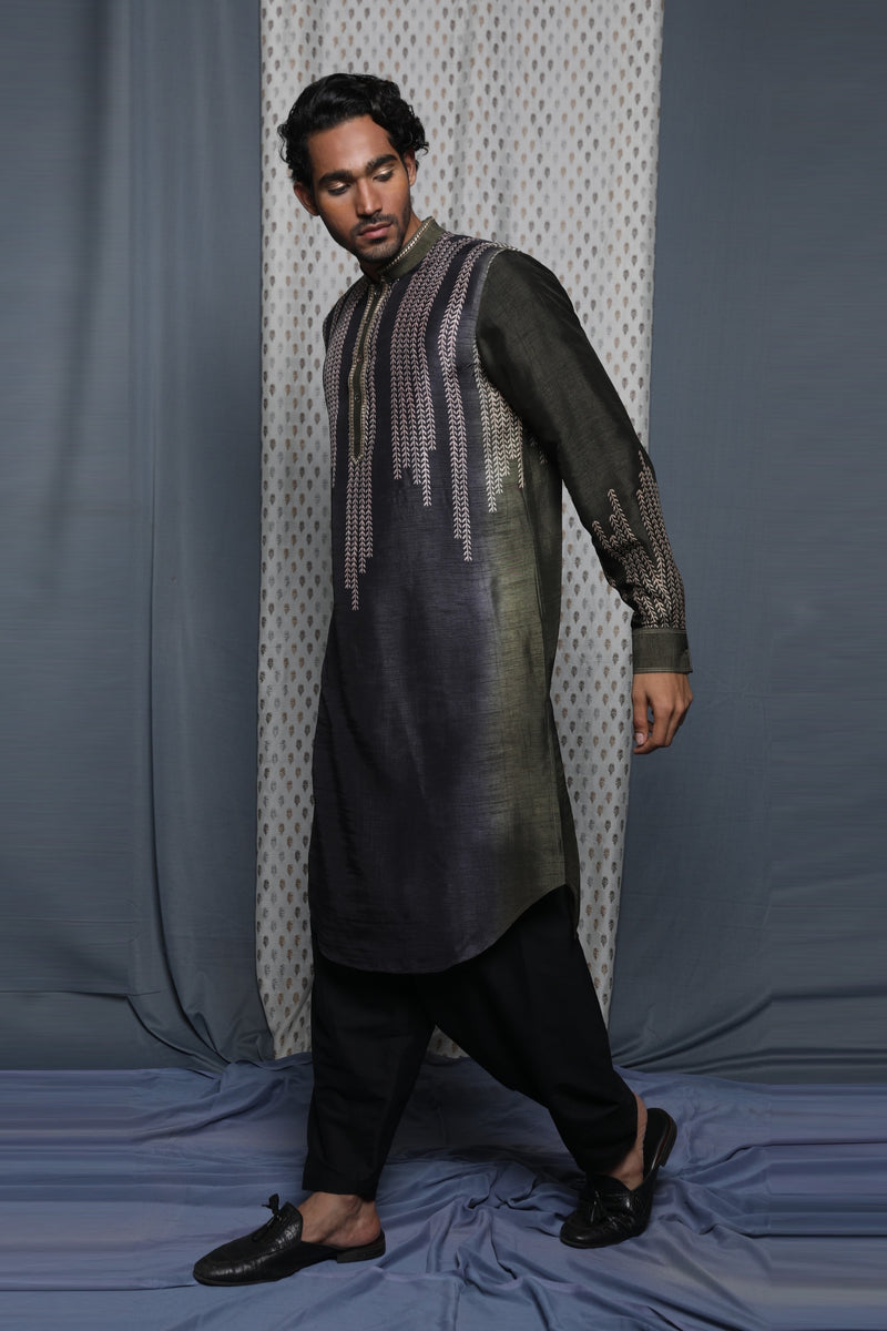 Black Tussar Thread Embroidered Kurta