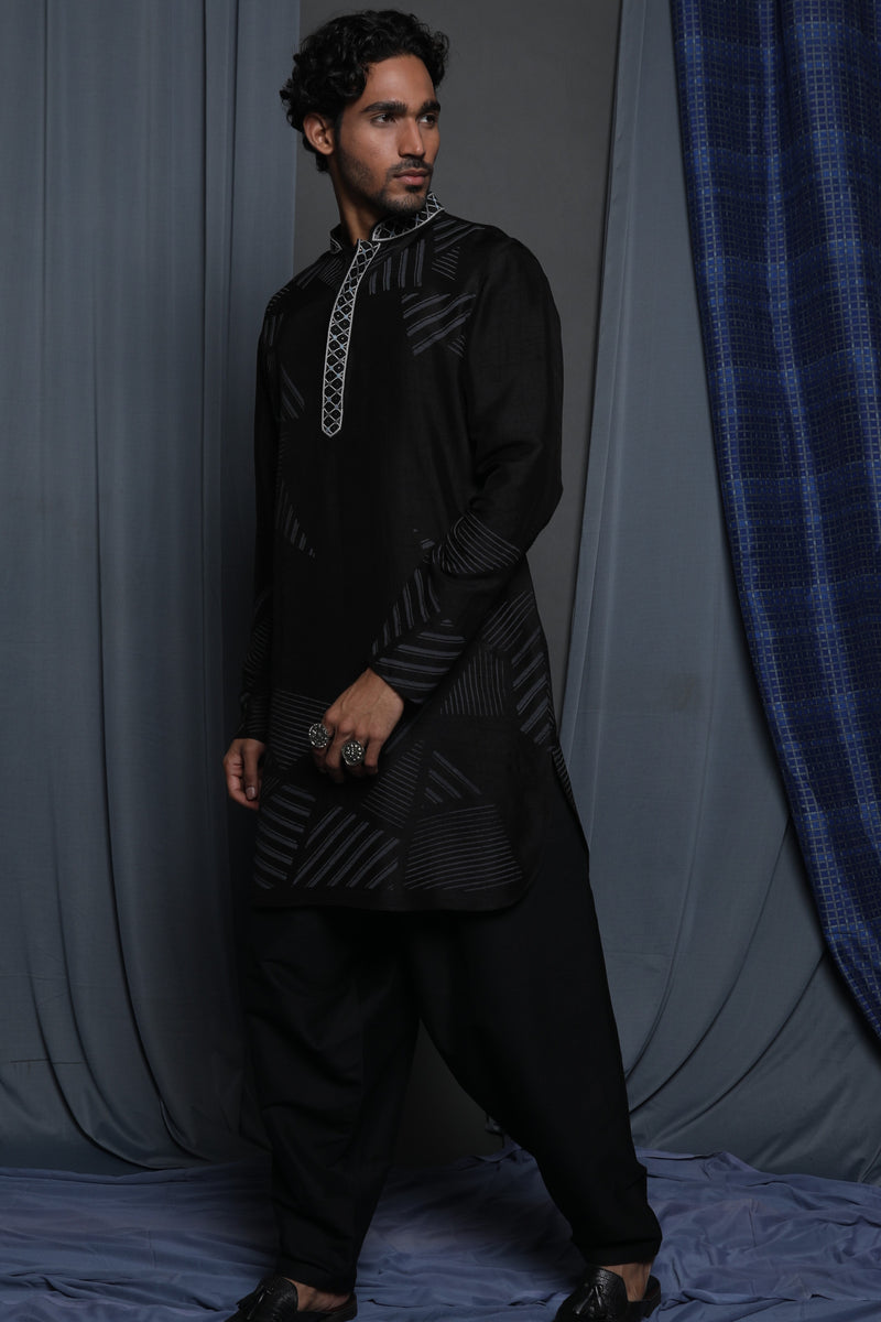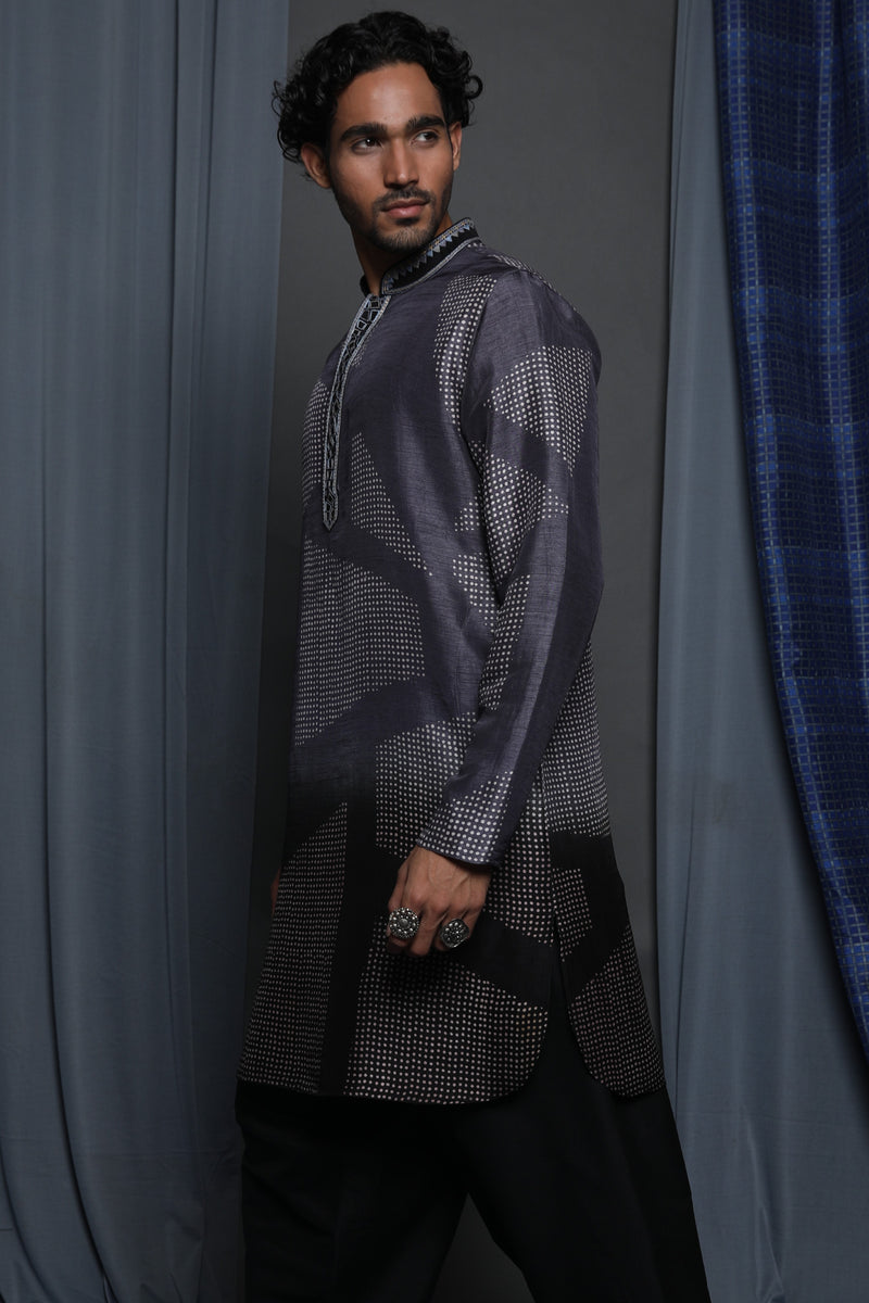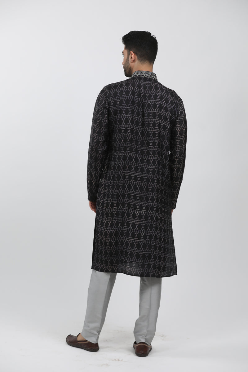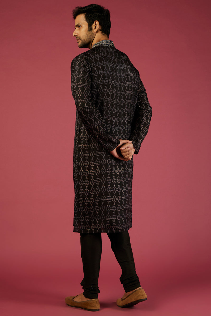 Black Tussar Thread Embroidered Kurta