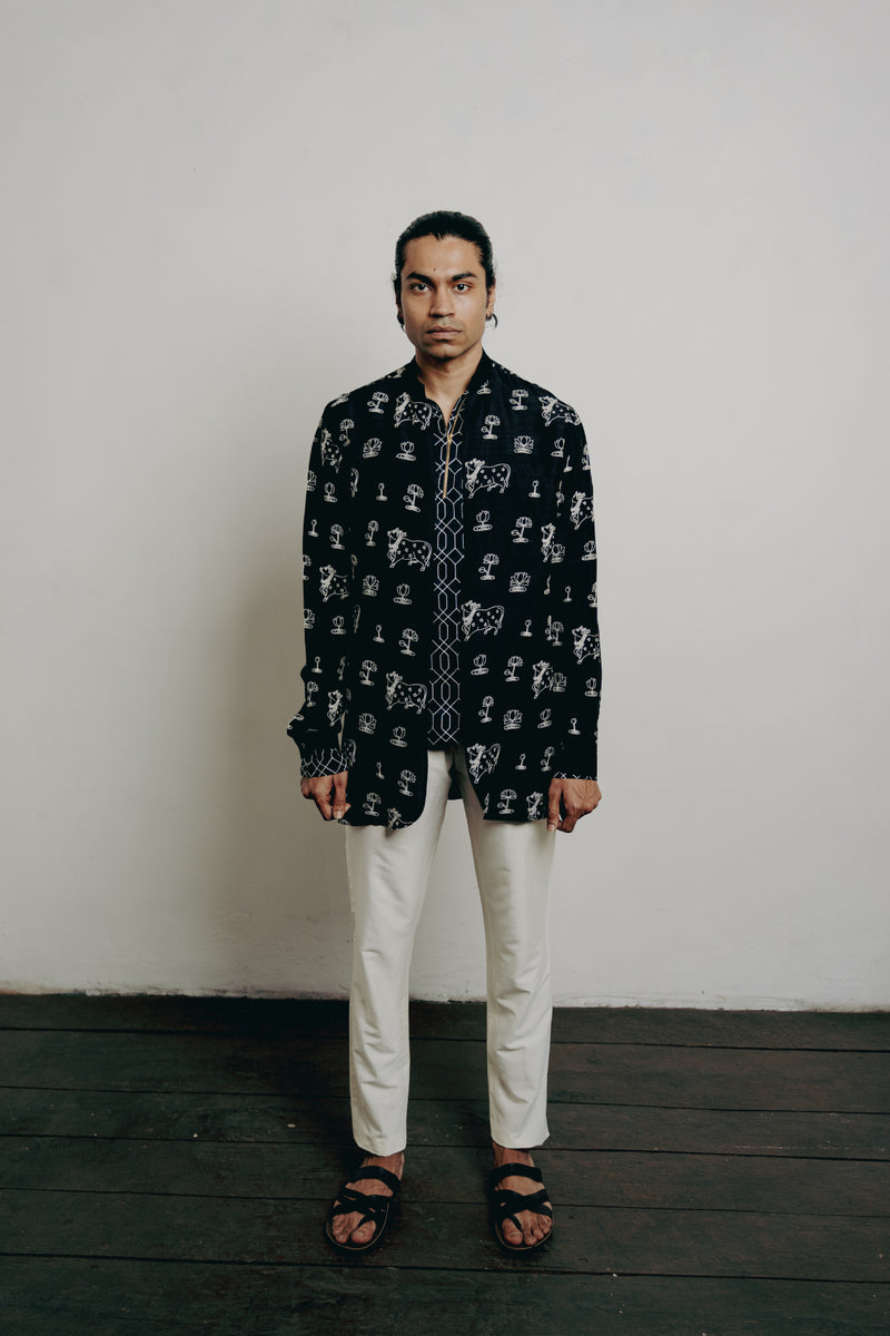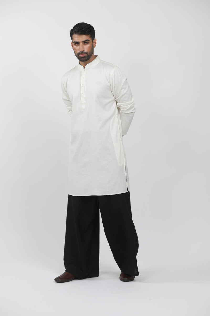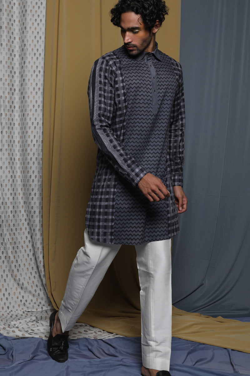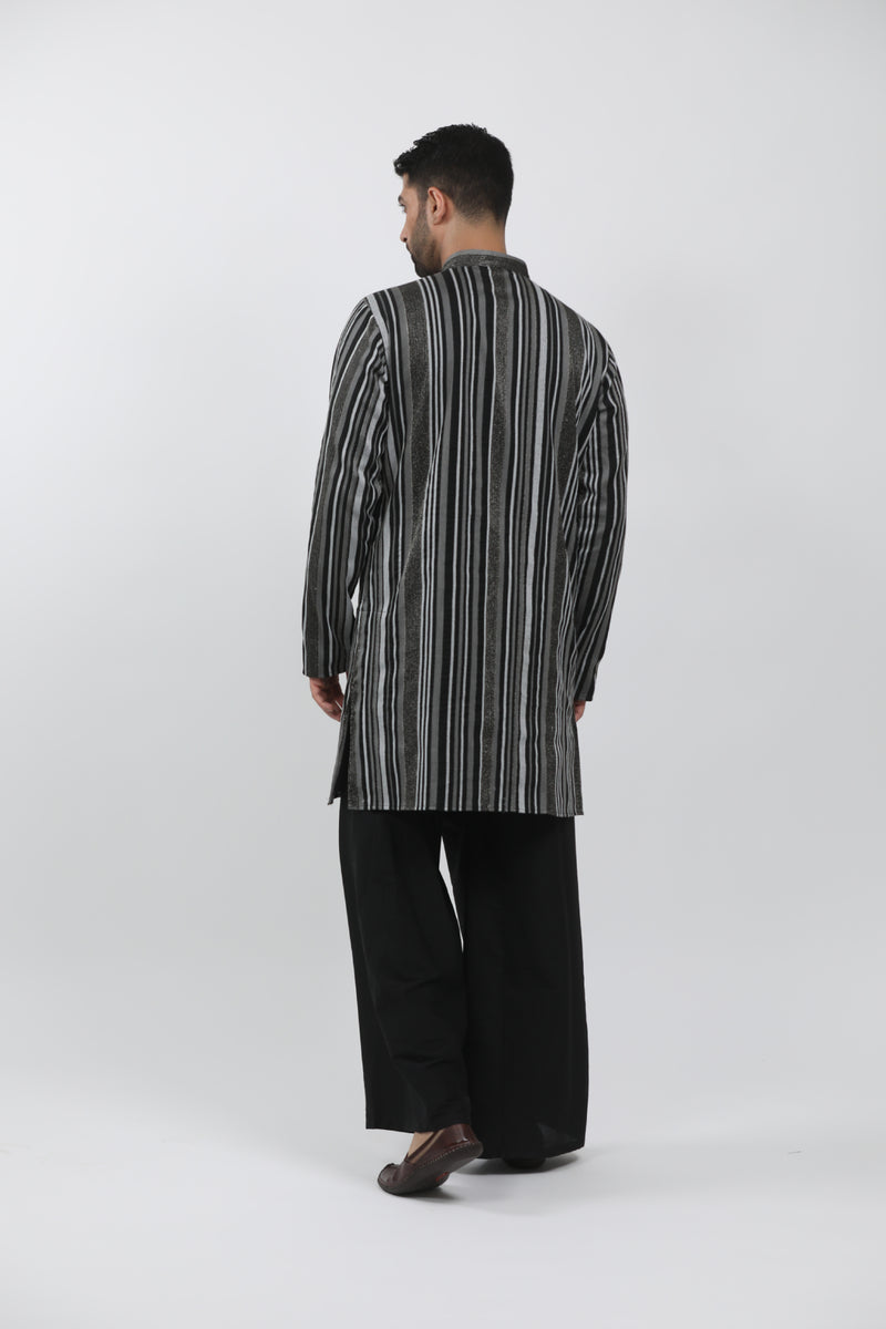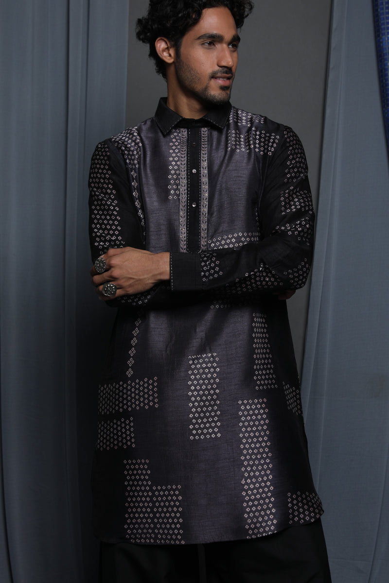 Black Tussar Thread Embroidered Kurta