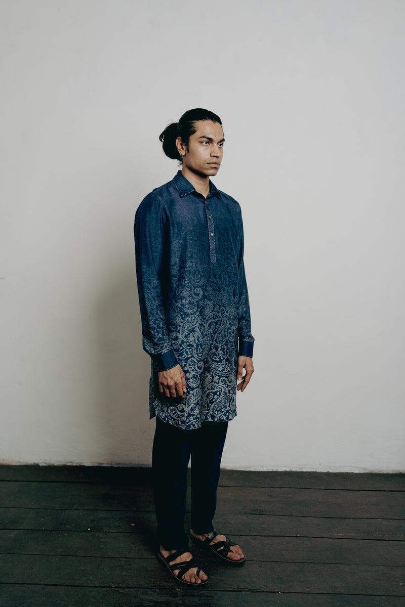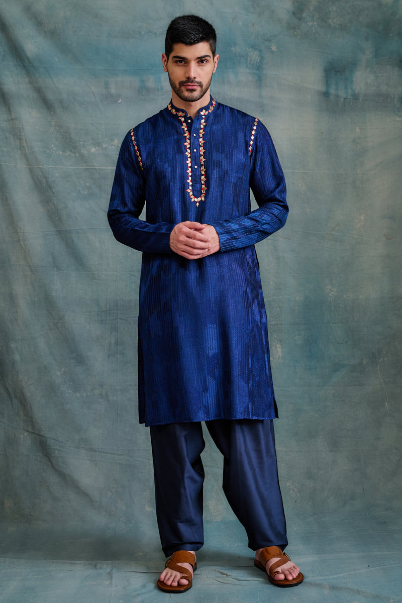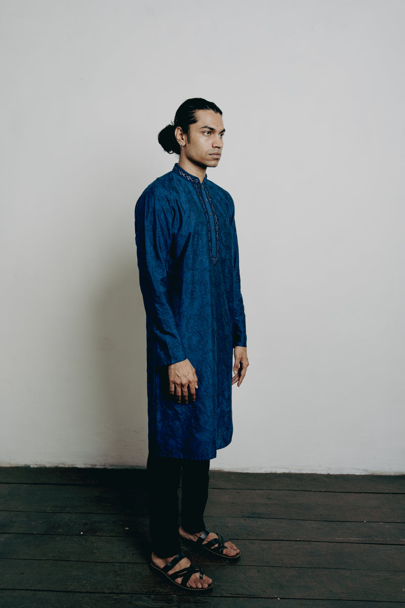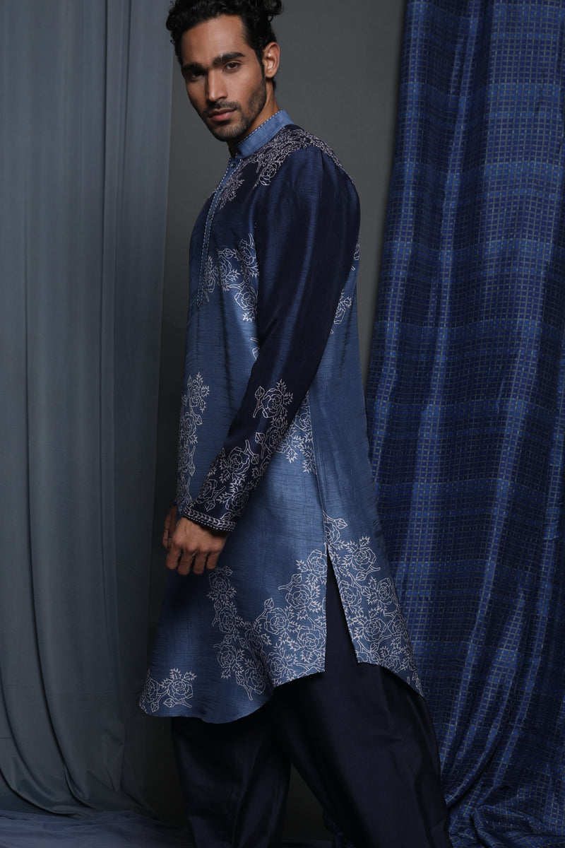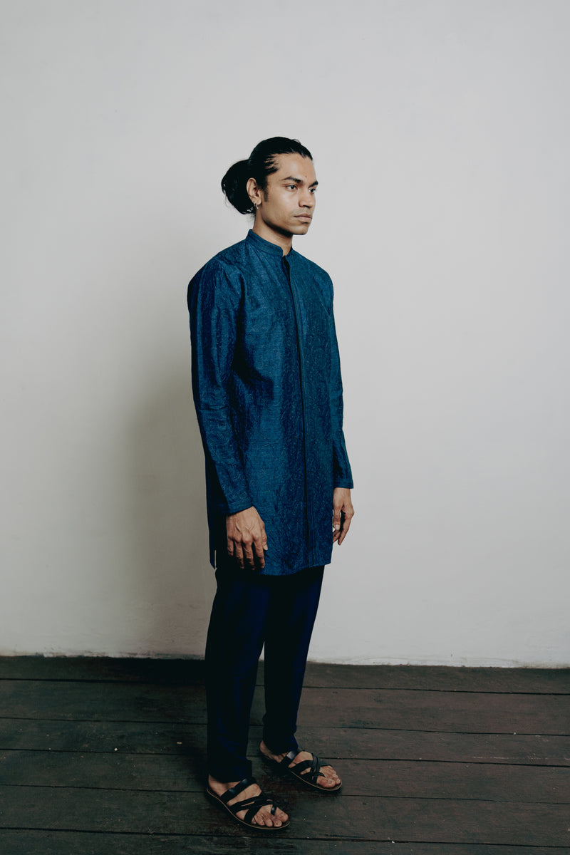 Indigo Tussar Thread Embroidered Kurta