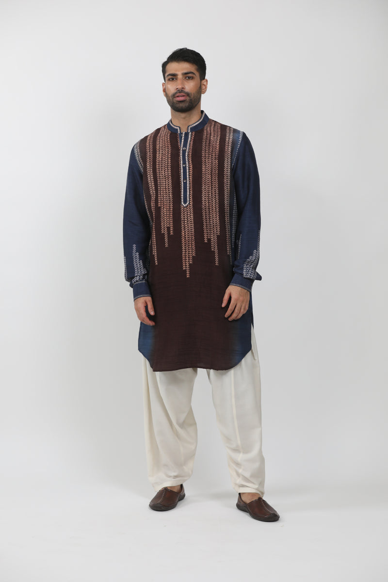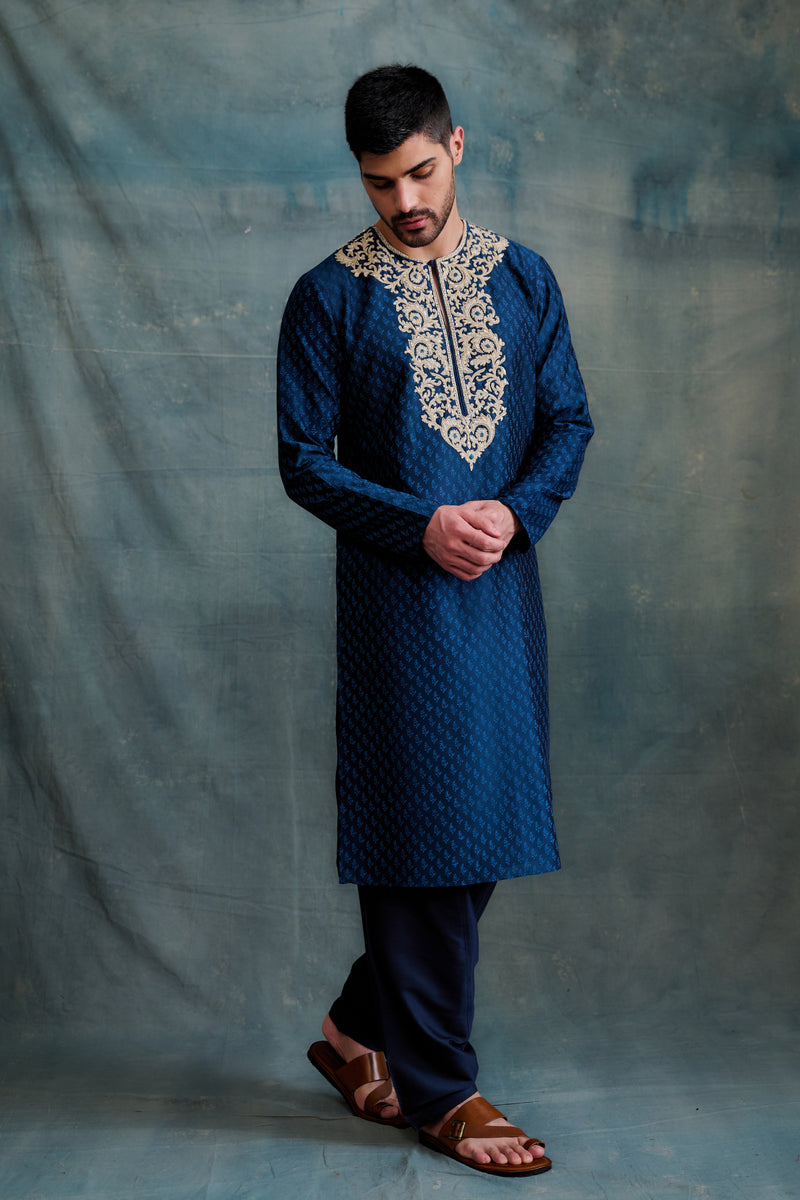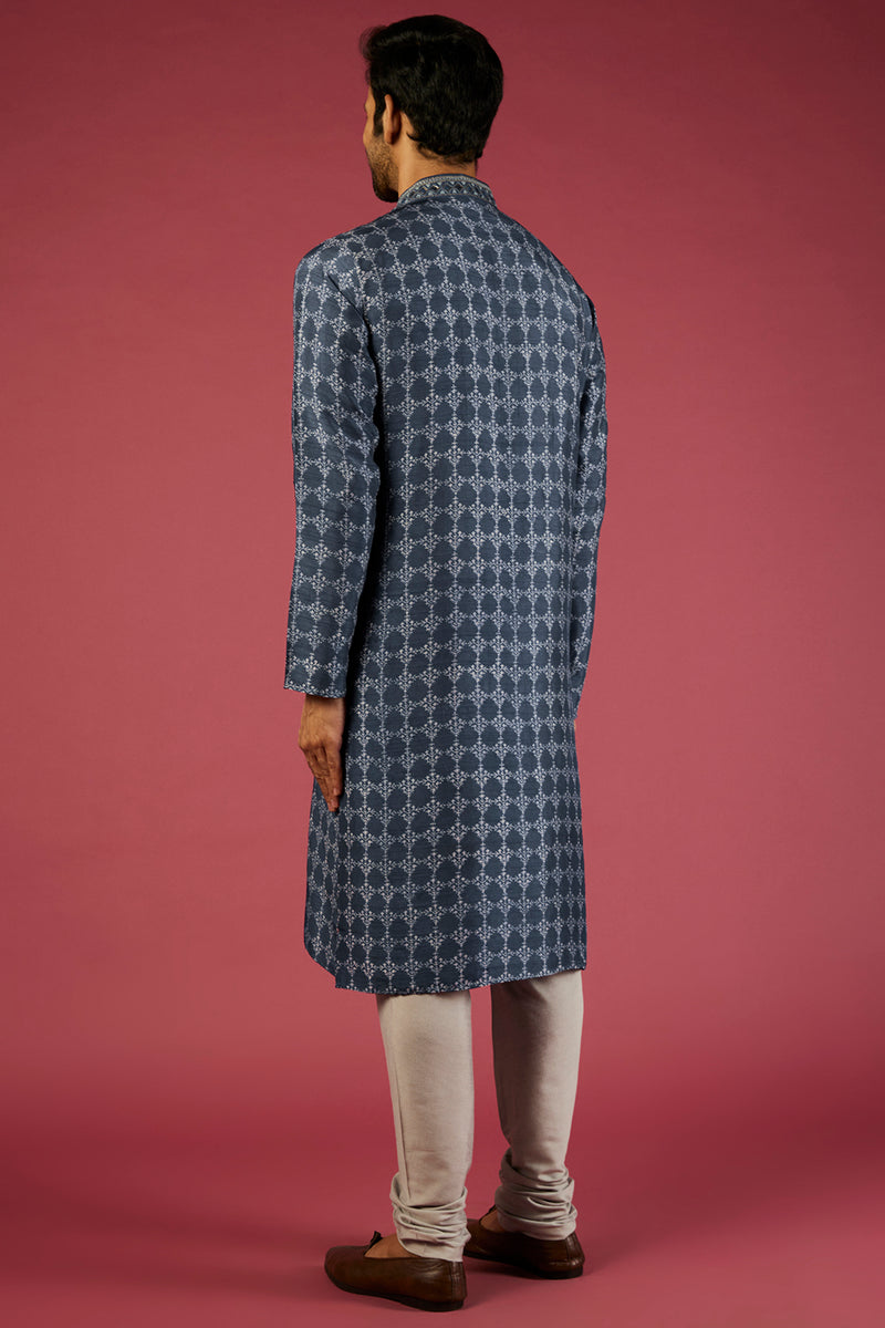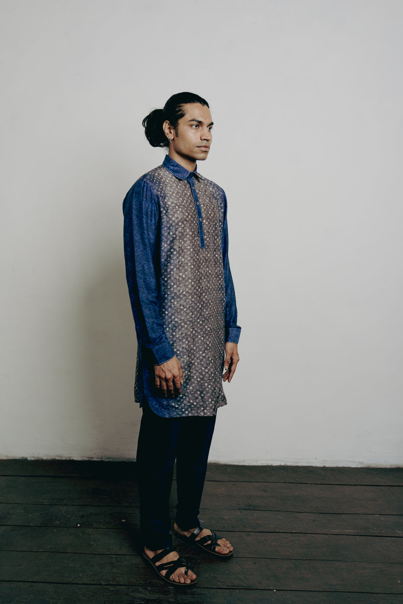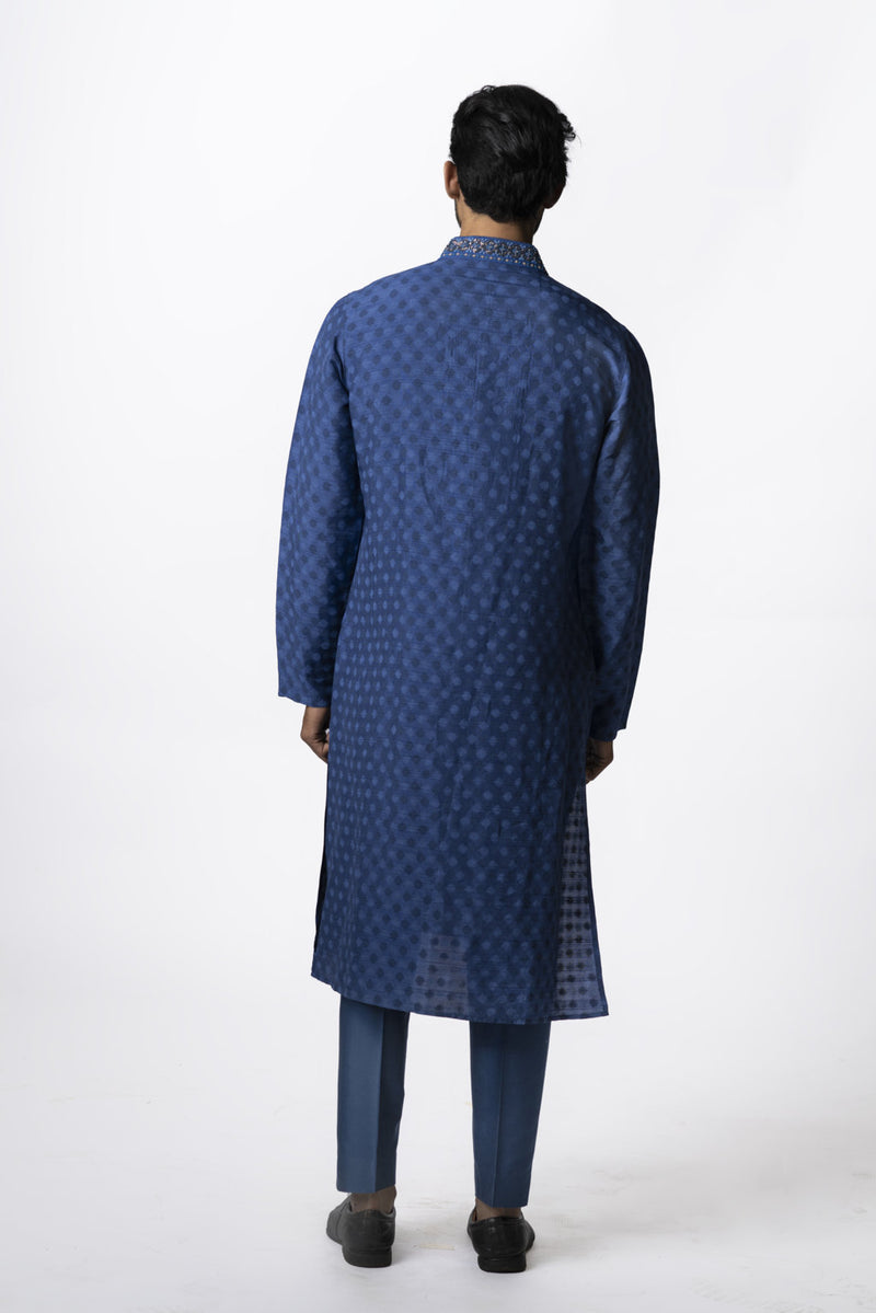 Indigo Tussar Thread Embroidered Kurta