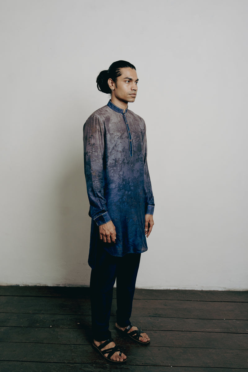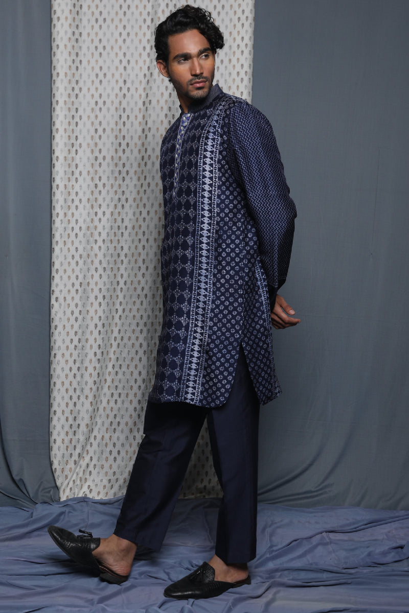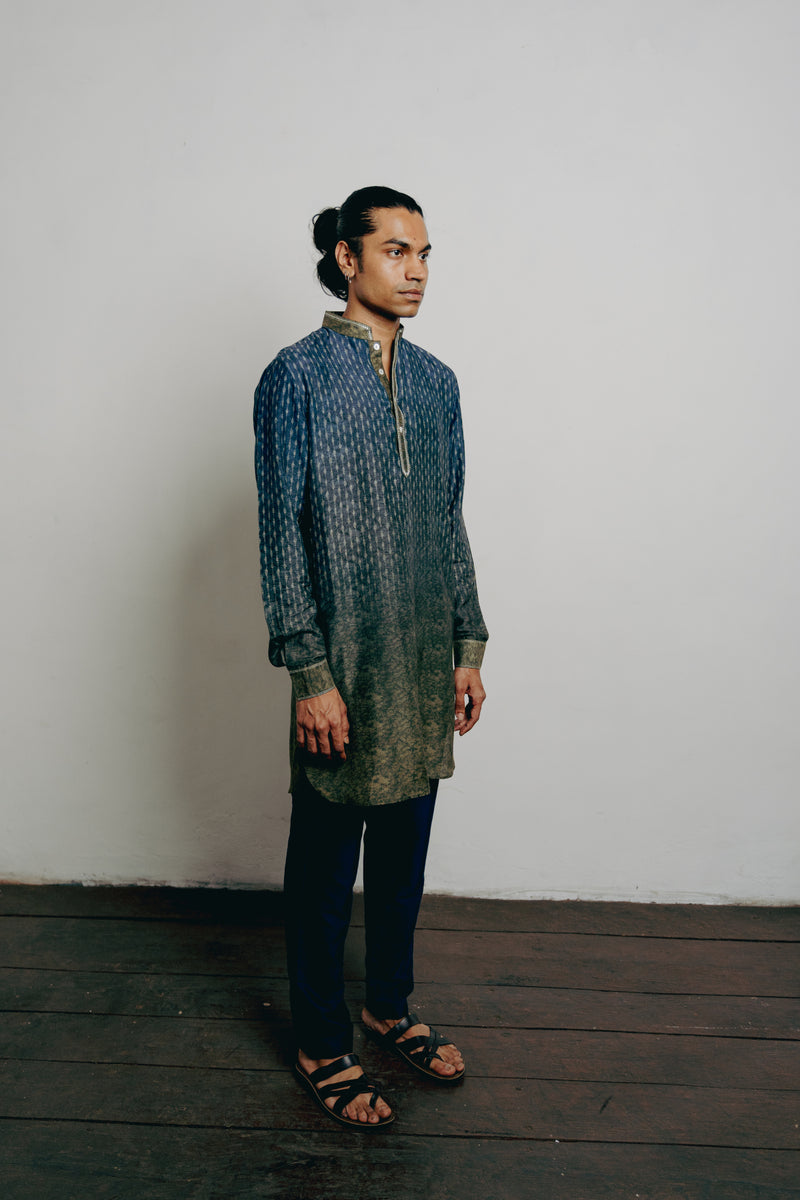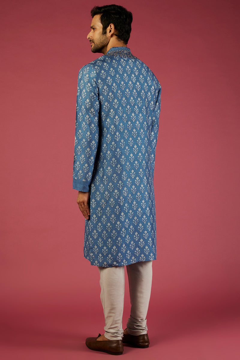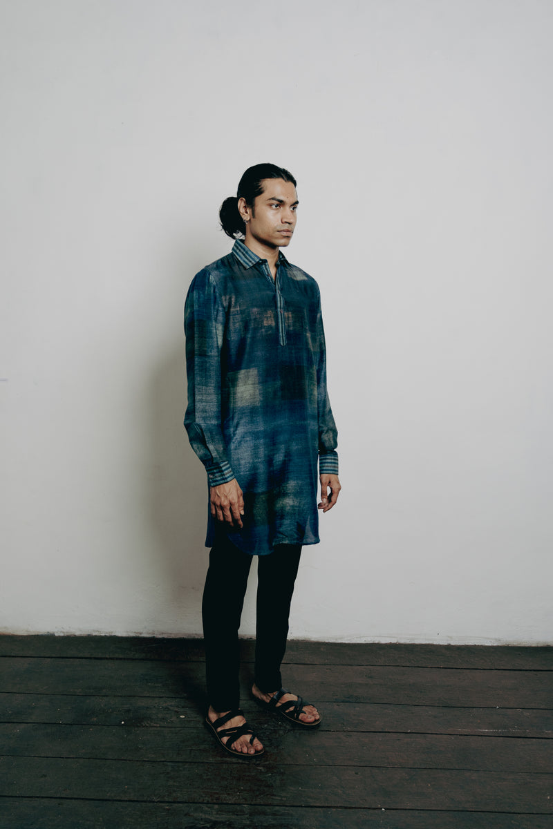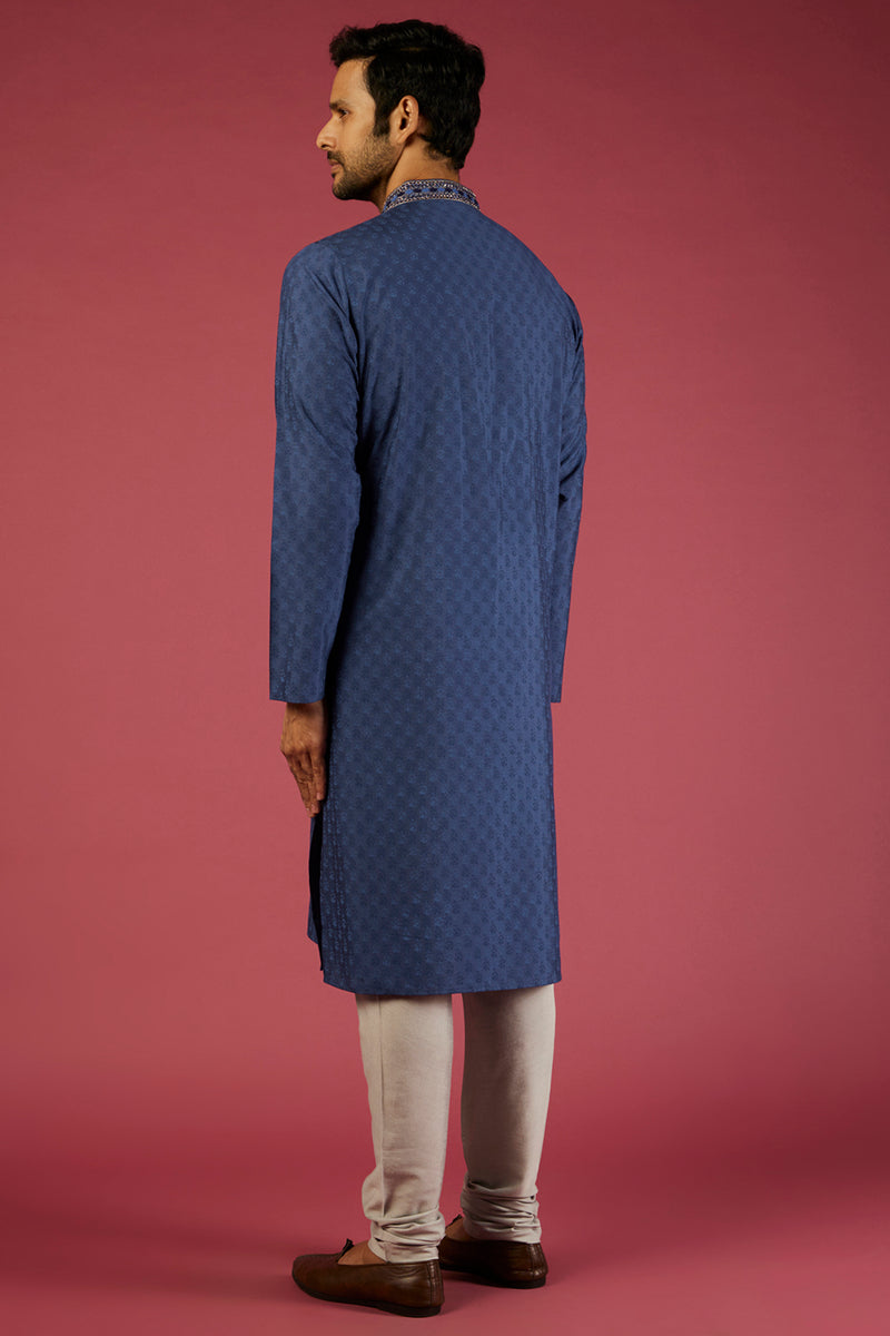 Indigo Tussar Thread Embroidered Kurta