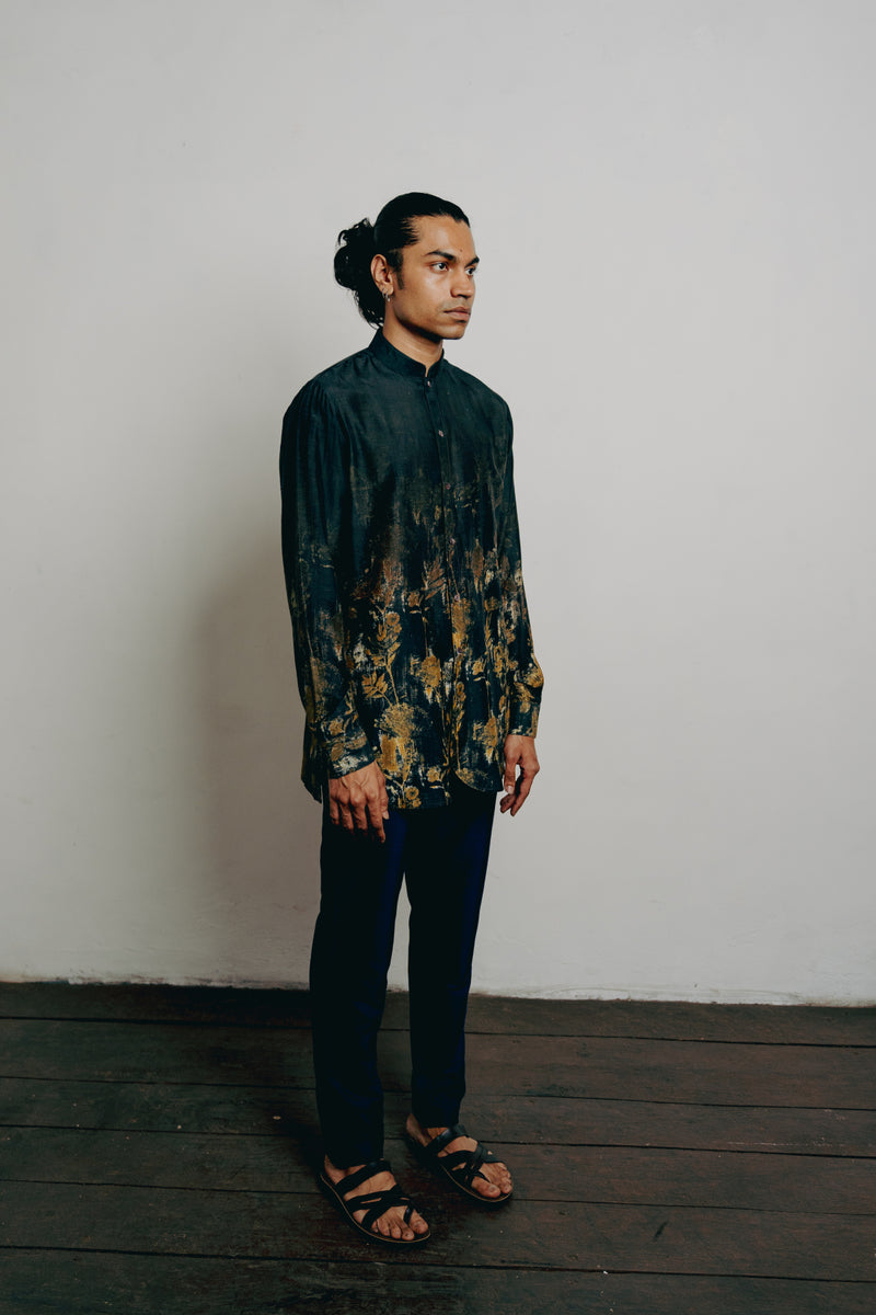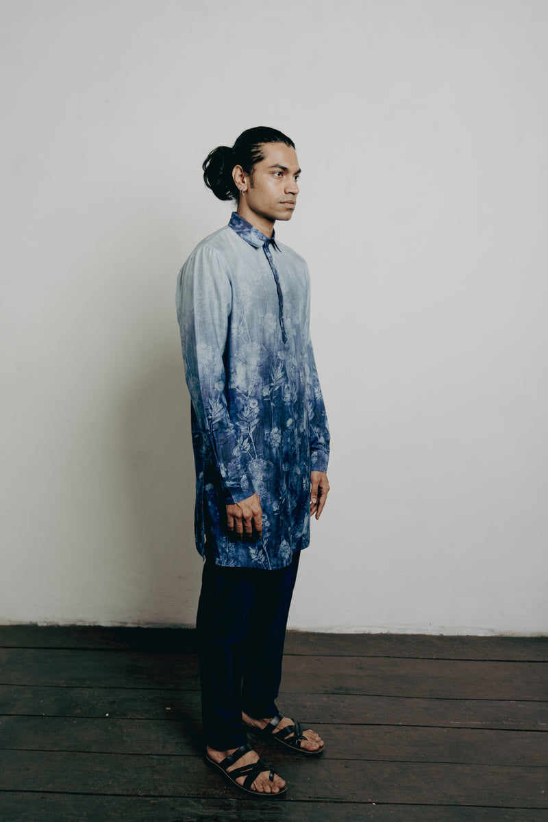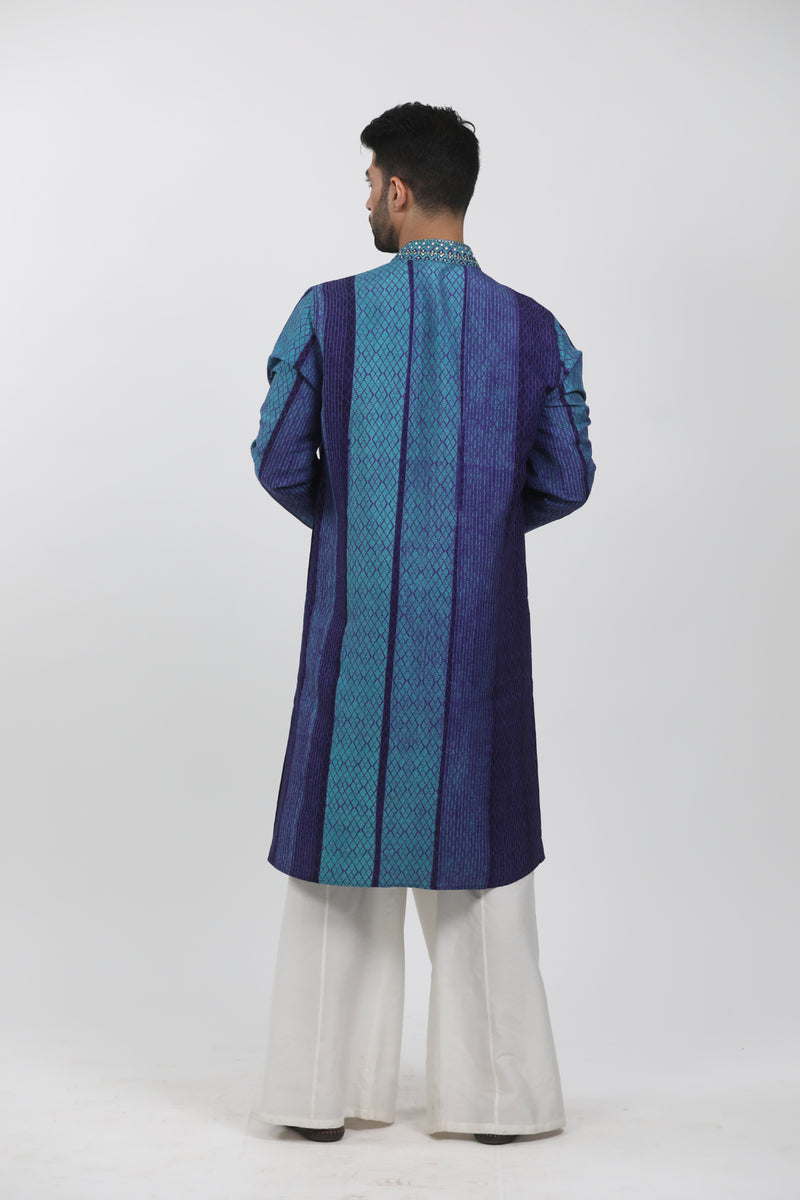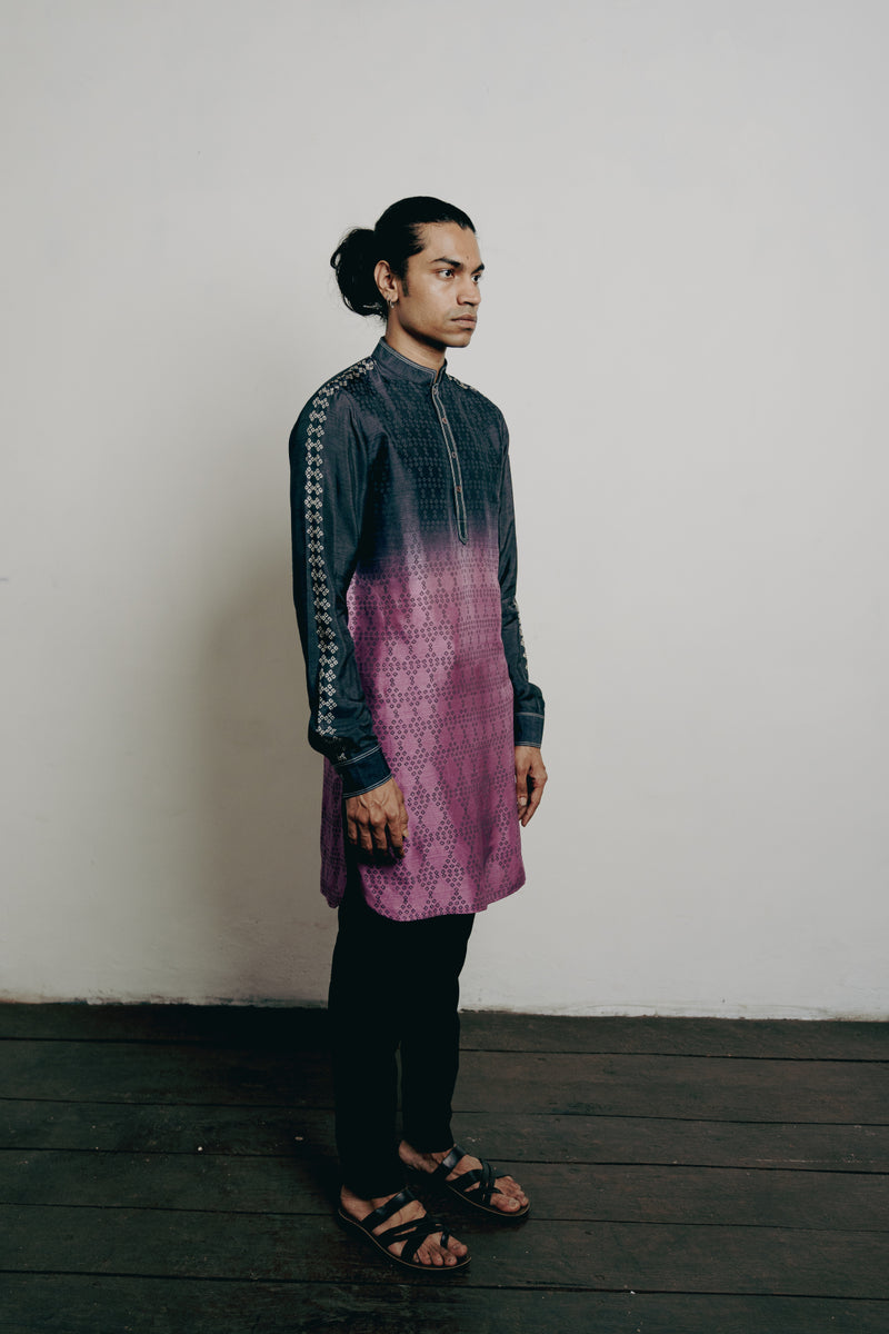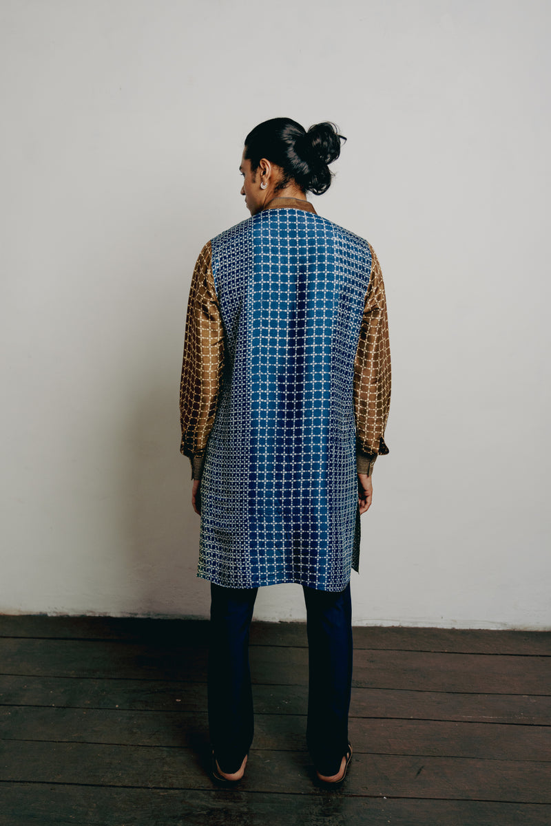 Indigo Tussar Thread Embroidered Kurta