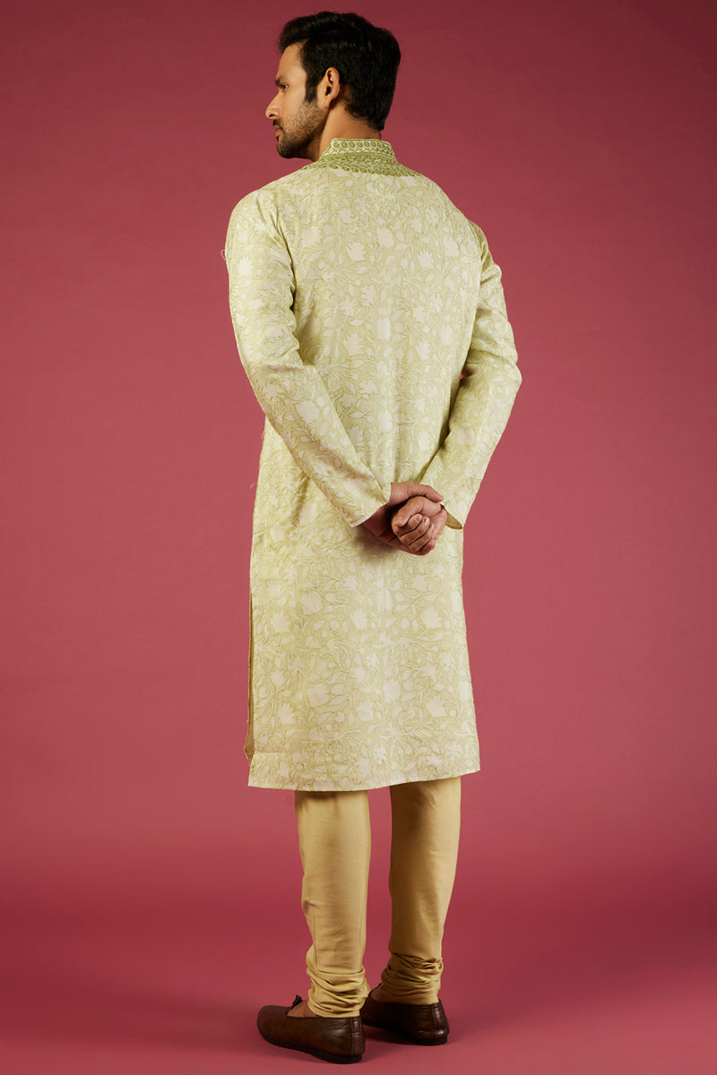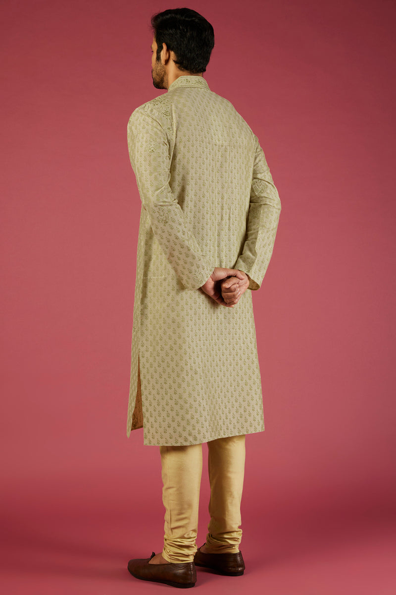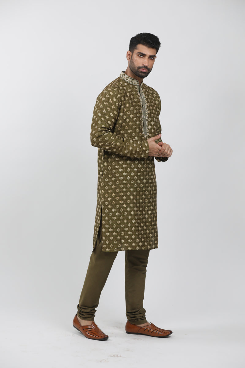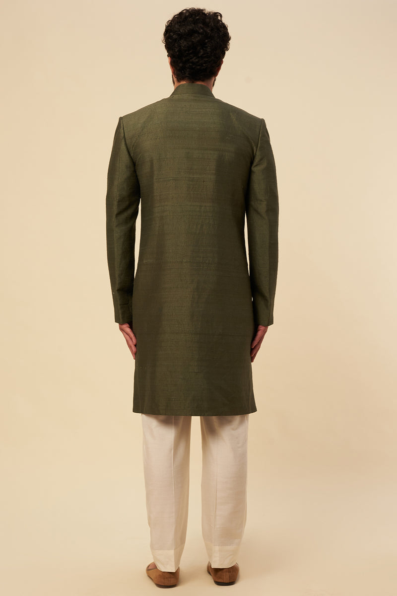 Olive Green Raw Silk Zardosi Embroidered Sherwani Set