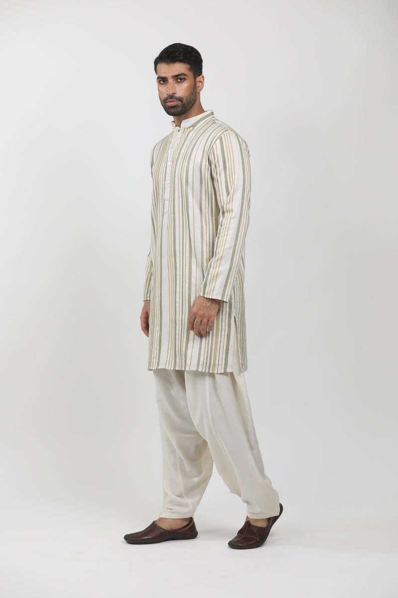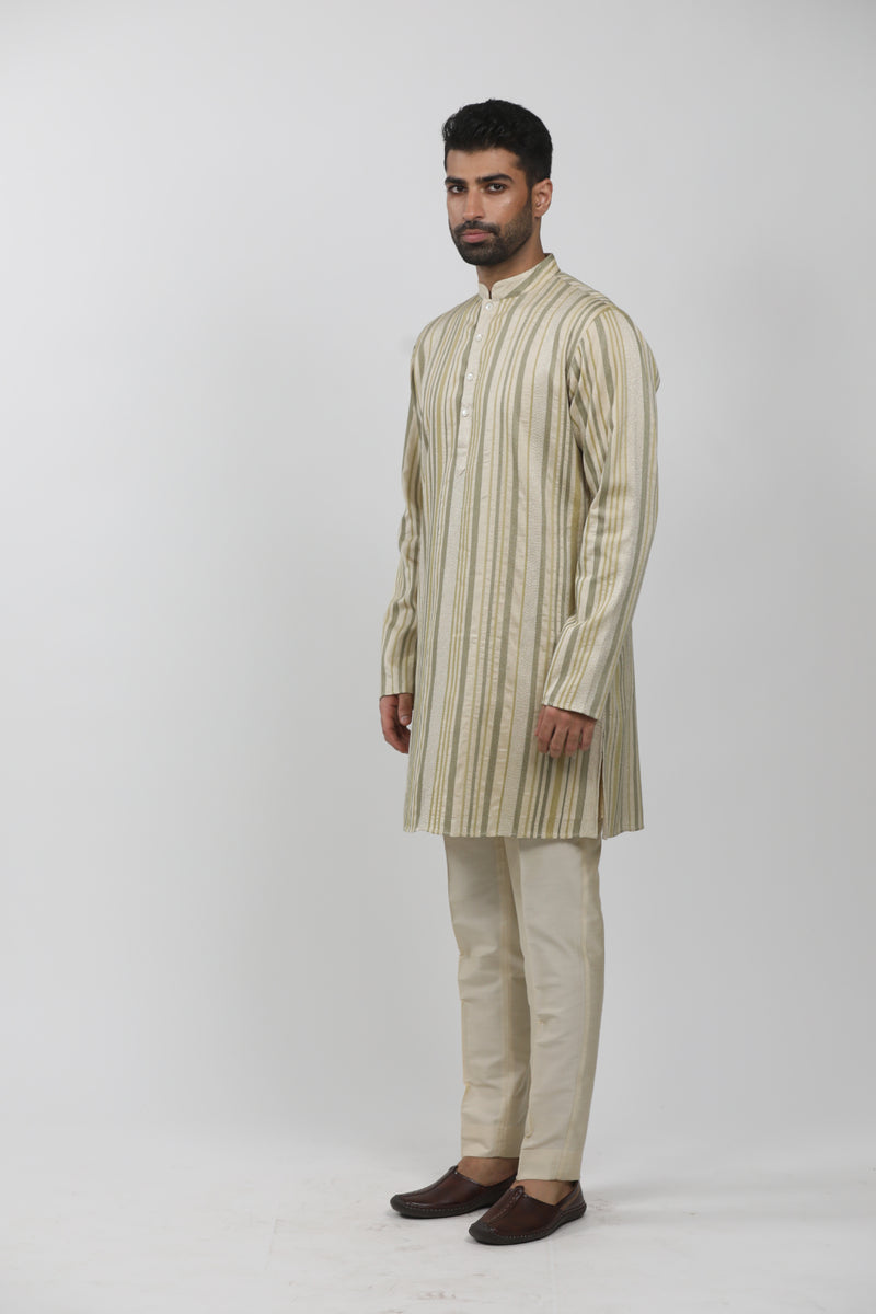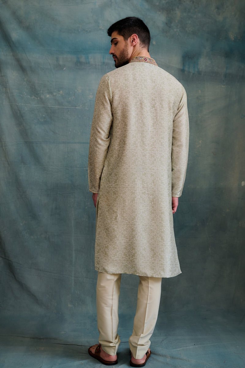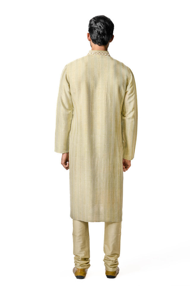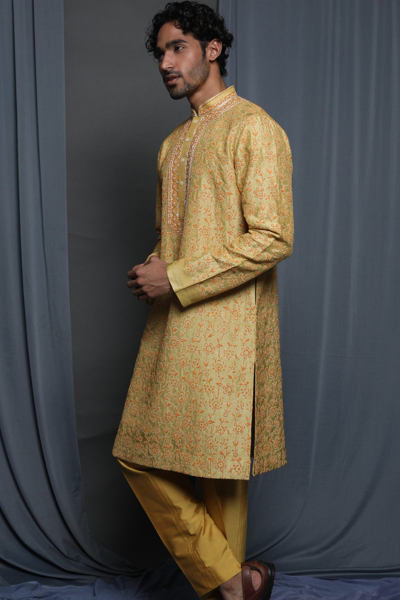Olive Green Raw Silk Zardosi Embroidered Sherwani Set