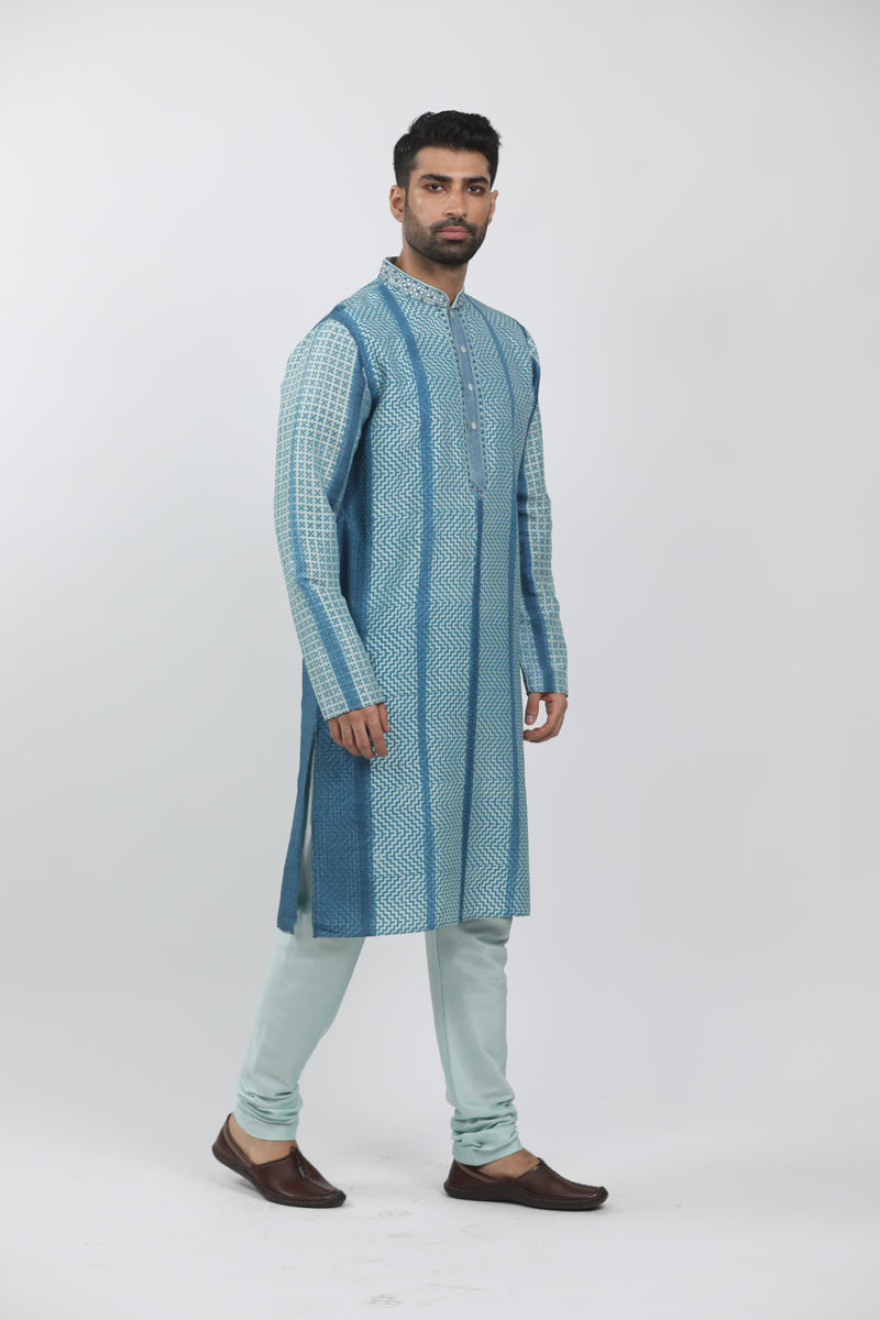 Sky Blue Tussar Printed Kurta Set