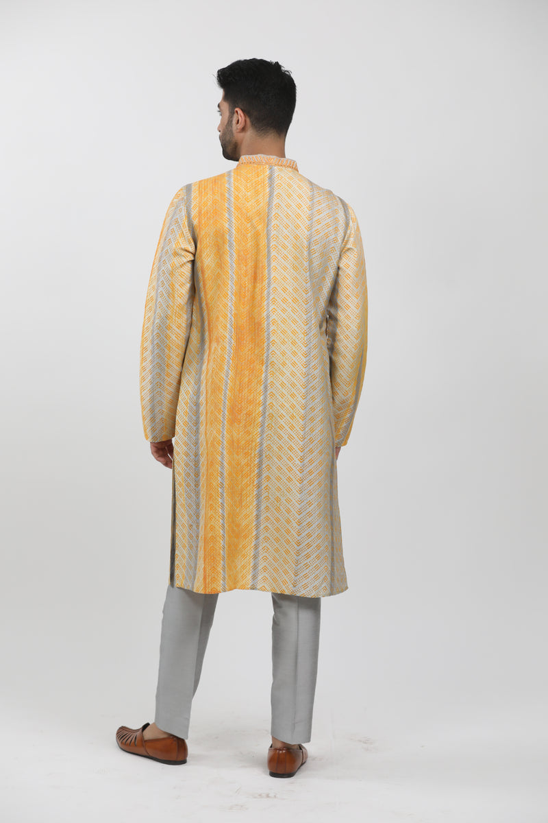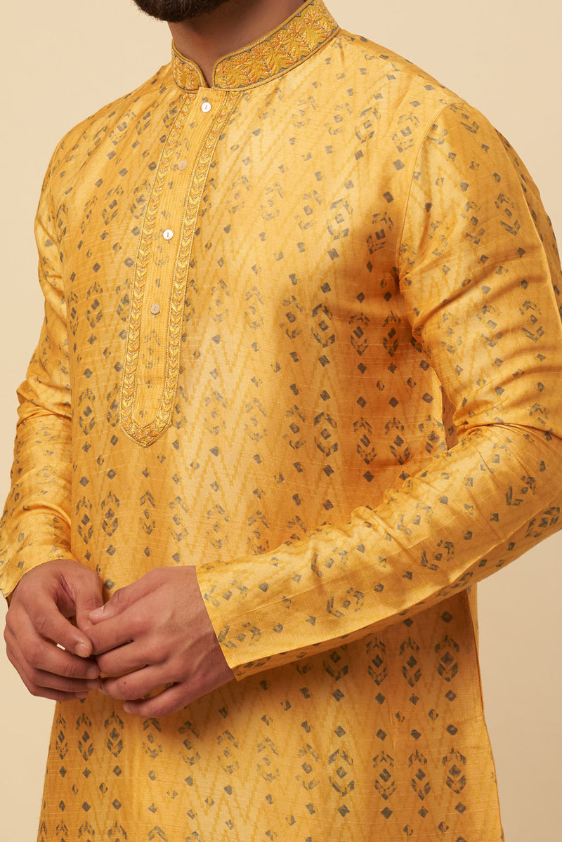 Yellow Tussar Embroidered & Printed Kurta Set