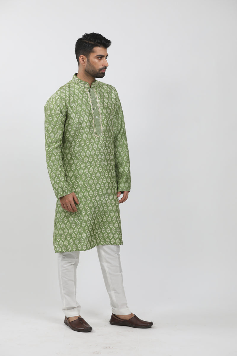 Green Block printed Kurta set