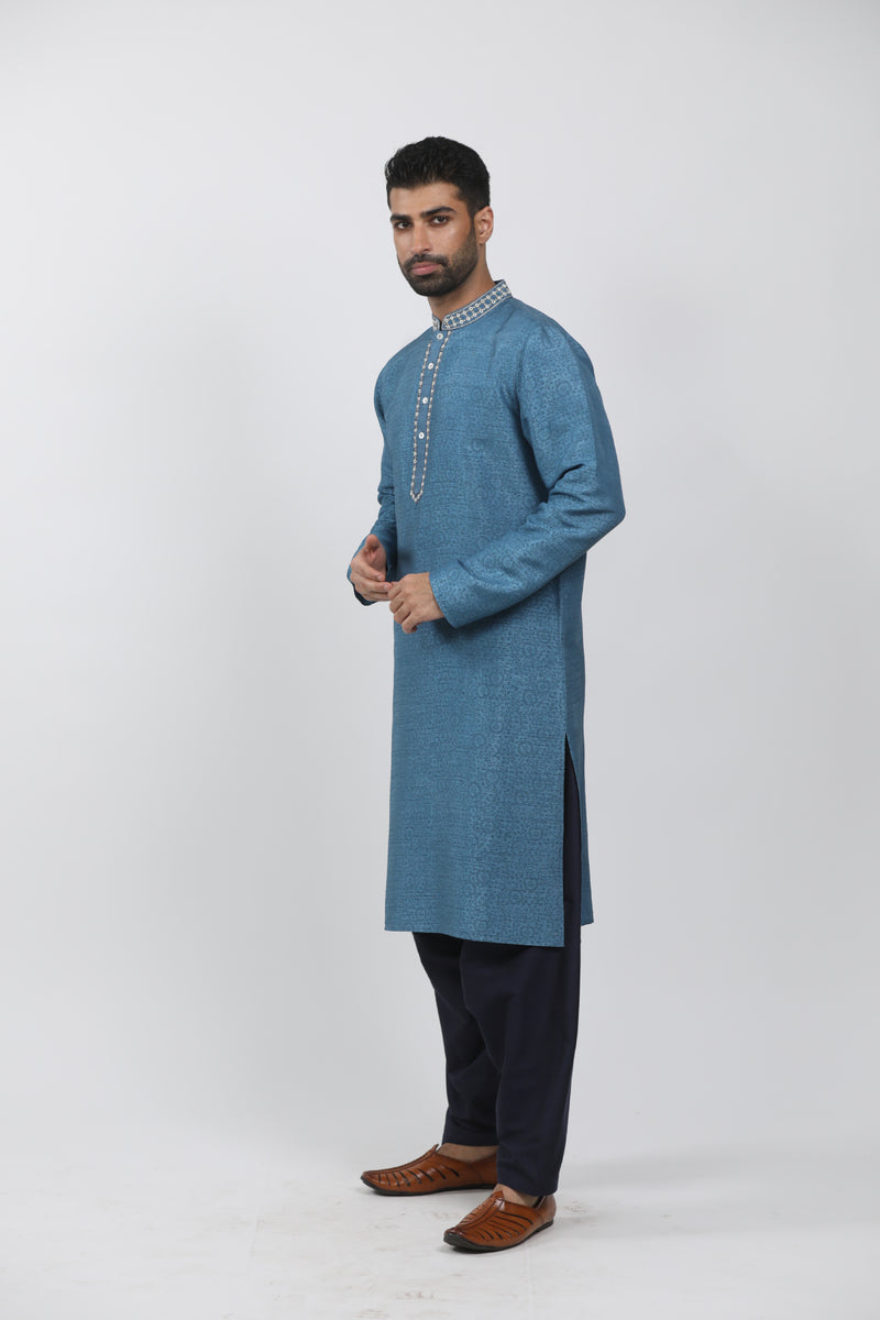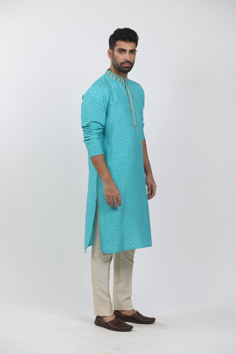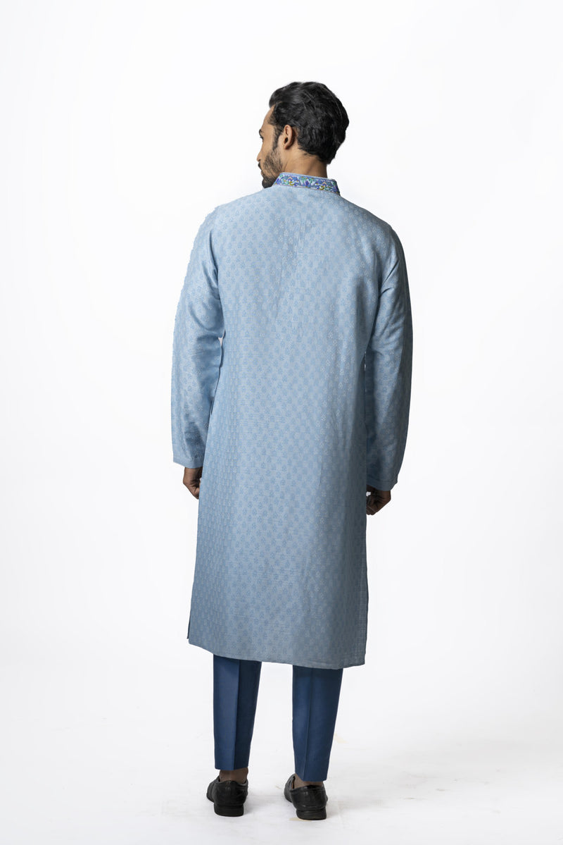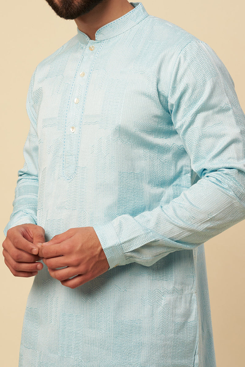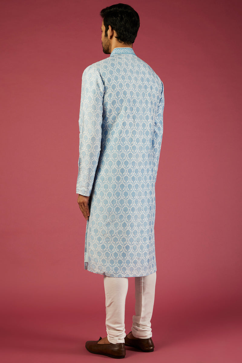 Sky blue kurta set with all over embroidery