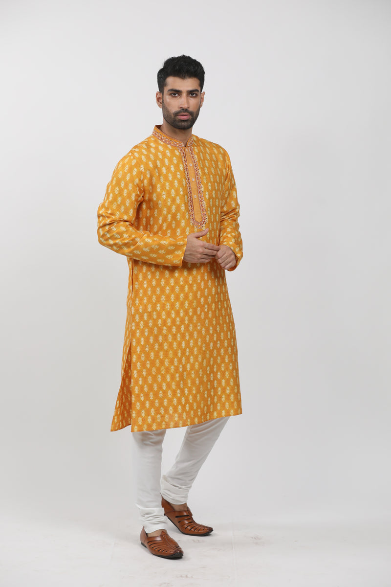 Mustard Printed kurta set