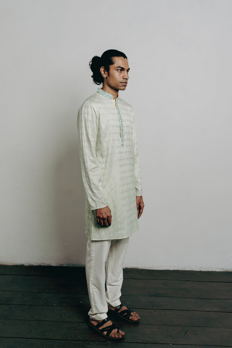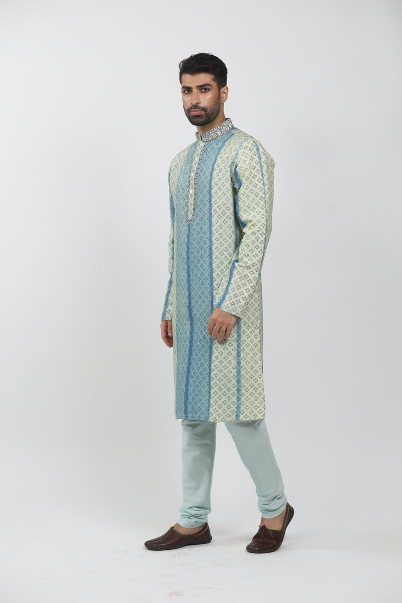 Light Blue & Pista Tussar Tie-Dye Kurta Set