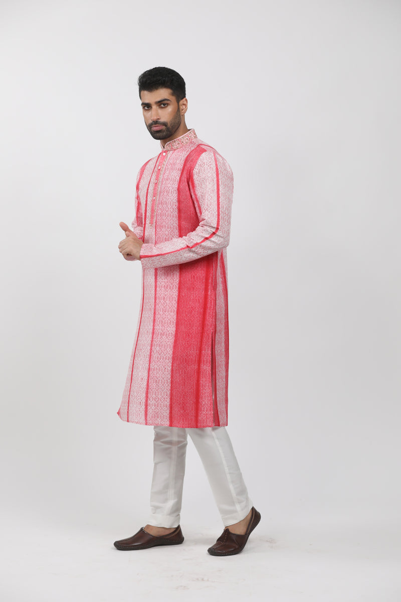 Red Block Printed Kurta Set