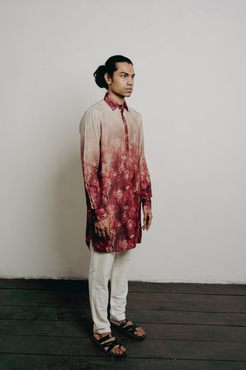 Maroon Shaded Floral Printed Short Kurta Set