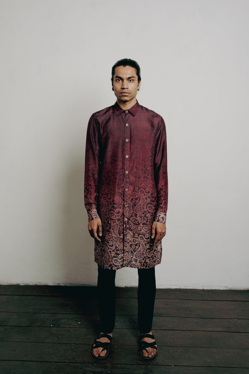 Maroon Paisley Printed Open Short Kurta Set