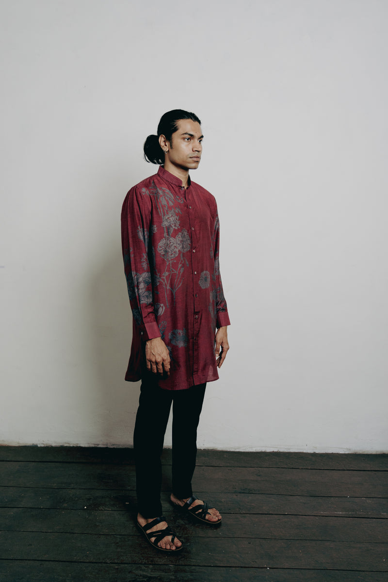 Maroon Floral Printed Short Kurta Set