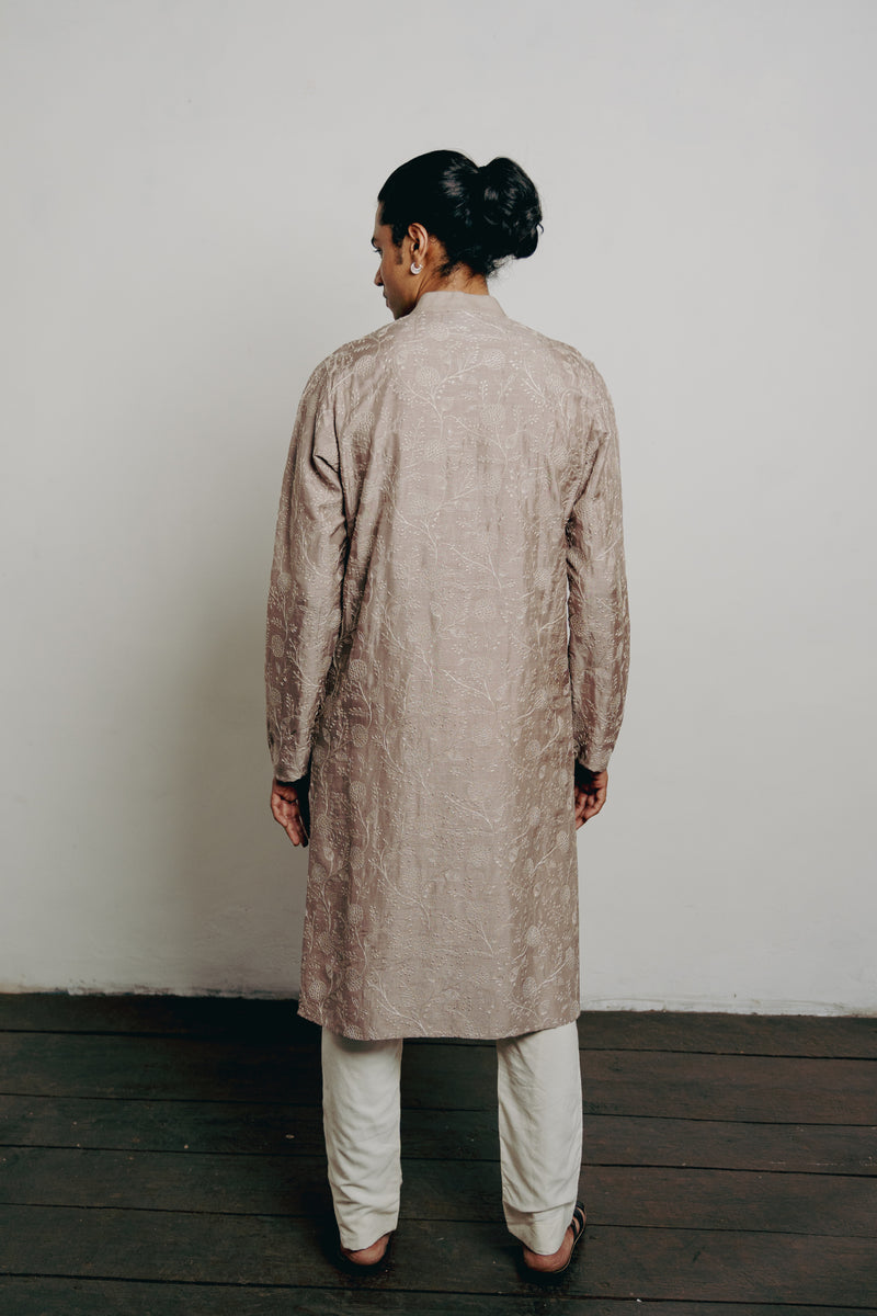 Grey Tussar Zardosi Hand Embroidered Kurta