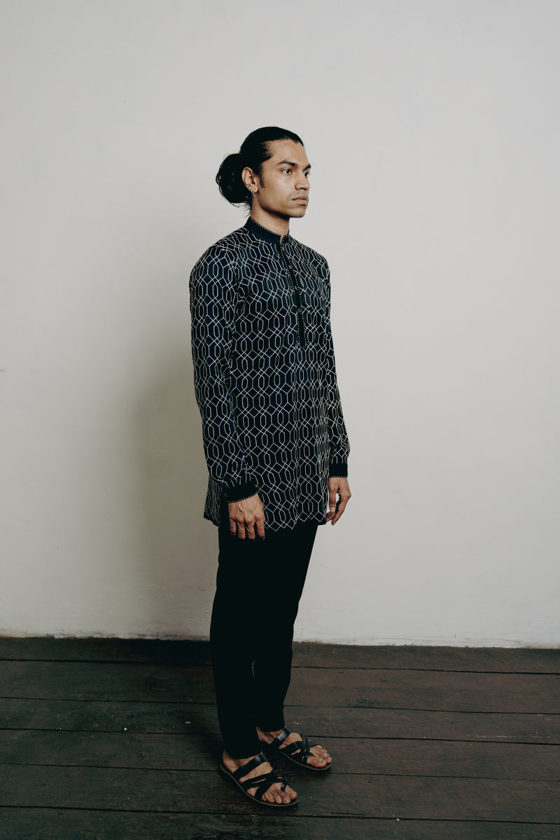 Black All Over Motifs Embroidered Short Kurta