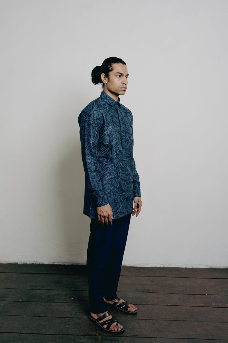 Indigo Geometric Block Printed Kurta Set
