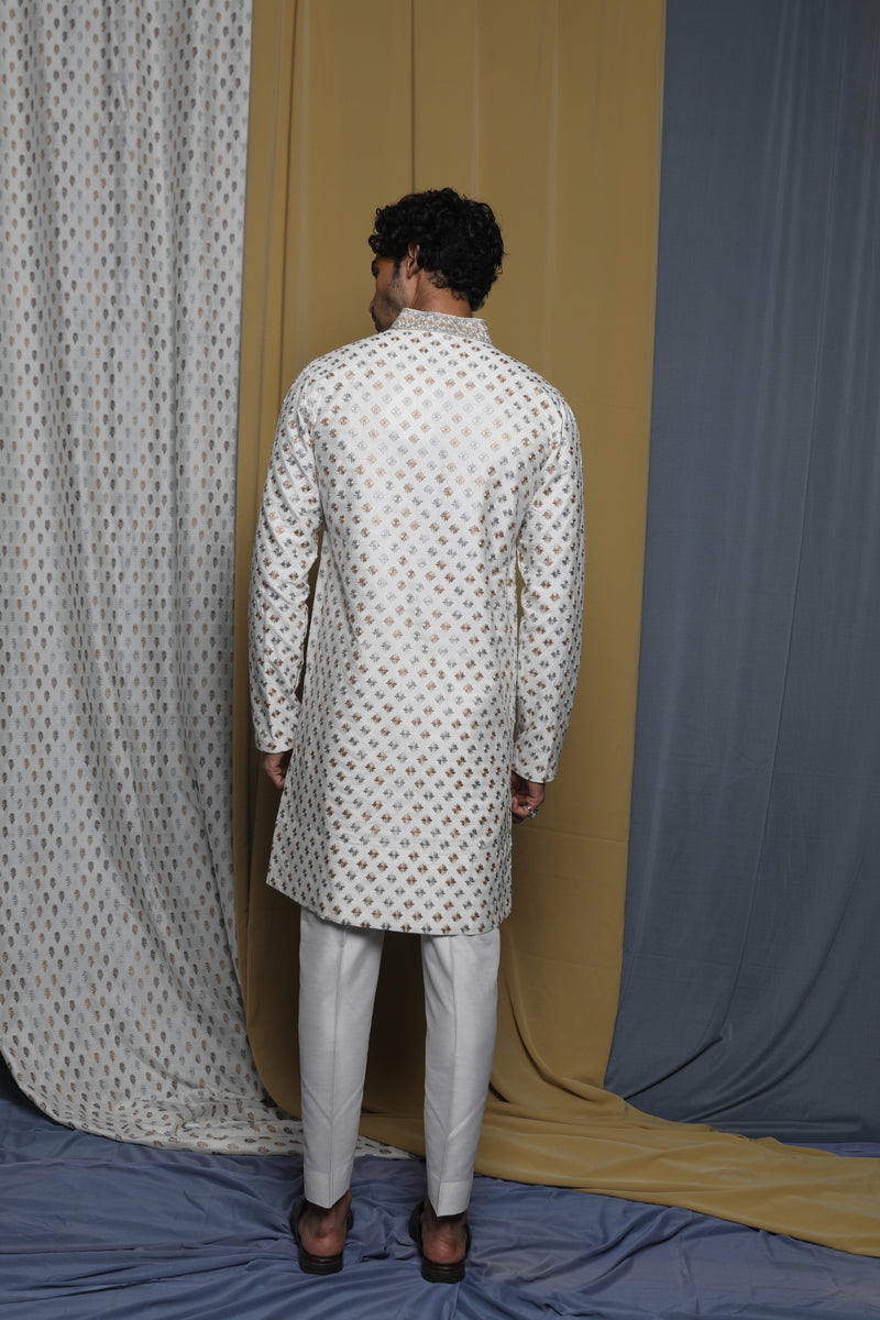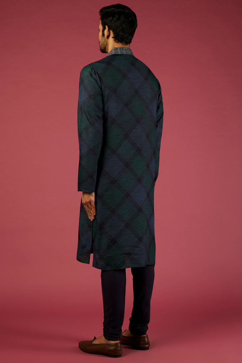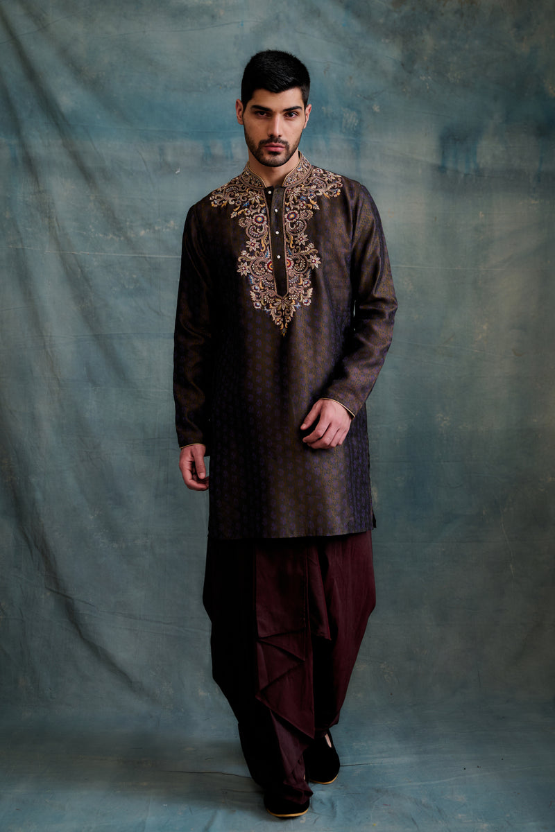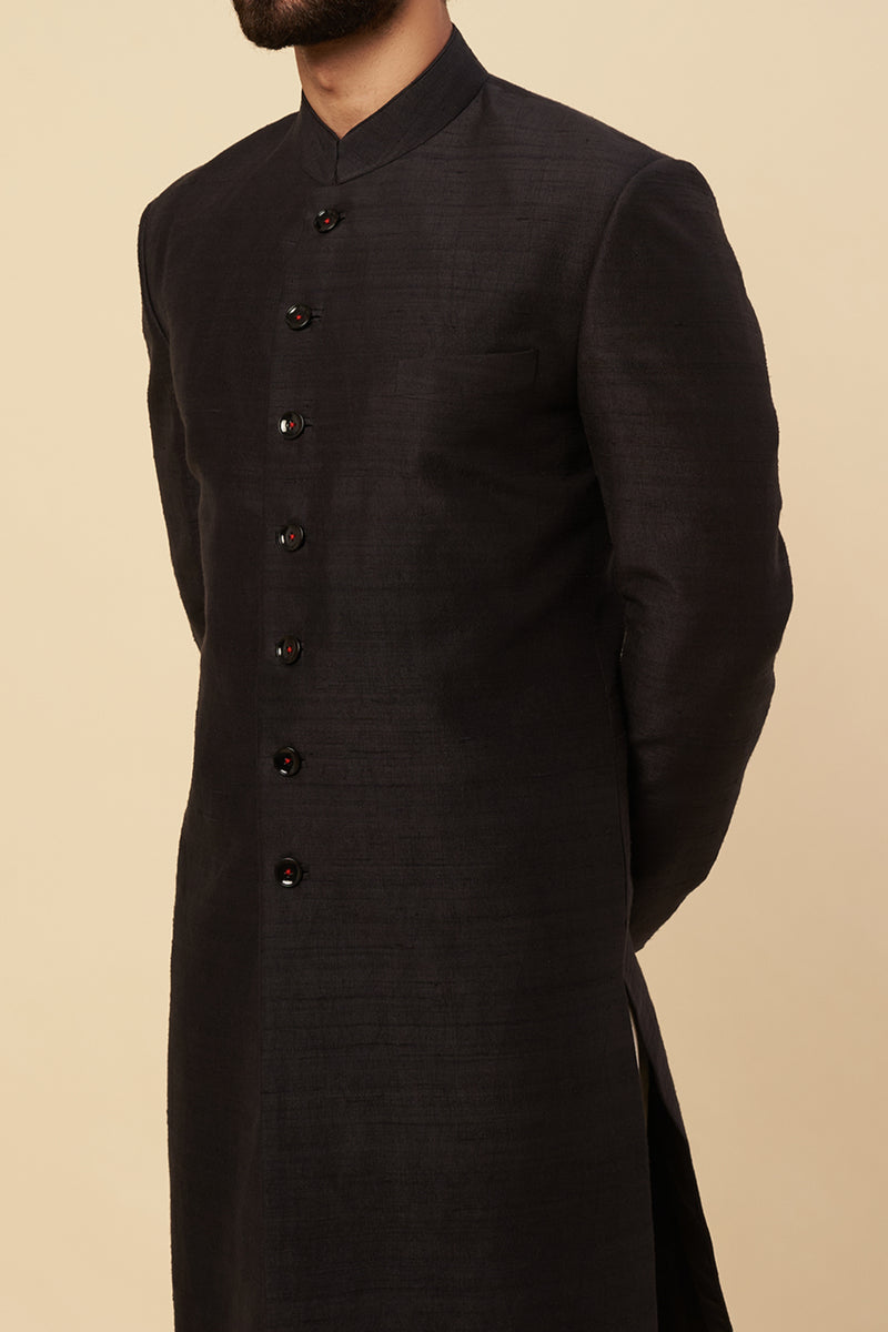 Black-Green Silk Embroidered Sherwani Set