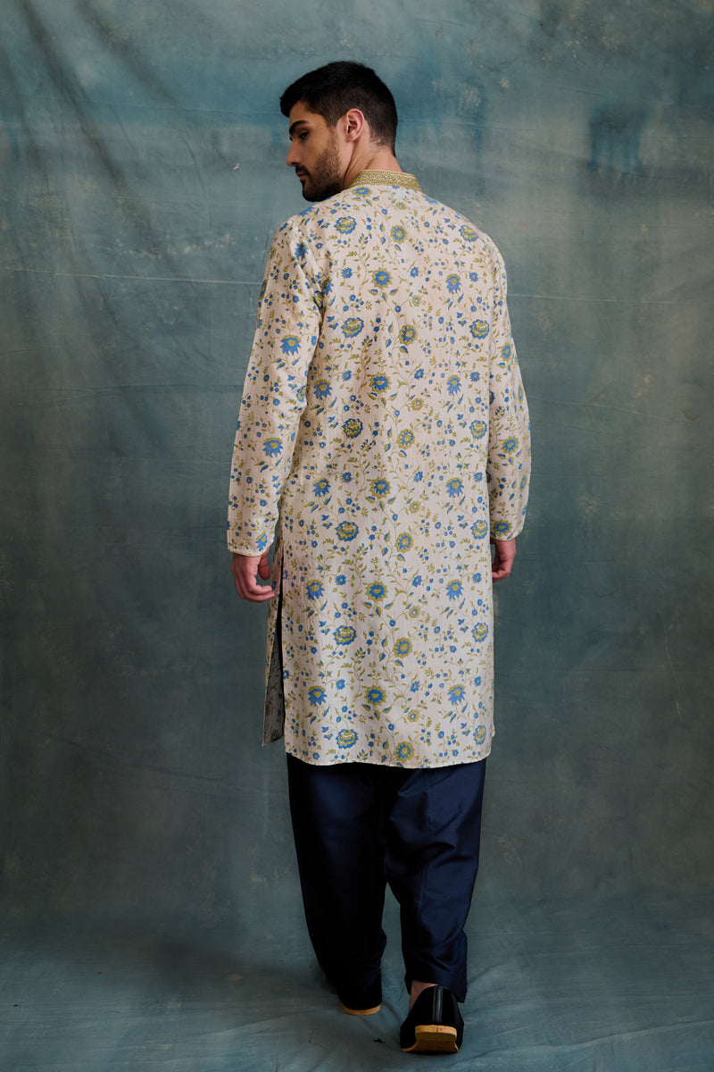 Indigo Floral Block Printed Kurta Set