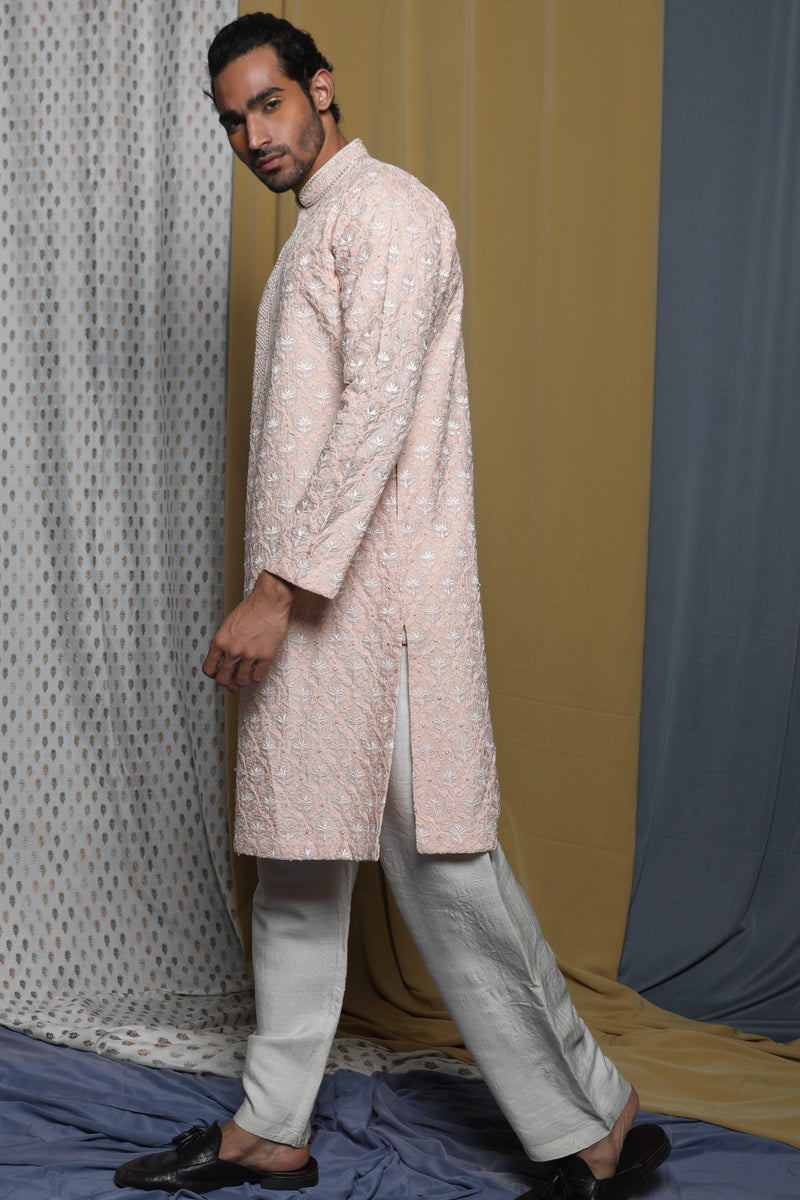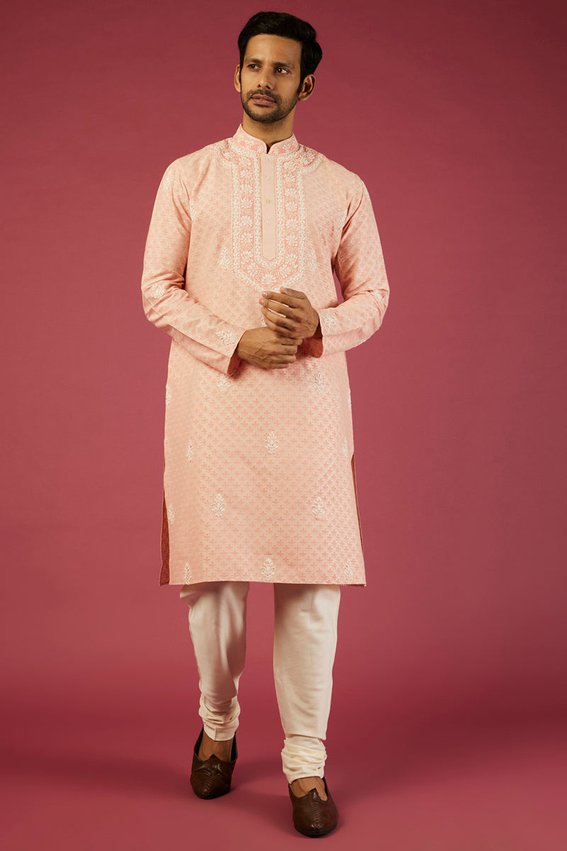 Peach Embroidered Kurta