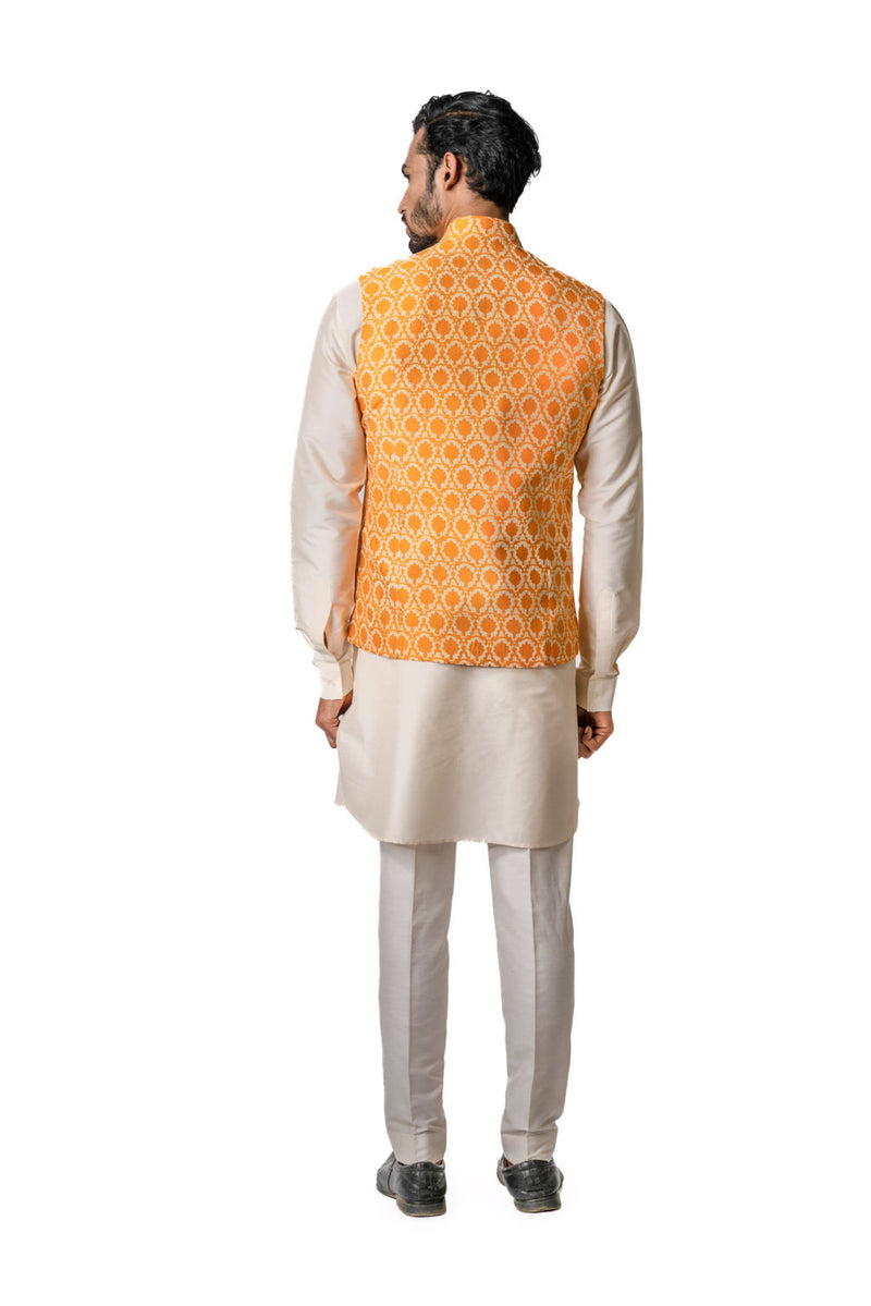 Orange Tussar Gota Work Kurta Set