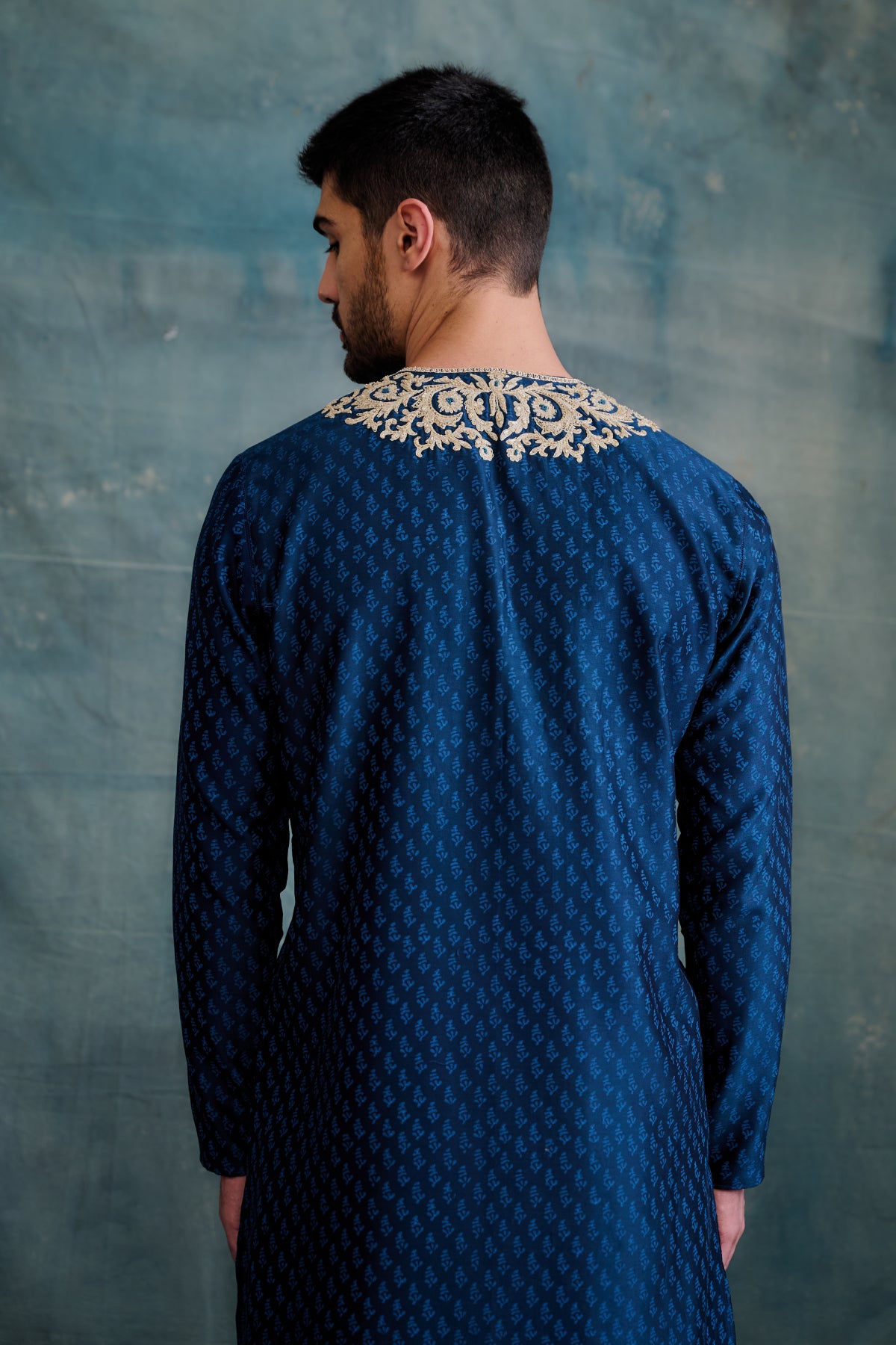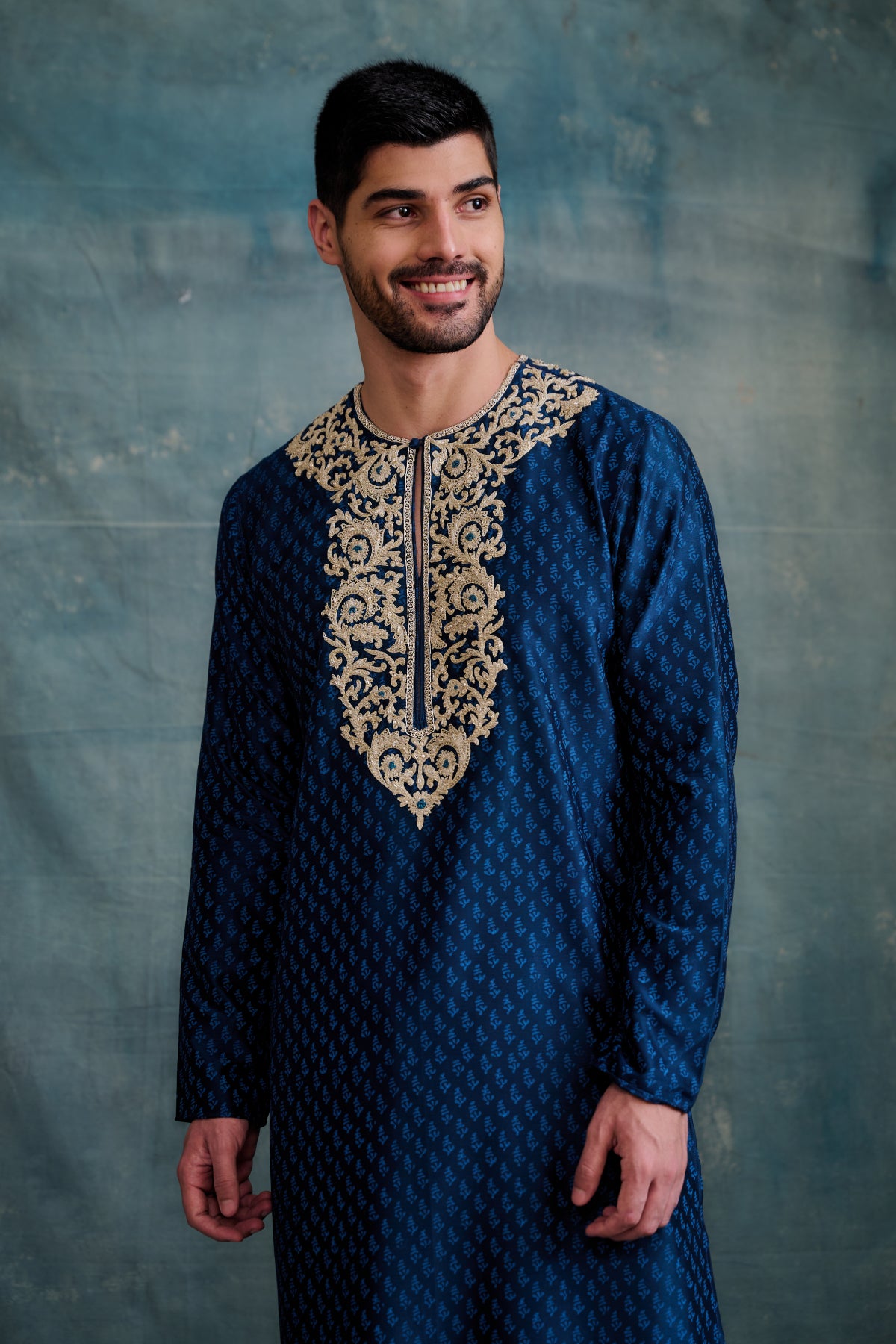 Navy Chanderi Gota Work & Block Printed Kurta Set