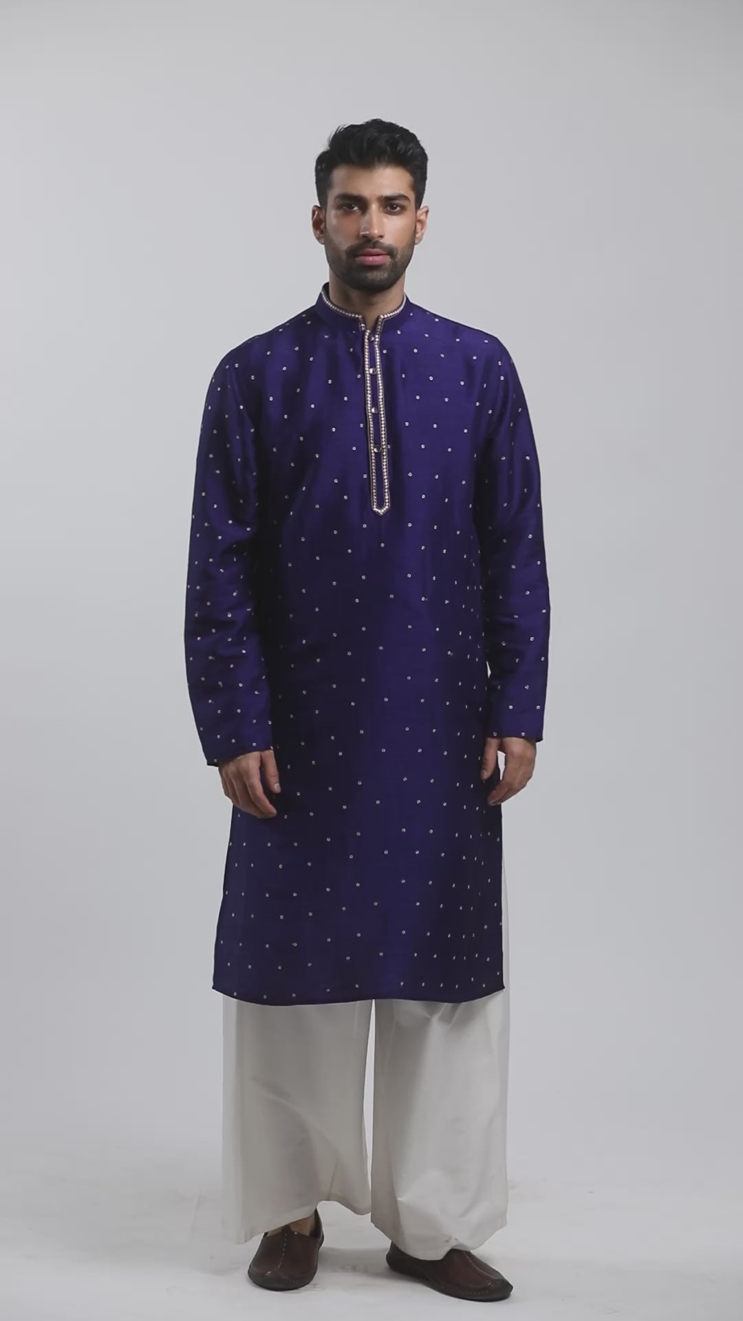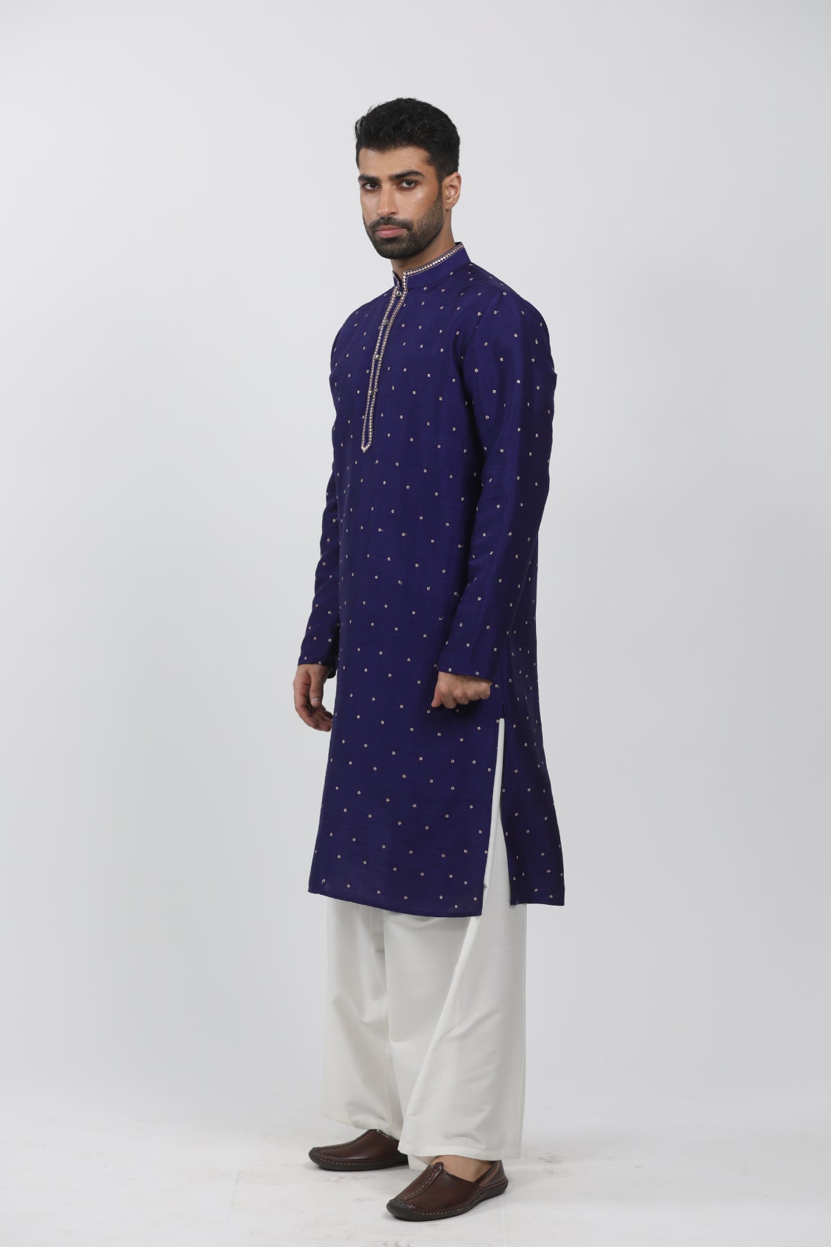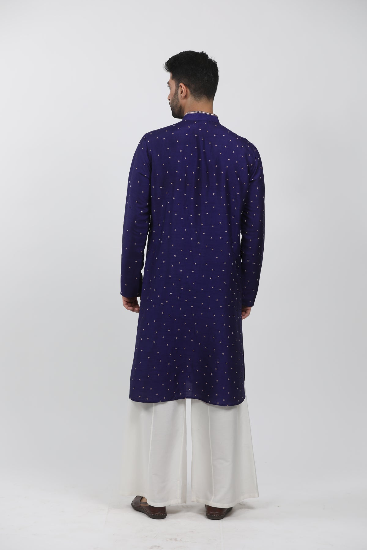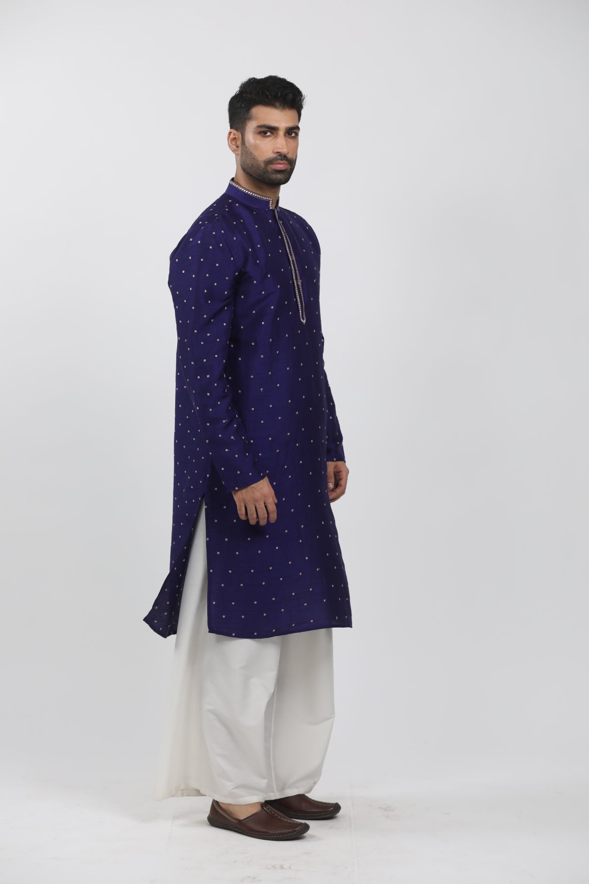 Dark Blue Tussar Embroidered Kurta Set