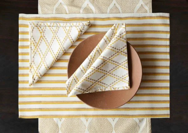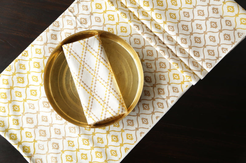 Ikkuna Yellow Placemat And Birch Gold Napkin (Set Of 4)