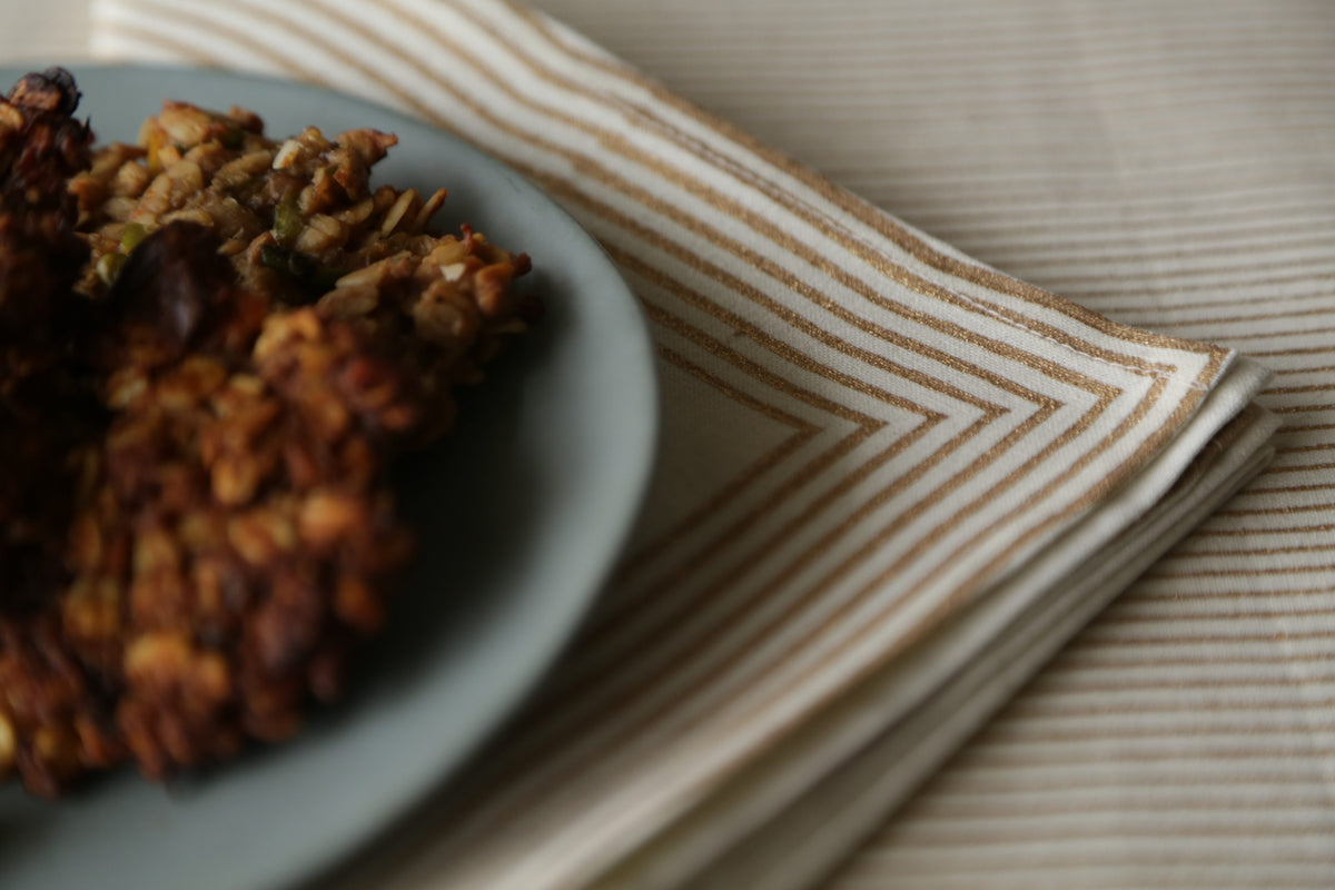 Perfect to use while serving your nibbles and drinks. These beautiful cocktail napkins have been hand block printed using natural gold pigments.