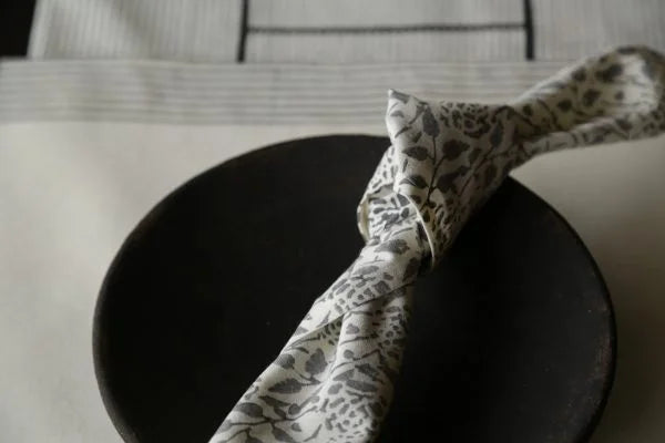 These beautiful cotton hand block printed napkins are sustainable and eco-friendly. These hand crafted napkins are perfect for cocktail parties. They are traditionally hand block printed with natural pigments in black and grey.