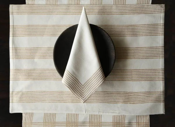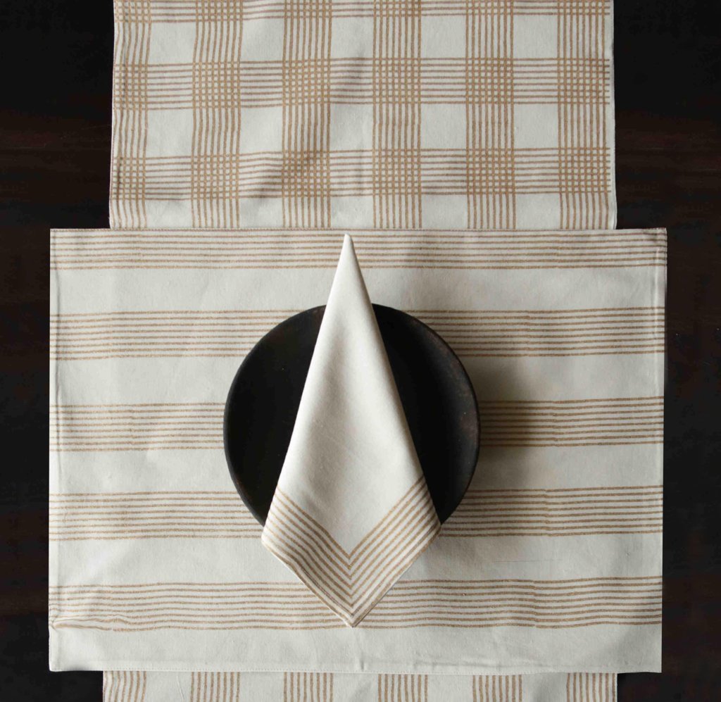 The classic gold set of 4 dinner mats and napkins will add joy to your table. Each piece in this set has been individually hand block printed with natural pigments.