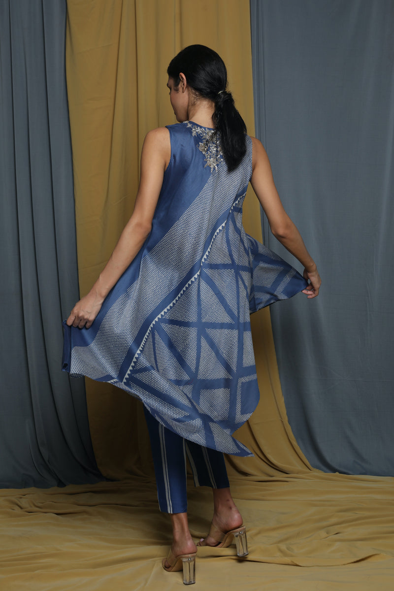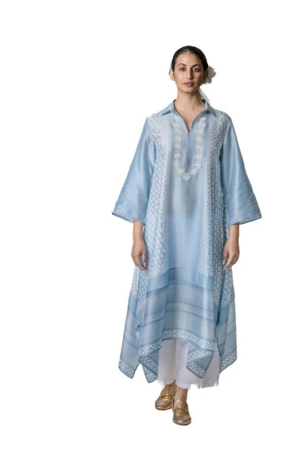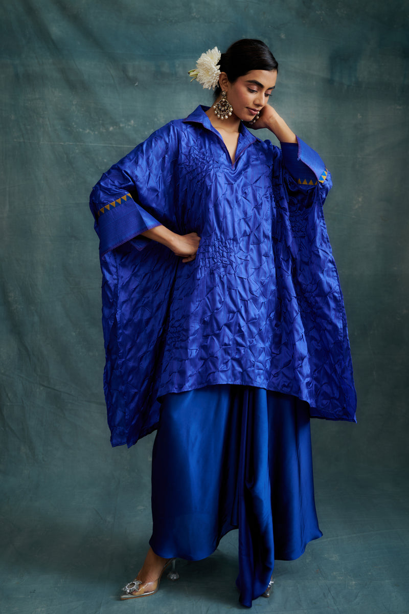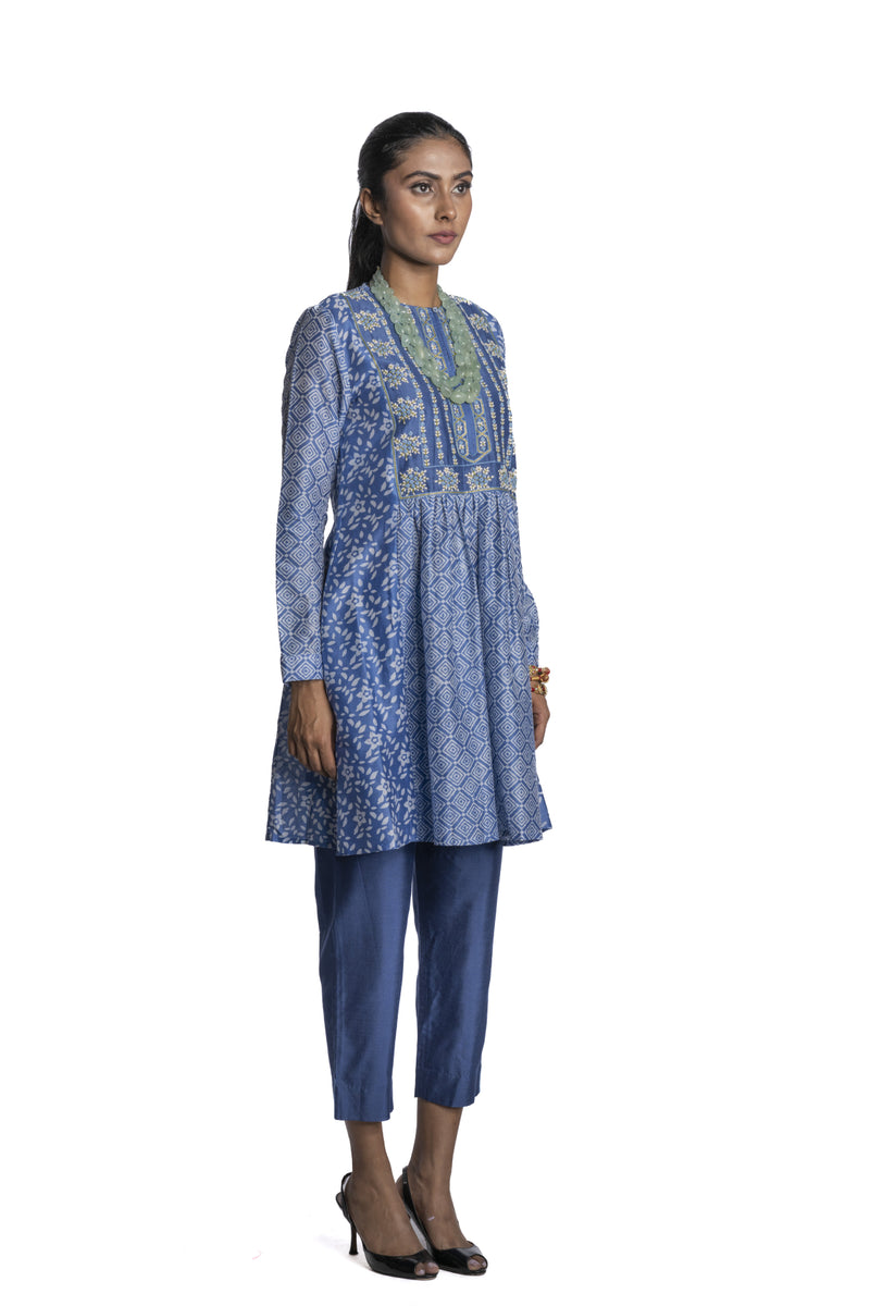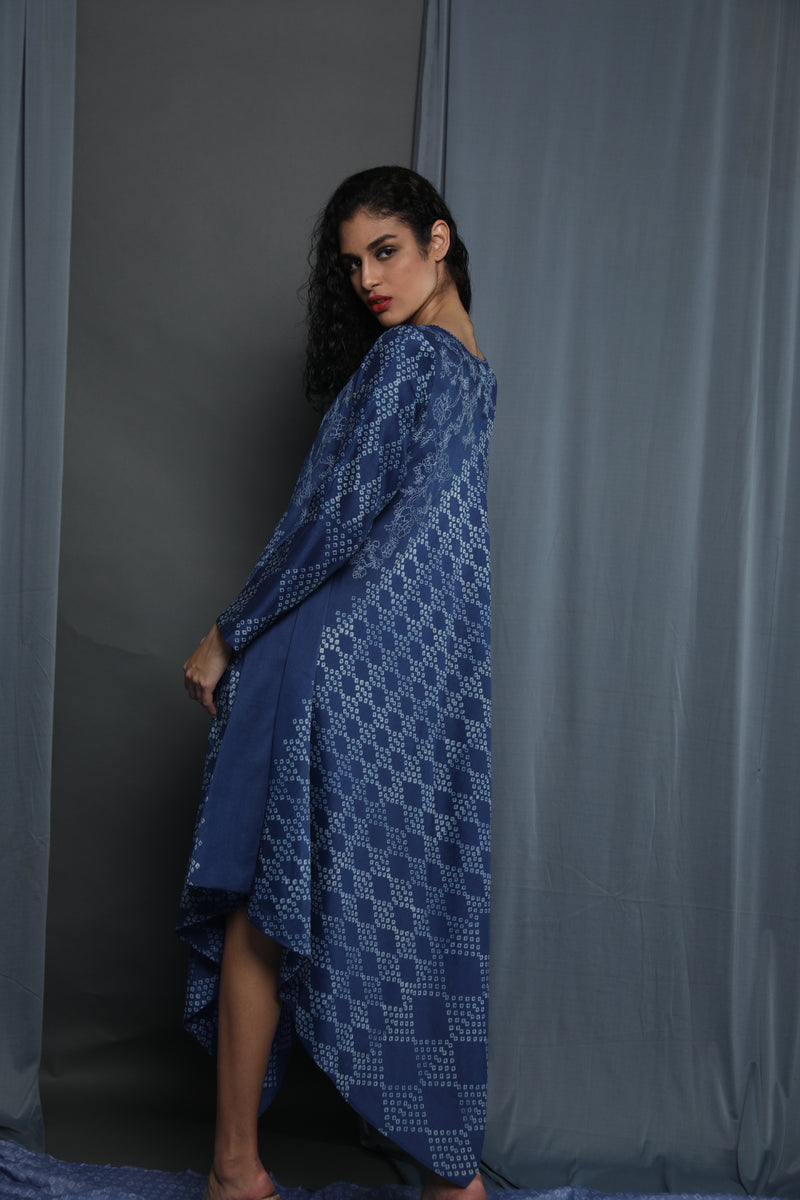 Blue Modal Bandhej Embroidered Kaftan Tunic