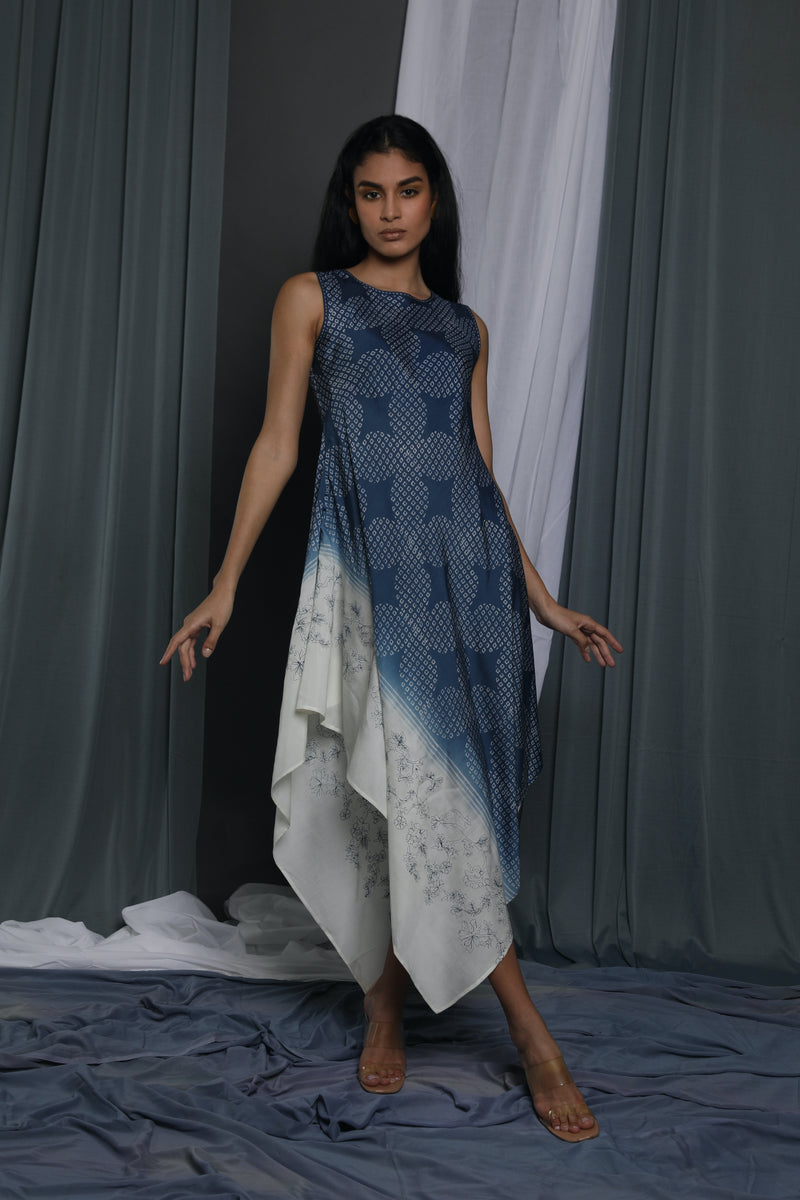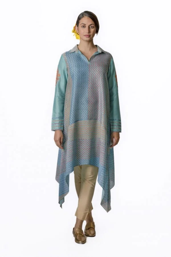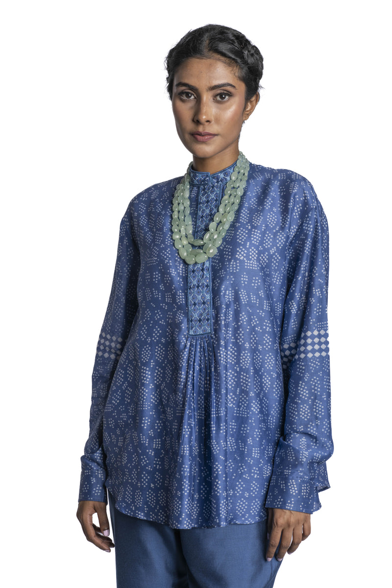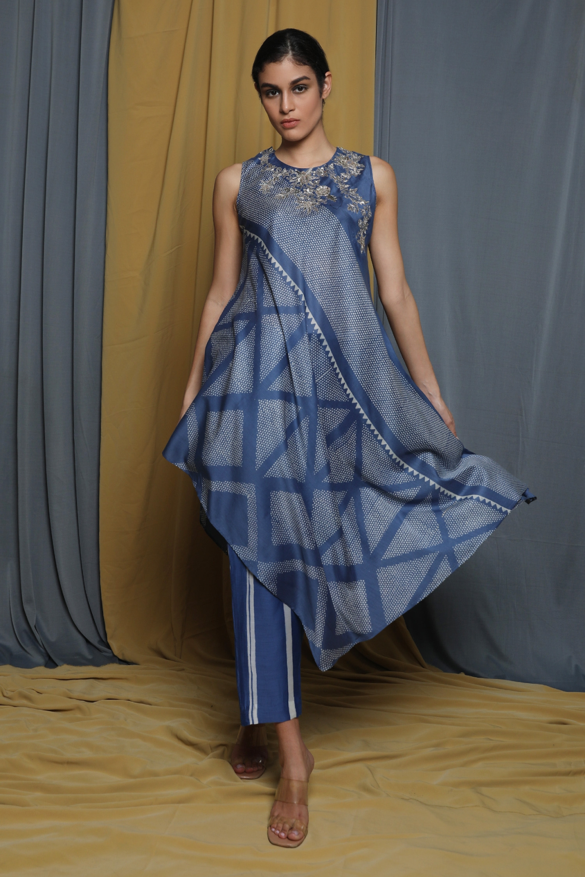 Blue Modal Bandhej Embroidered Kaftan Tunic