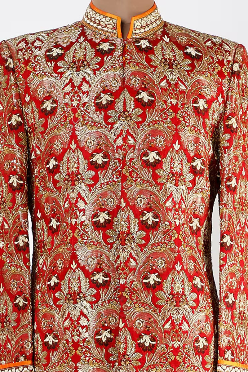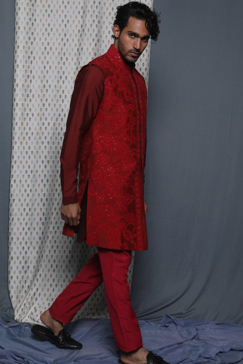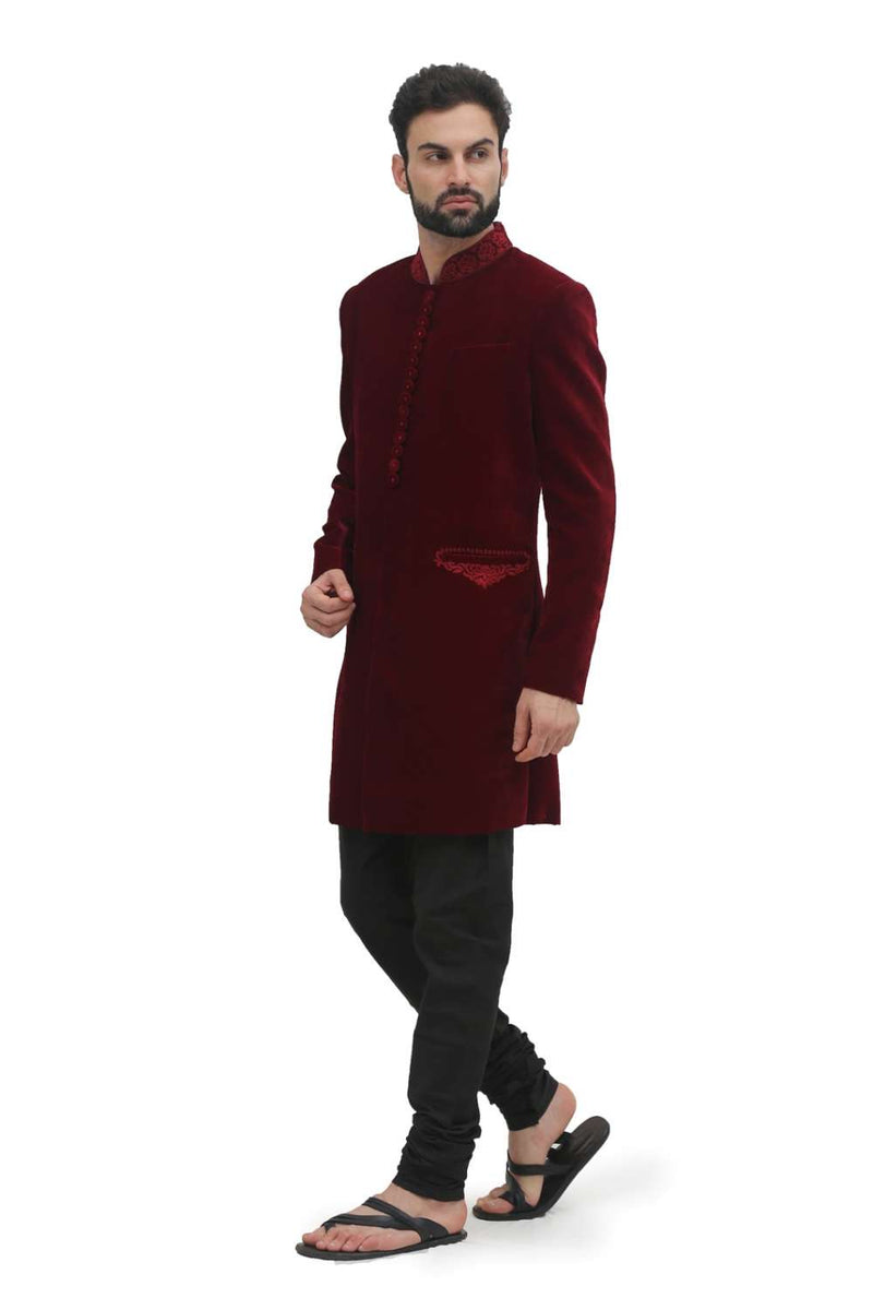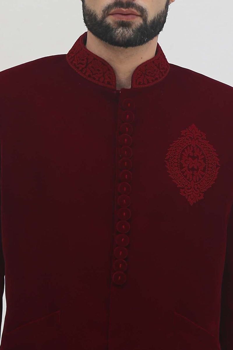 Wine Ombre Silk Zardosi Embroidered Sherwani Set
