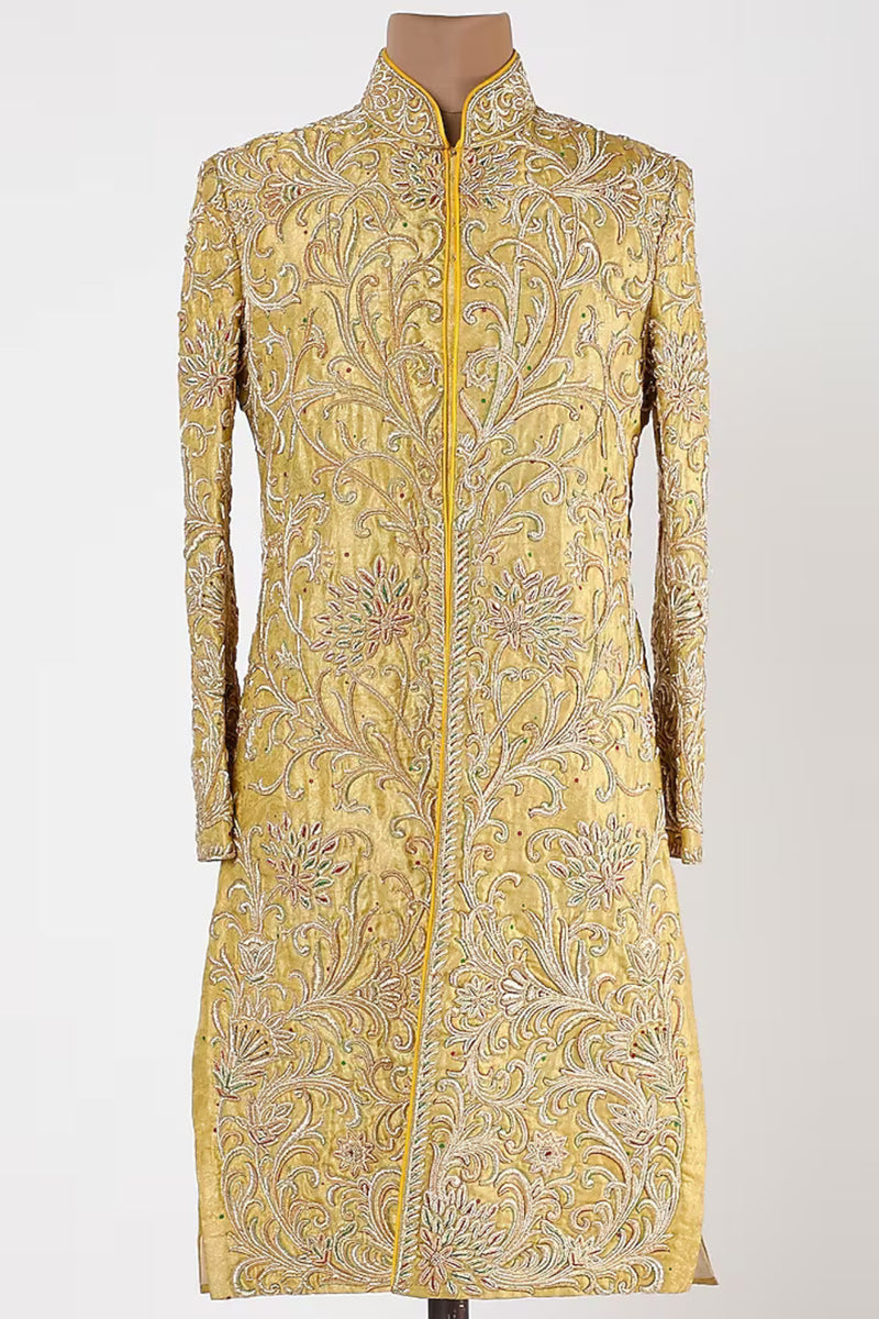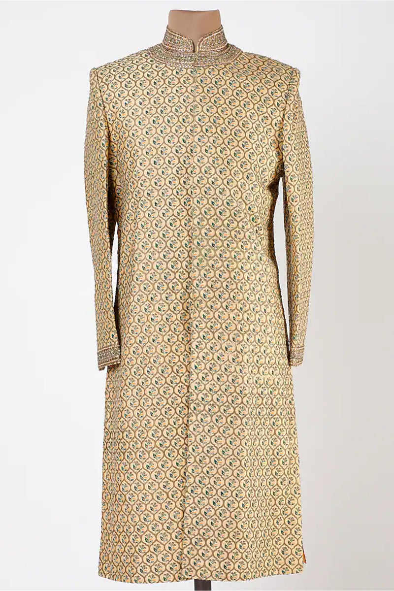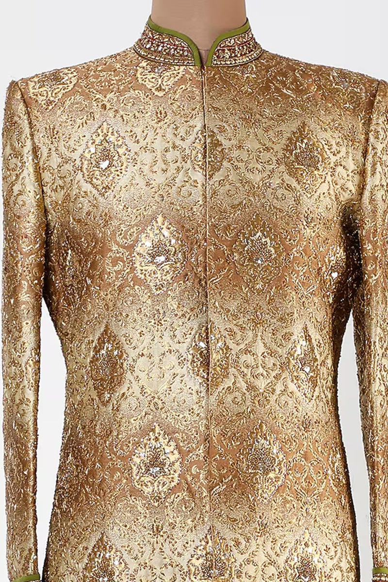 Olive Green Raw Silk Zardosi Embroidered Sherwani Set