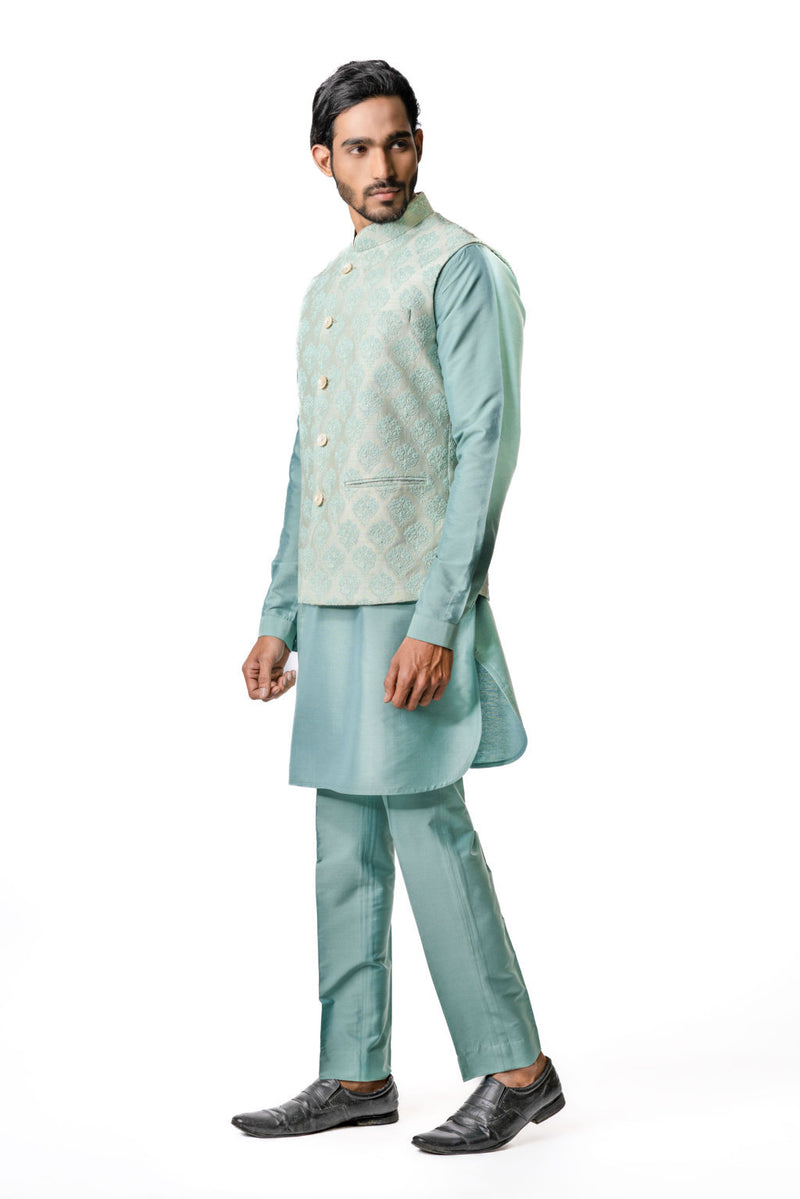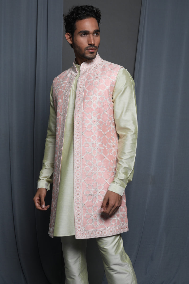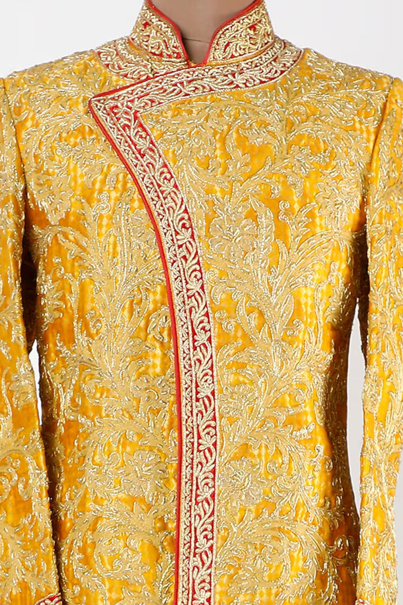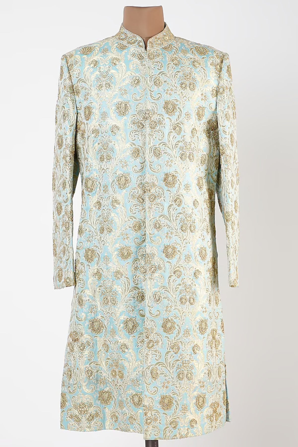 Olive Green Raw Silk Zardosi Embroidered Sherwani Set