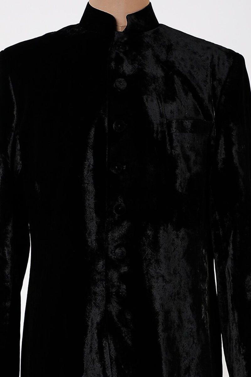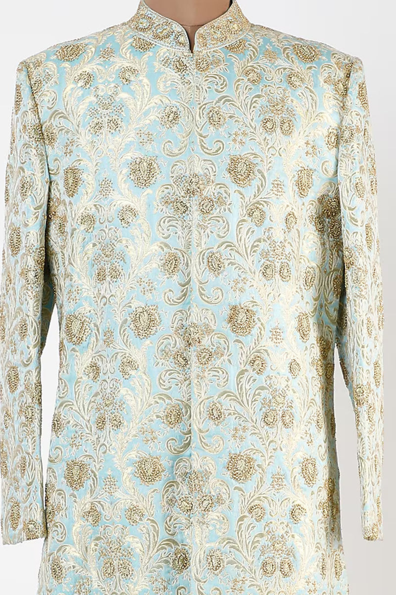Navy Blue Raw Silk Zardosi Embroidered Sherwani Set