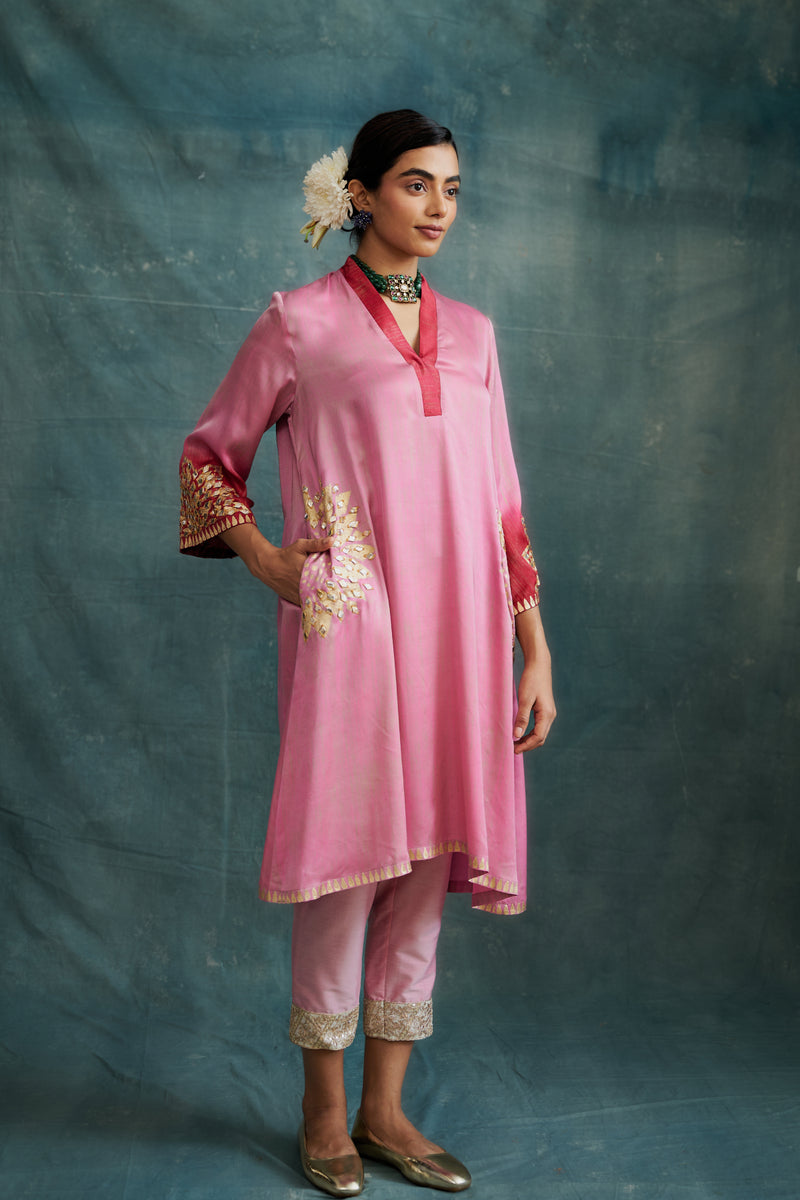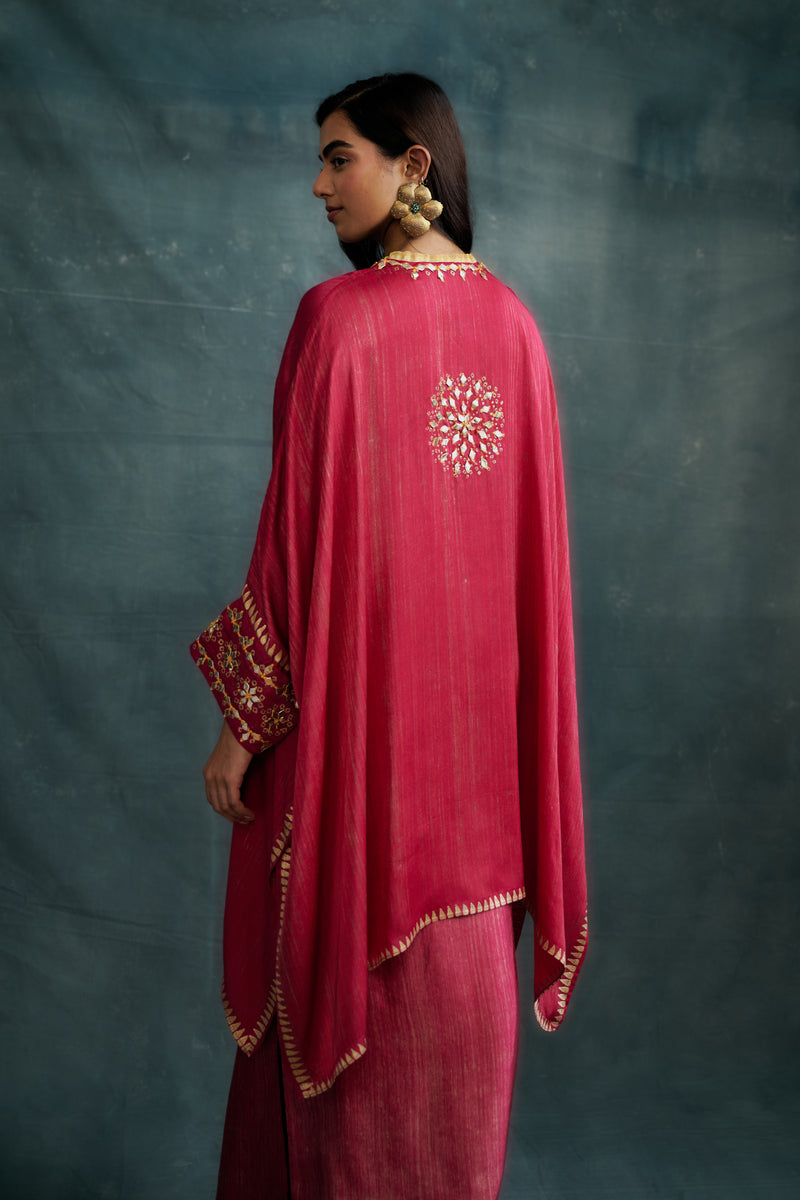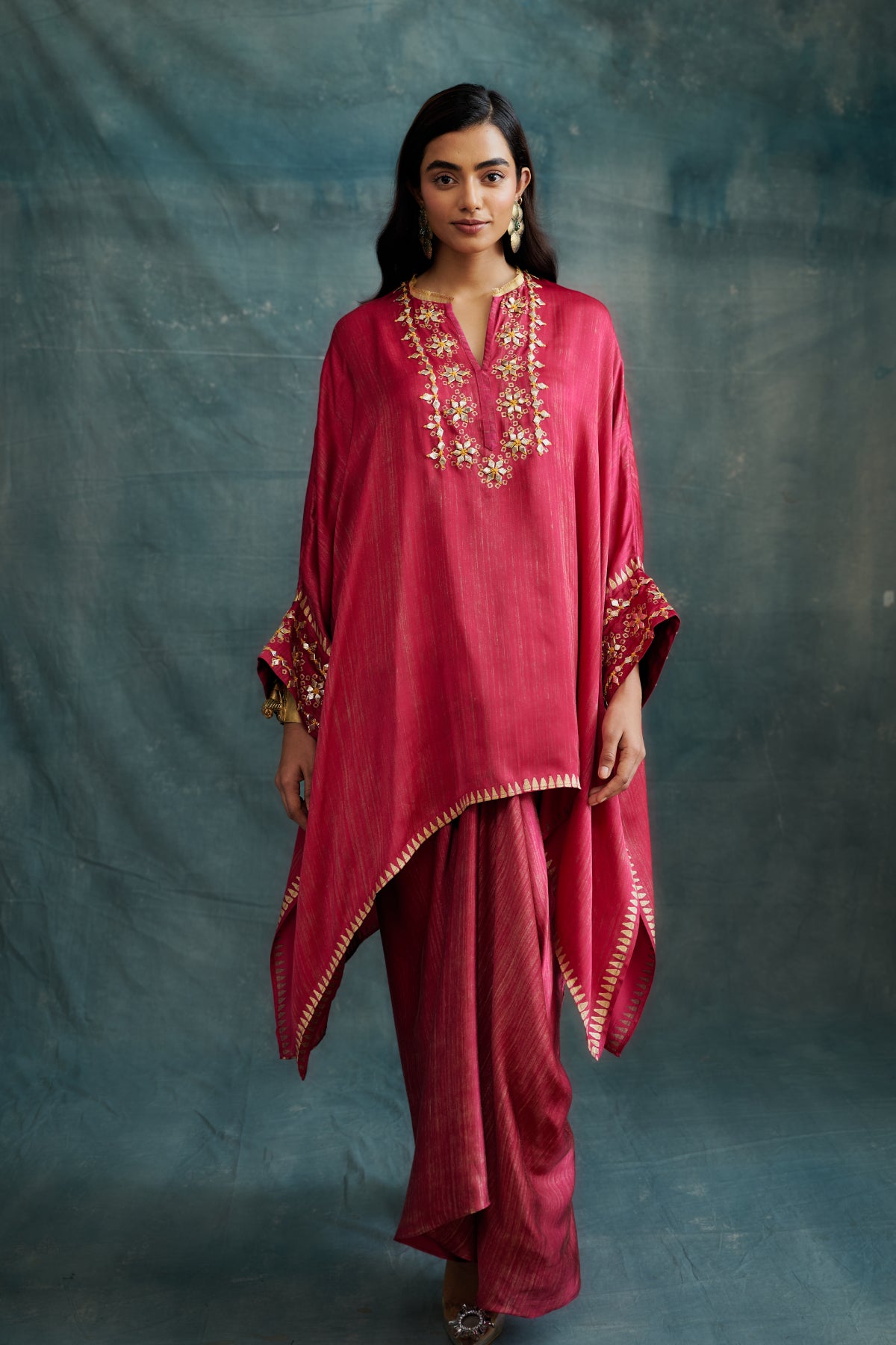 Fushia Pink Gota Embroidered Kaftan Tunic