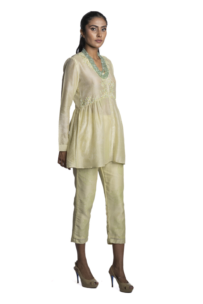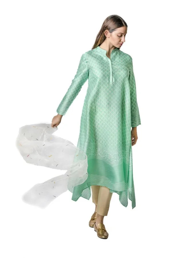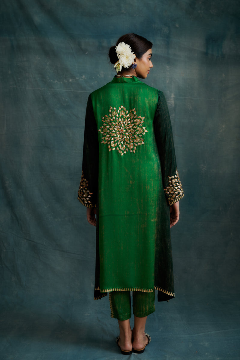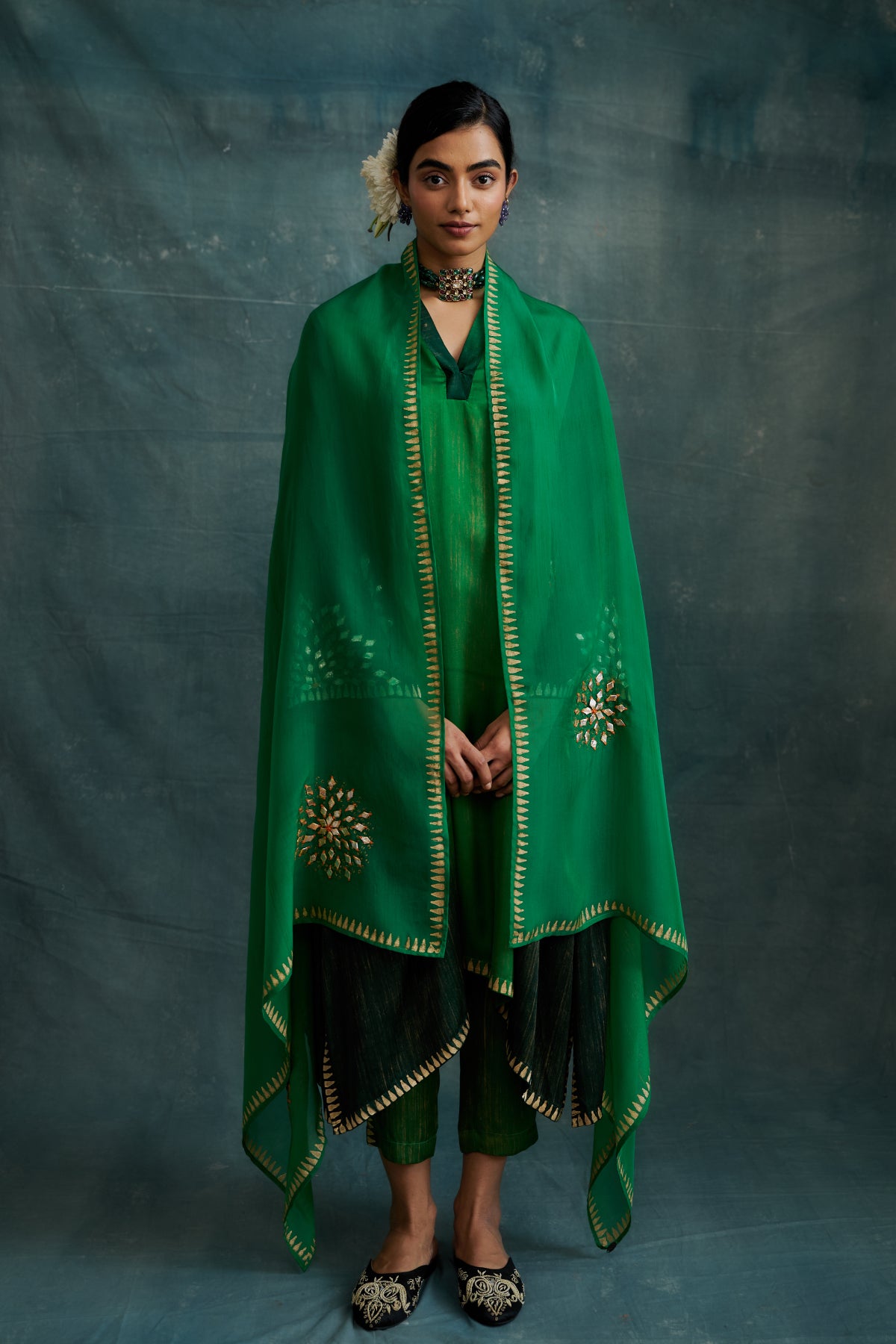 Green Modal Gota Embroidered & Block Printed Tunic Set