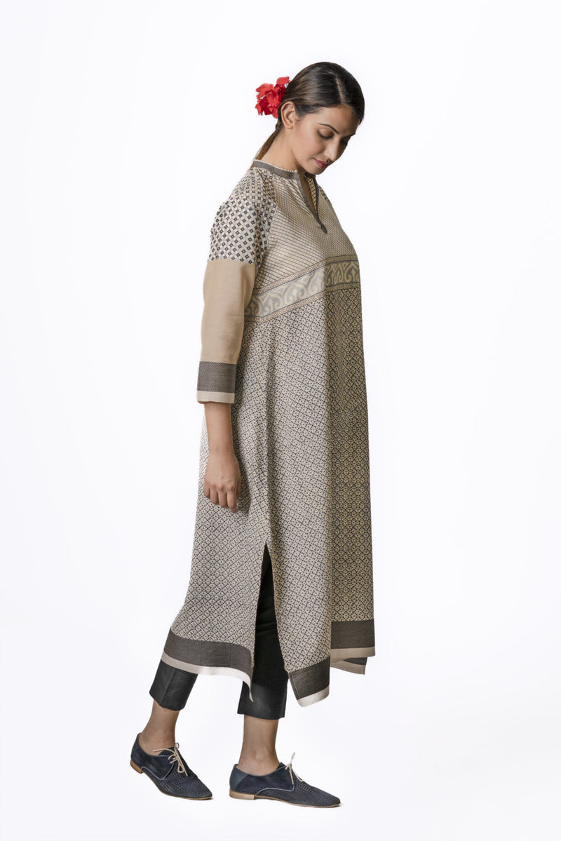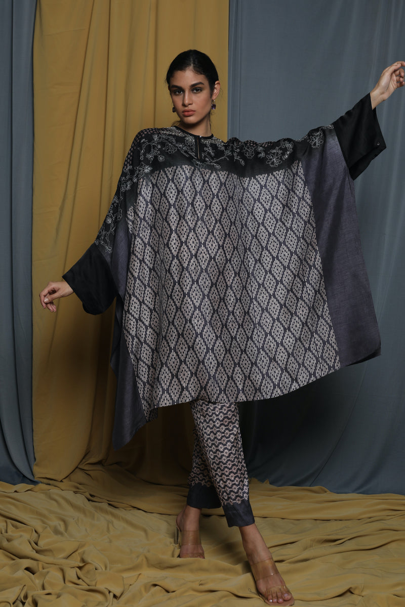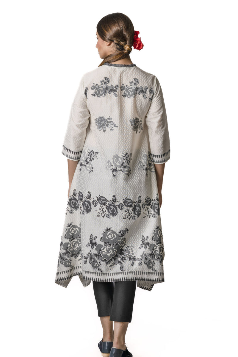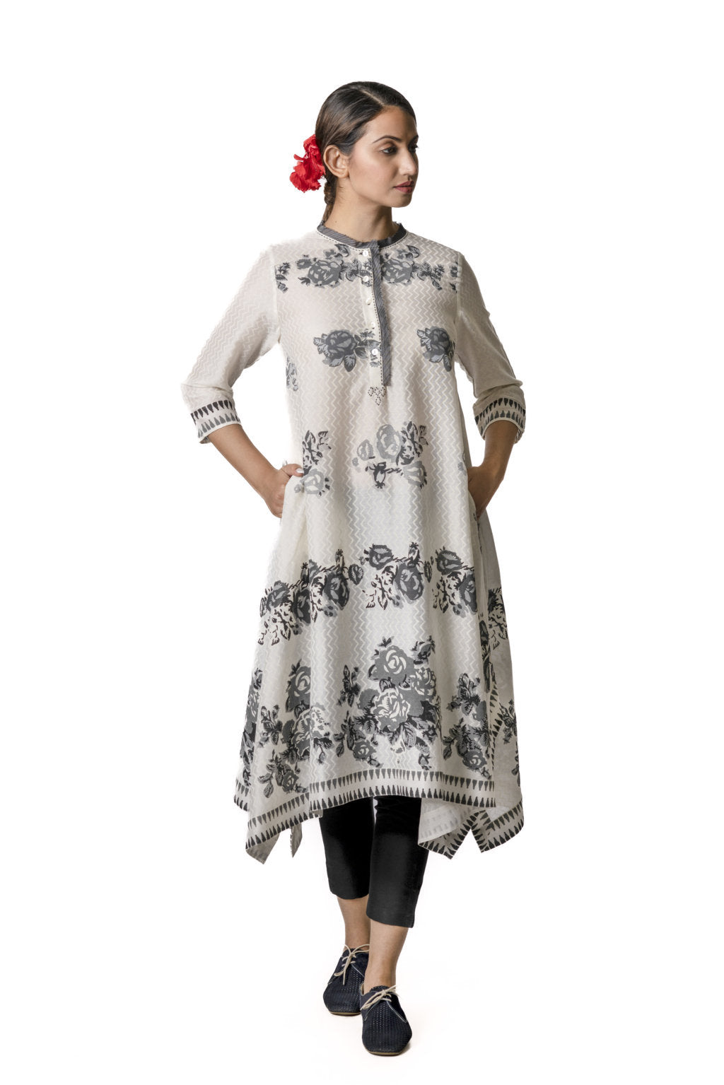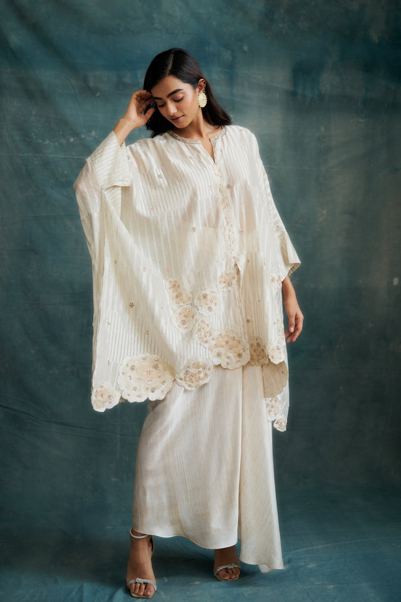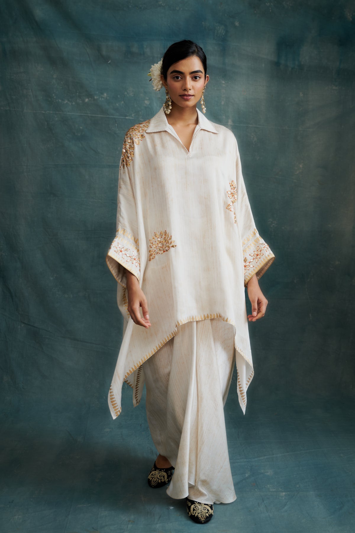 Ivory Modal Gota Embroidered & Block Printed Kaftan Tunic