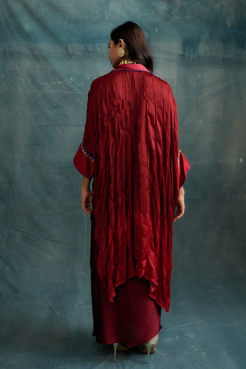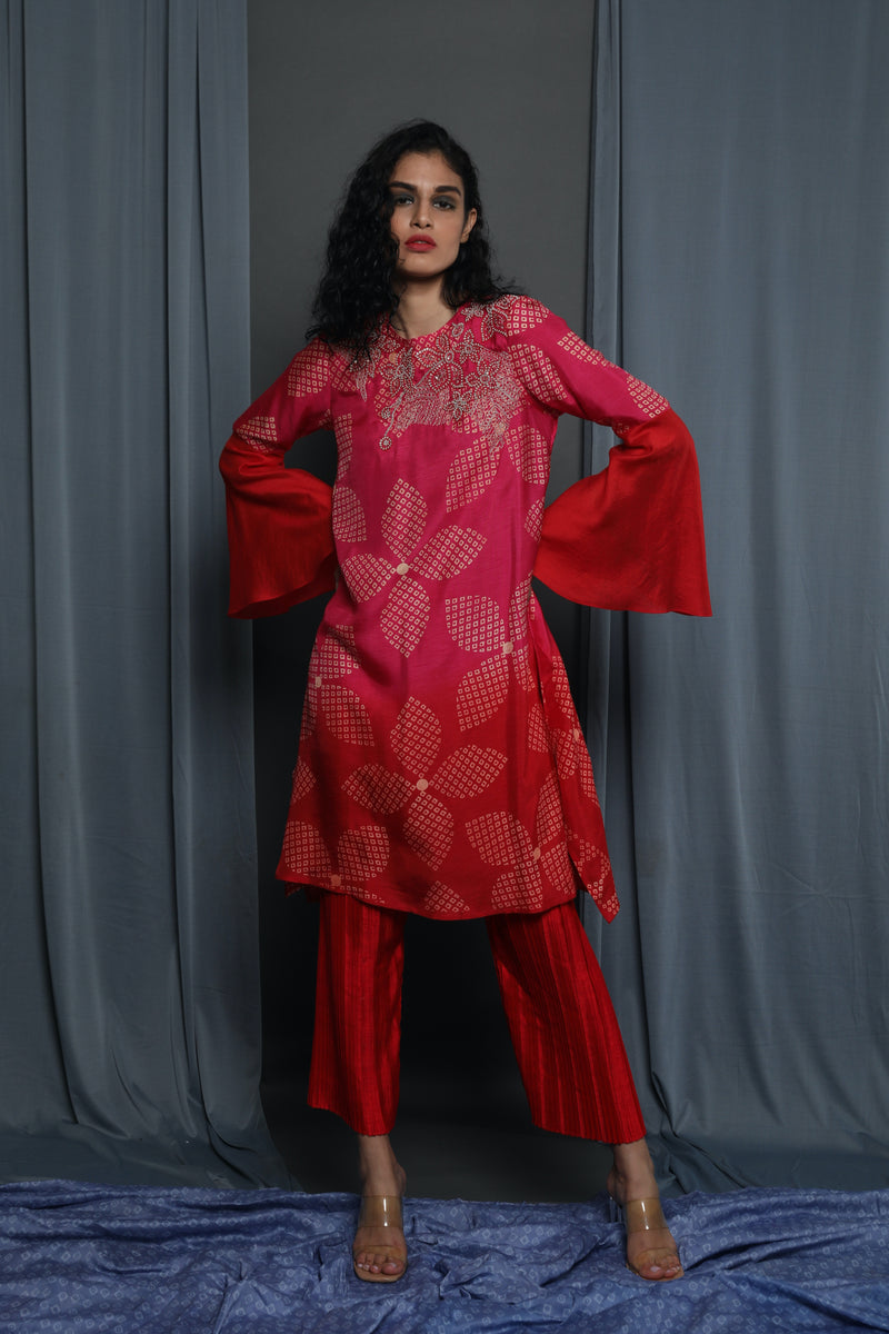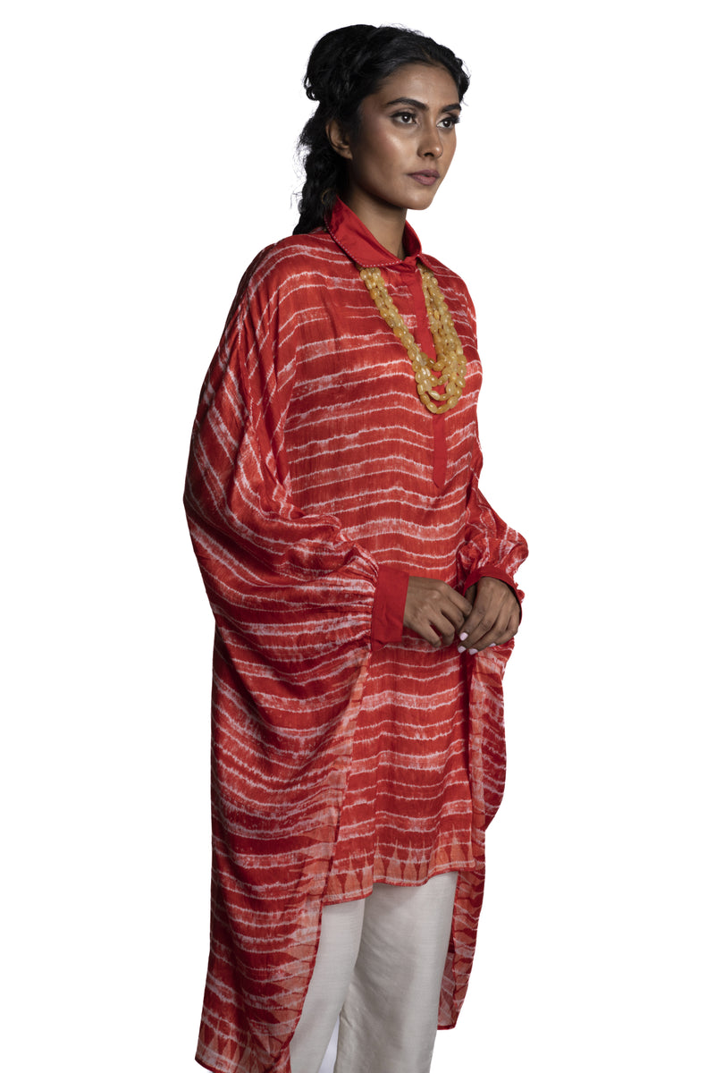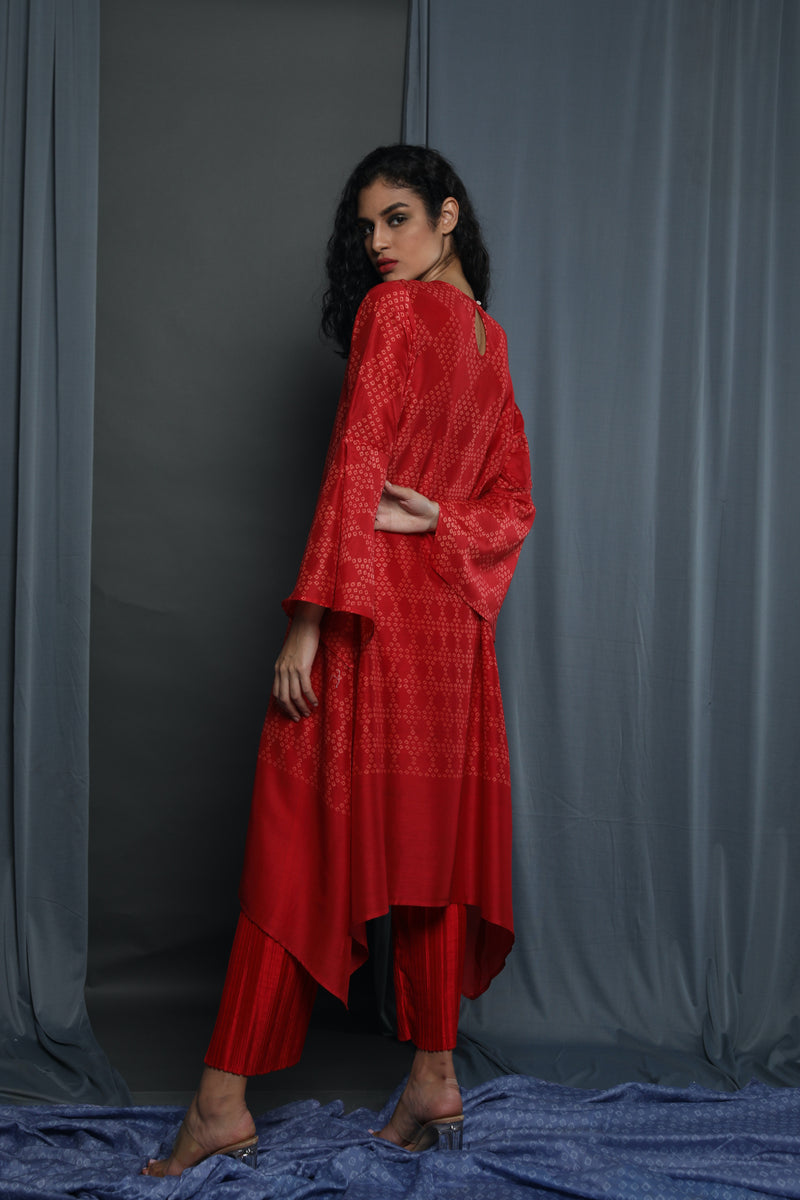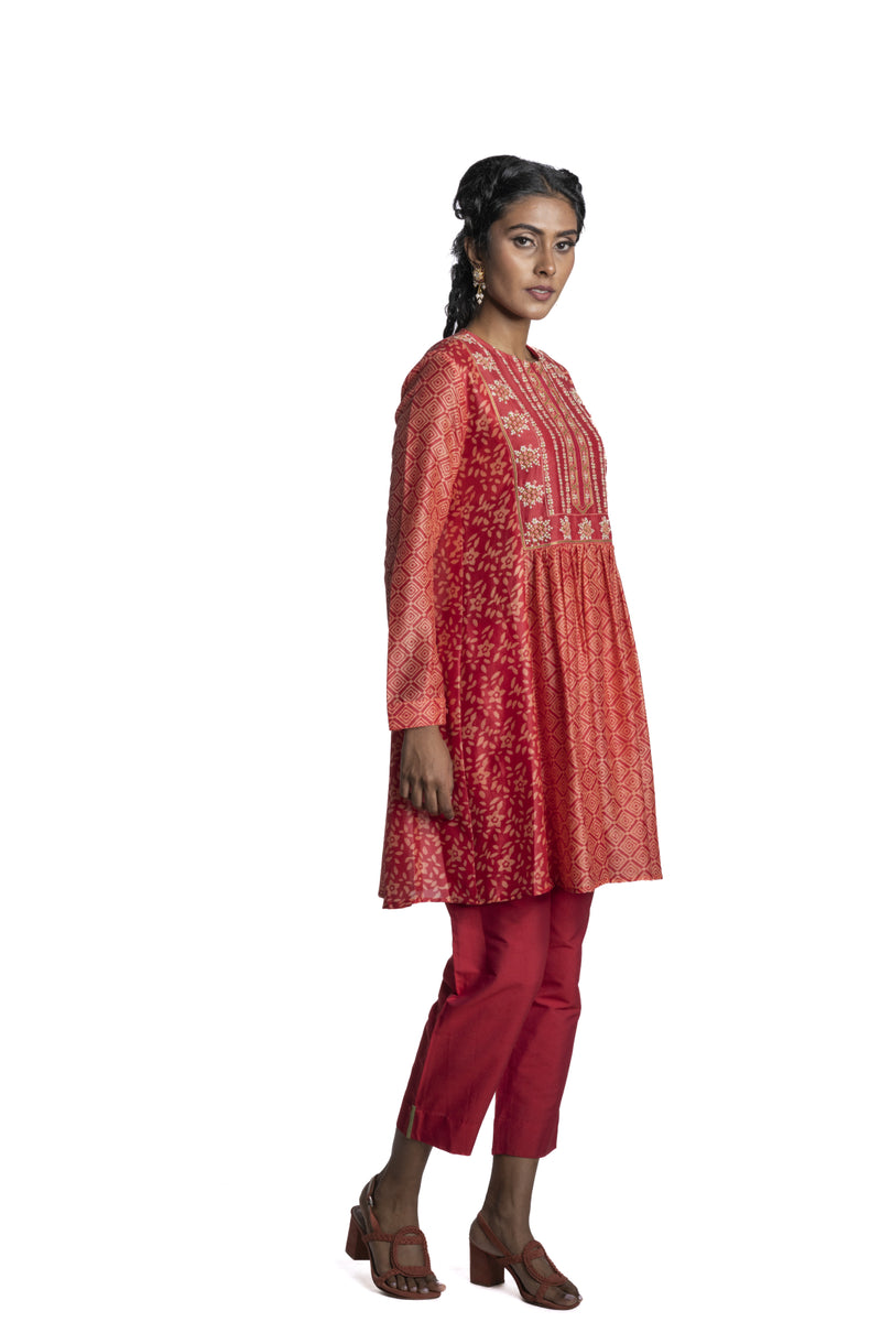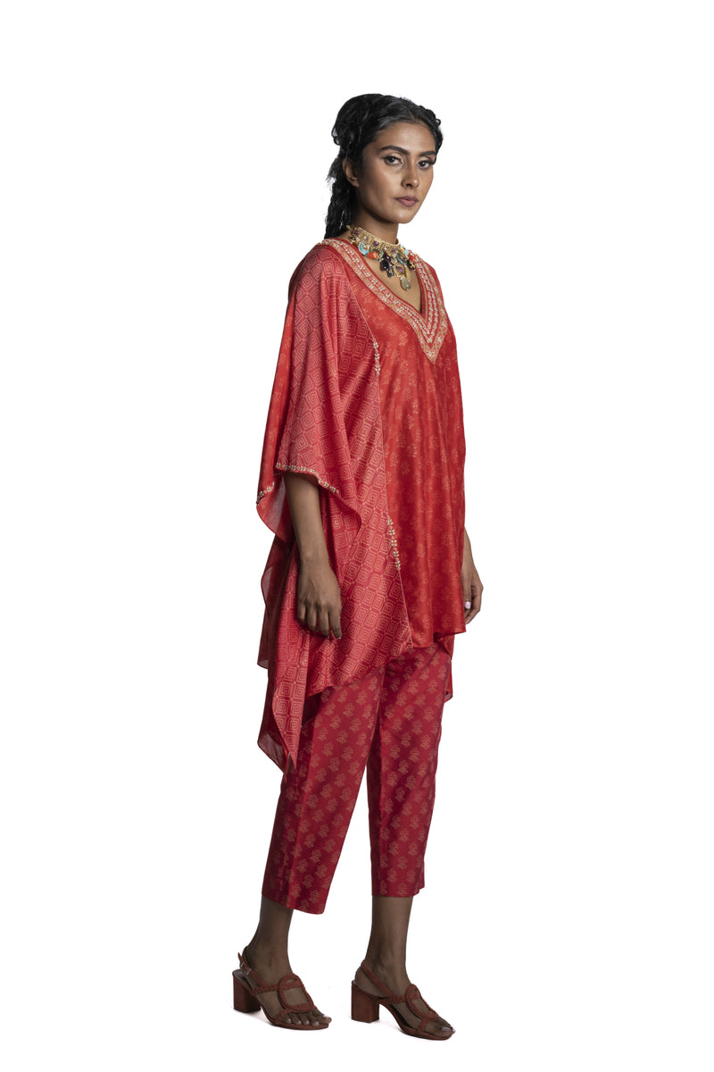 Red Modal Bandhej Embroidered Kaftan Tunic